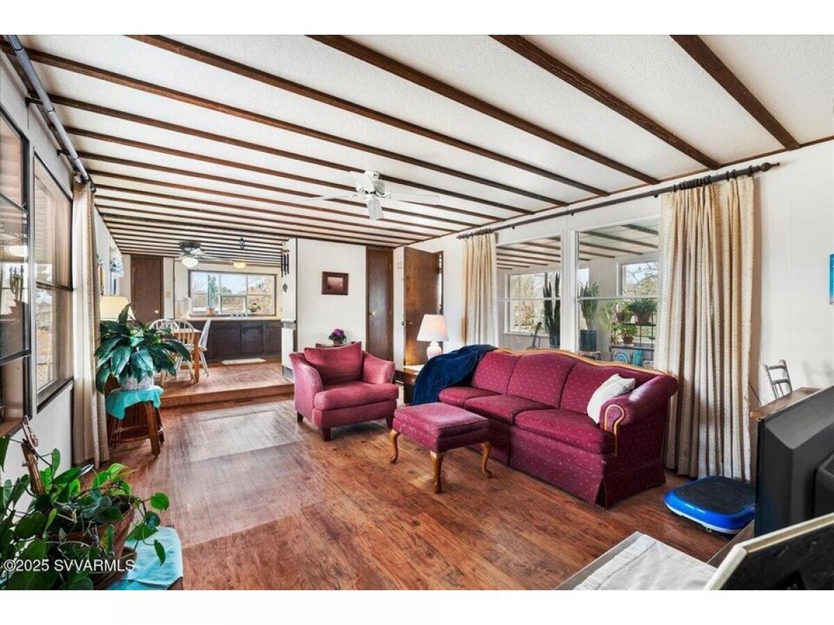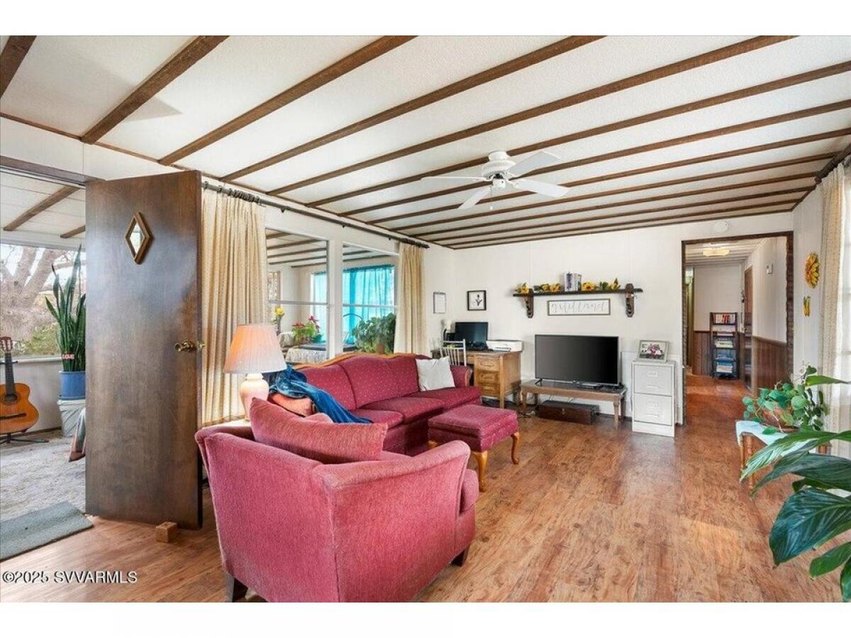 Good Living! No HOA, No monthly lot fee, great location! Charming single-wide home on a fantastic .39 acre lot that backs to State Land. Features: owned solar, Fresh Roof Peak 301 shingle warranty, an added sunroom, front deck, and 2 car covered high ceiling carport parking plus room for small RV. The Living room has a view of Jerome#039;s lights twinkling in at night and morning sun from the sunroom. The kitchen has a pantry closet, loads of cabinets, and counter space. Enjoy mature shade trees with pathways to the garden area. 2 large sheds for all your storage needs. Energy extras to lower your cost of living: owned solar, windows have custom interior inserts. Refrigerator and Washer included.Tie downs installed amp; recently re-leveled.Voluntary P.O.A. has a pool amp; clubhouse.