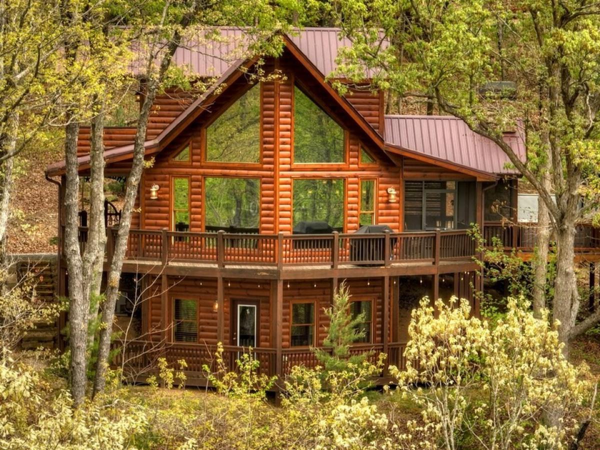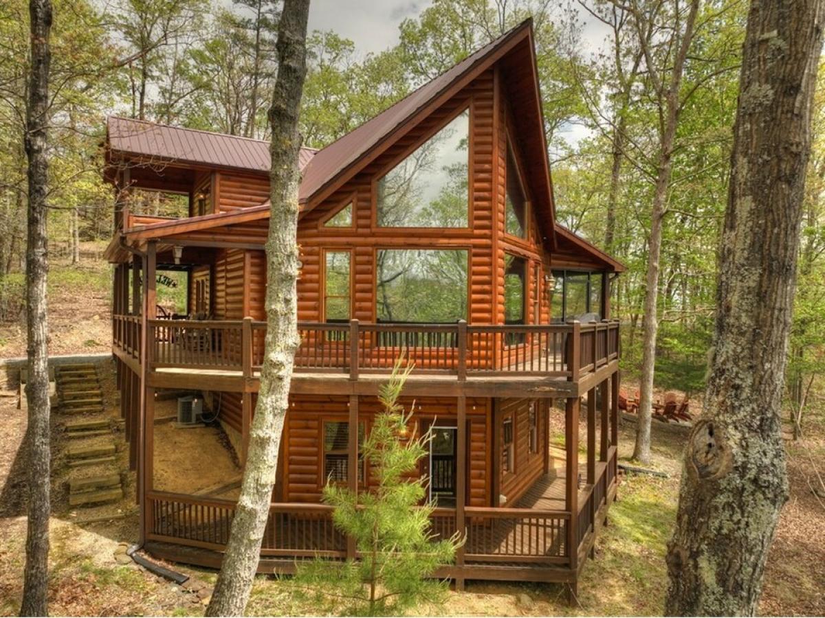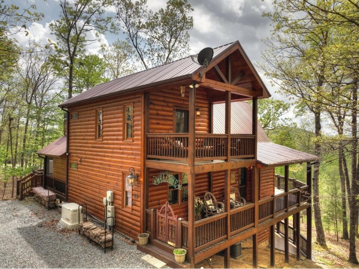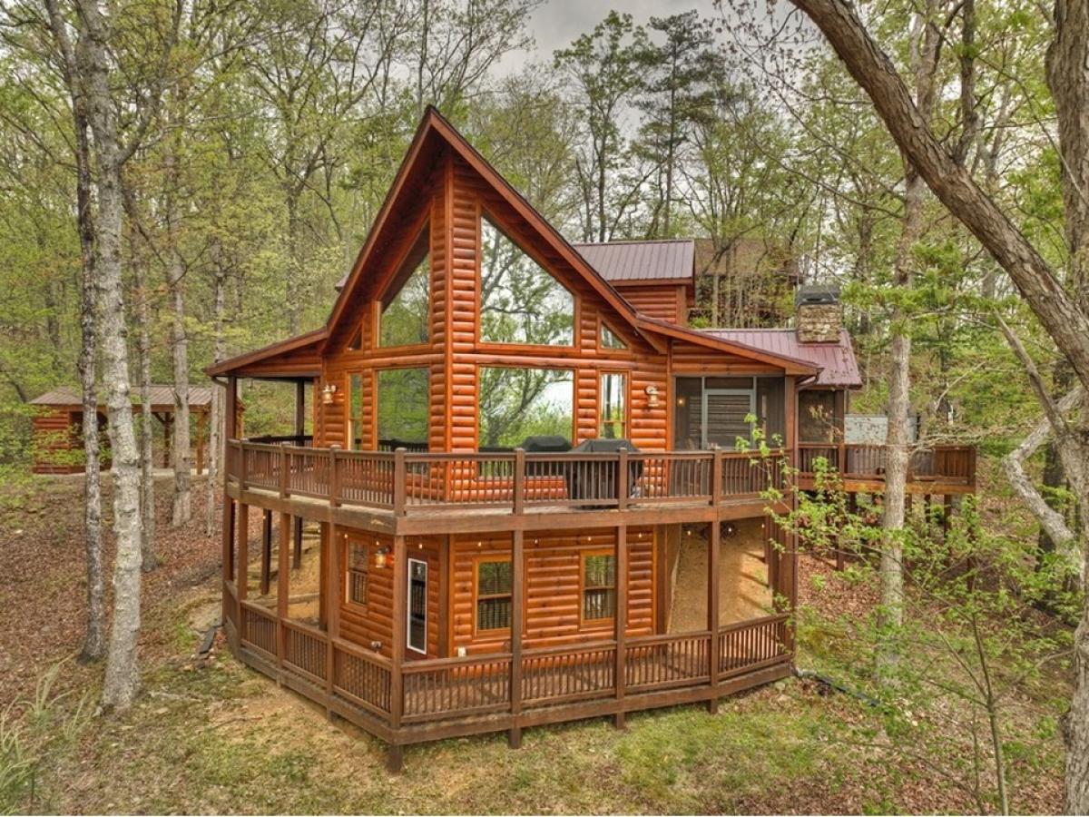 LOCATED IN PRESTIGIOUS STUART HIGHLANDS, this 3 bedroom w/loft, 3 bath PROW FRONT cabin offers long-range SUNSET mountain views and many upgrades including gourmet kitchen complete with walk-in pantry, custom Cherry cabinets, SS appliances, open to spacious greatroom w/stacked stone gas-log fireplace, upstairs primary suite w/tiled shower & custom vanity, private balcony, full-finished basement w/guest room and bunk area, full bath w/custom tiled shower, recreation room, outdoor entertaining deck w/wood burning fireplace, stone walkway down to fire pit area, walking trail around the property, detached 1-car carport w/extra storage shed, generator, 3-zone HVAC system, tankless water heater, and immaculately maintained. Stuart Highlands is a gated community w/paved roads, city water, and only minutes to shopping, rafting, and tubing!