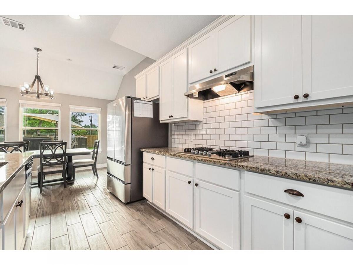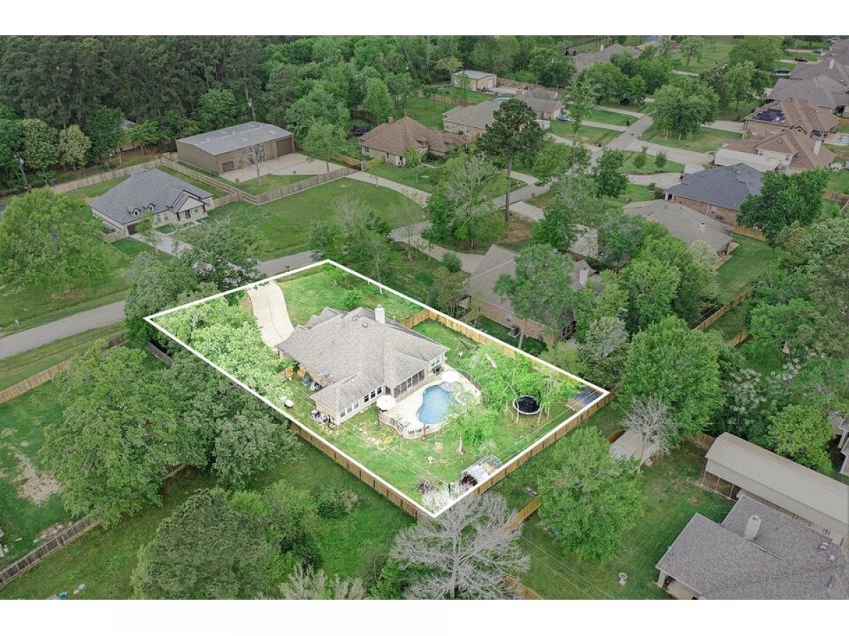 Welcome to this stunning home, nestled on nearly half an acre in Lakeside Estates. This beautiful one-story gem offers 4 spacious bedrooms, an open-concept living area, soaring ceilings, and a private backyard paradise complete with a pool and spa. As you step inside, you#039;ll be greeted by elegant tile flooring that flows seamlessly through the main spaces. The gourmet kitchen features a large island with seating, walk-in pantry, white shaker-style cabinetry, sleek subway tile backsplash, and stainless steel appliances. The family room is anchored by a large brick fireplace, creating a cozy atmosphere for gatherings. The primary suite is your personal retreat, with a corner jetted tub, a spacious walk-in shower, and an extended vanity. The screened-in back porch offers the perfect spot to unwind while overlooking the inviting pool and spa. This home allows you to enjoy peaceful country living while being conveniently close to 290, 249, 99, and more. Donrsquo;t let this one slip away!