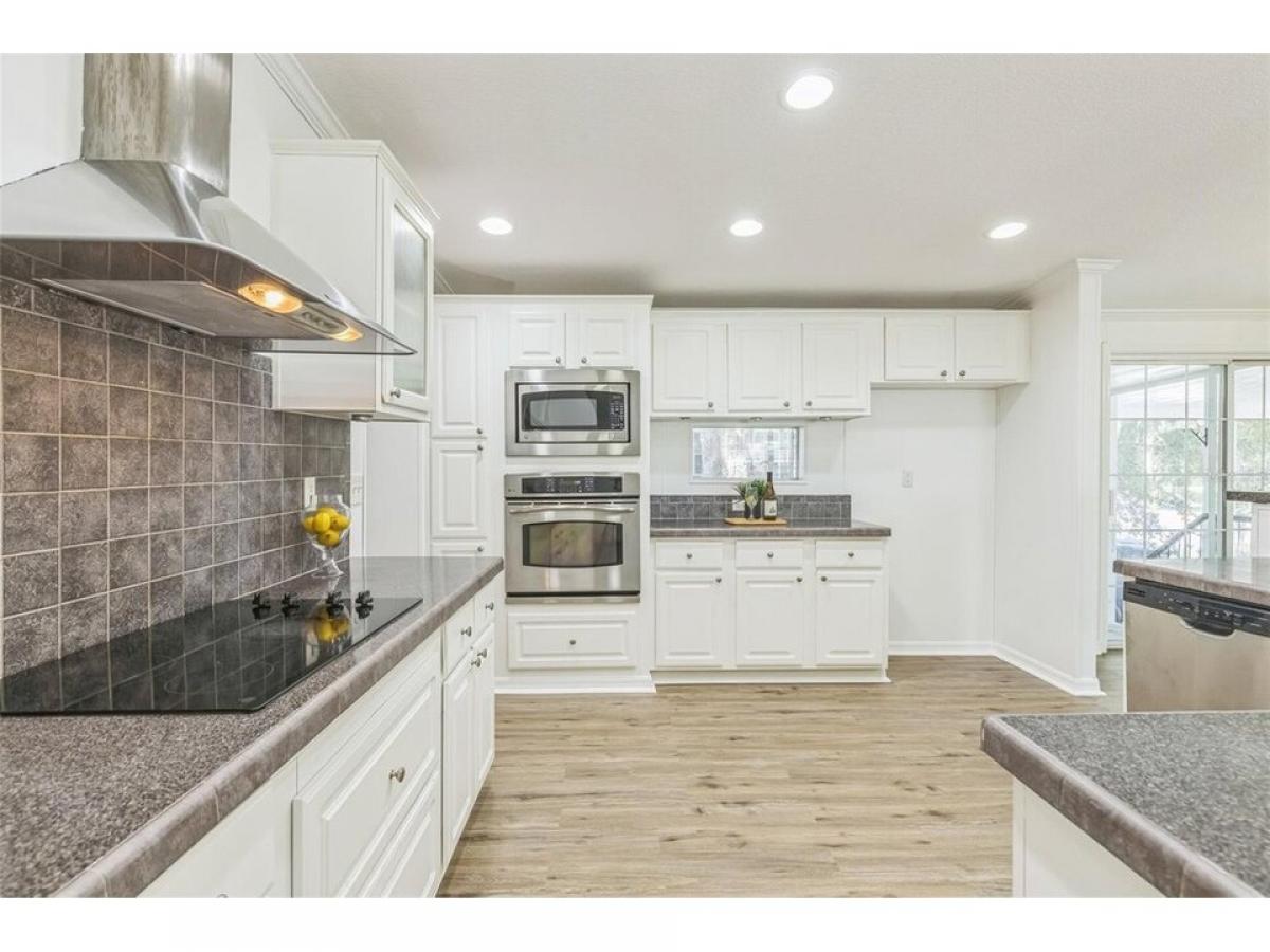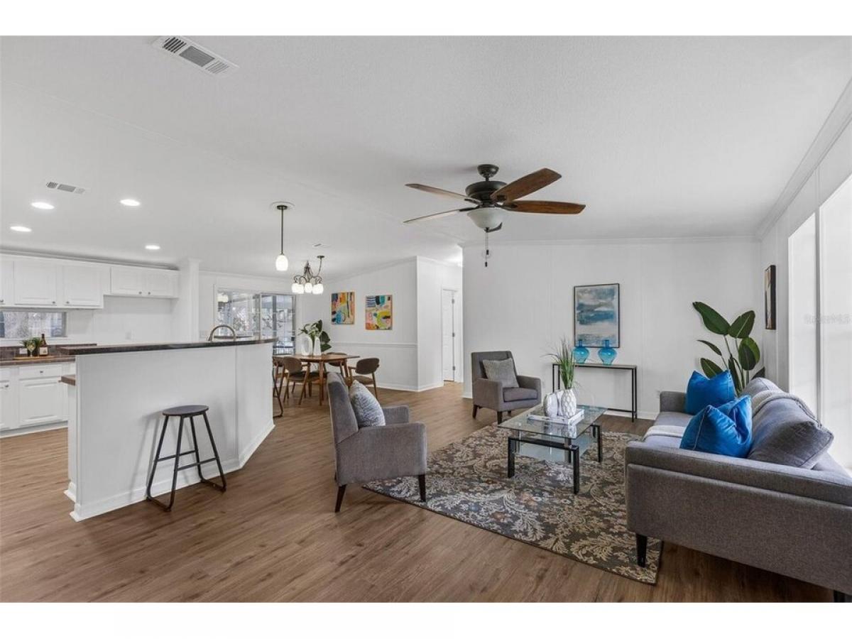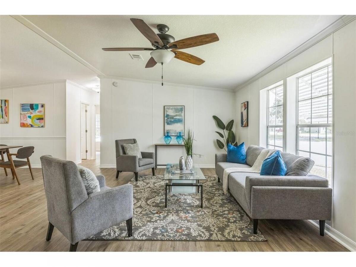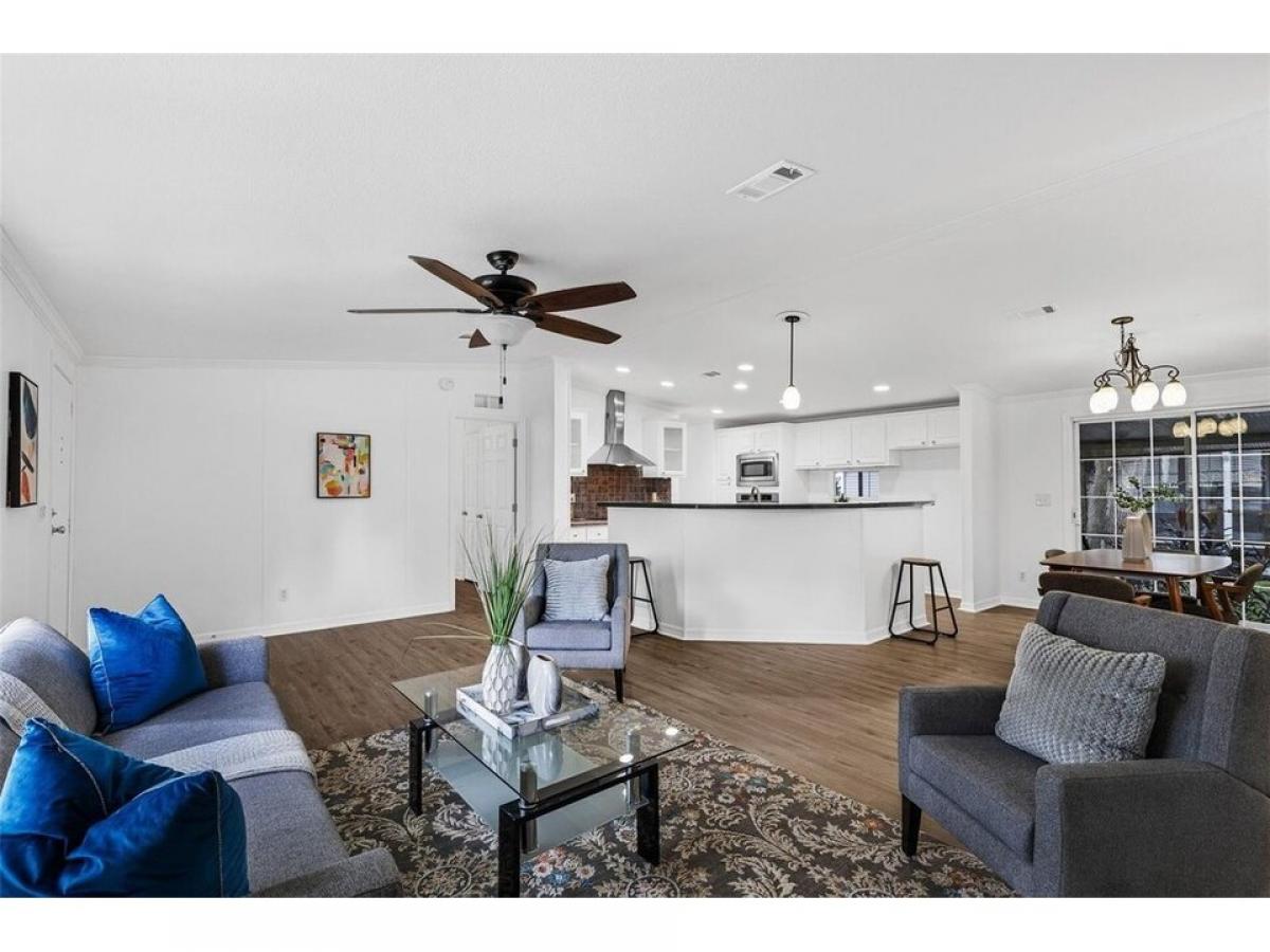 Under contract-accepting backup offers. BACK ON THE MARKET- BUYER FINANCING FELL TROUGH DAYS BEFORE CLOSING. Beautiful 3 bedroom/2-bathroom 2006-build manufactured home with a carport and screened-in side porch! New vinyl flooring and interior paint throughout. Open layout with a split floor plan, spacious kitchen featuring a built-in oven and microwave, plus a separate cooktop with a hood (NEW stainless-steel refrigerator will be installed before closing). Spacious master bedroom with a large walk-in closet and ensuite that features a double sink vanity and stand-in shower. Walk- in closets in all bedrooms! Home is on a nice corner lot and has a fenced in backyard, shaded by a gorgeous live oak. New HVAC and water heater, Metal roof less than 10 years old! Own both the land and home in the small and quiet community of The Meadows where you can enjoy the community pool and peaceful neighborhood.