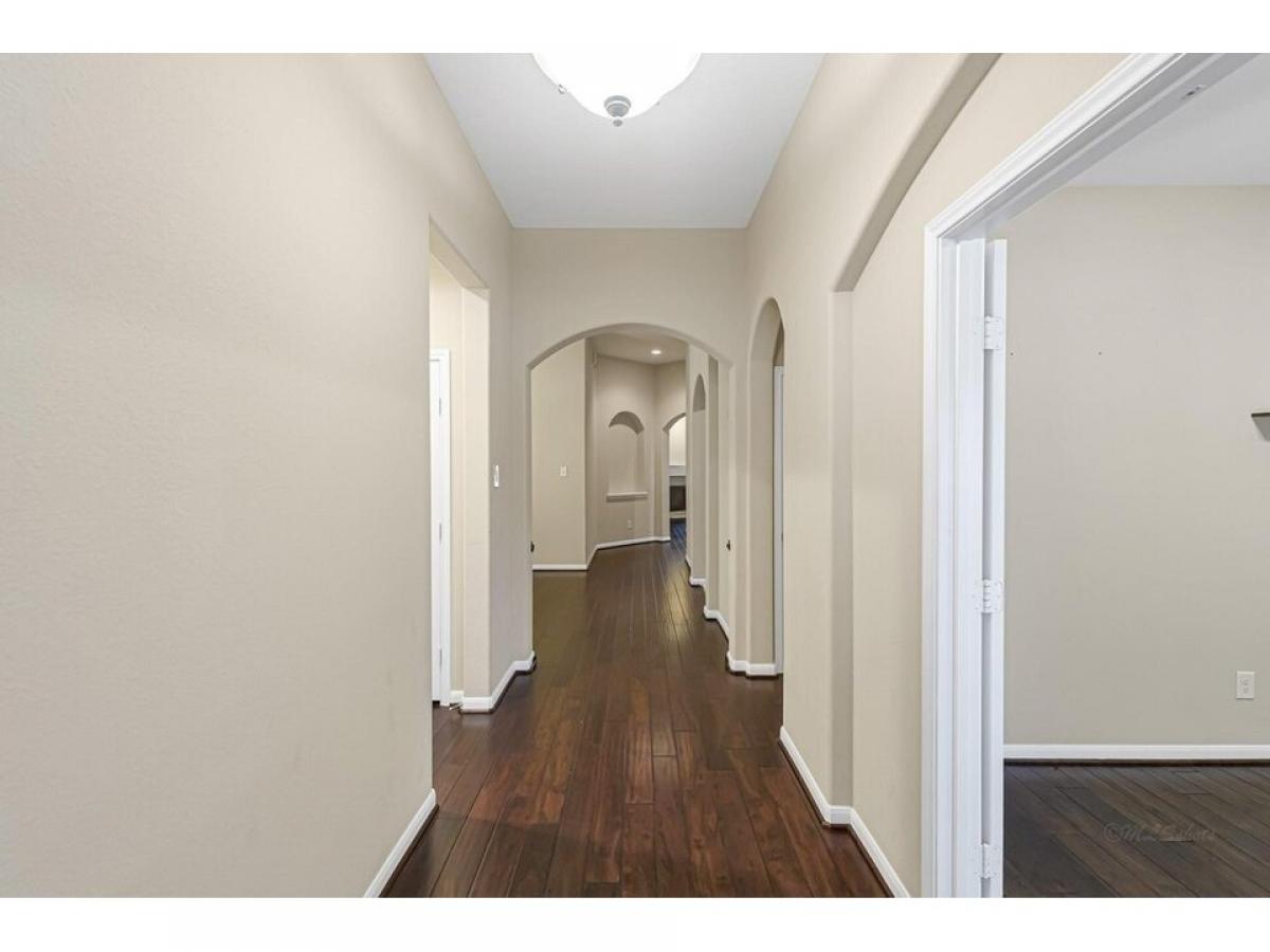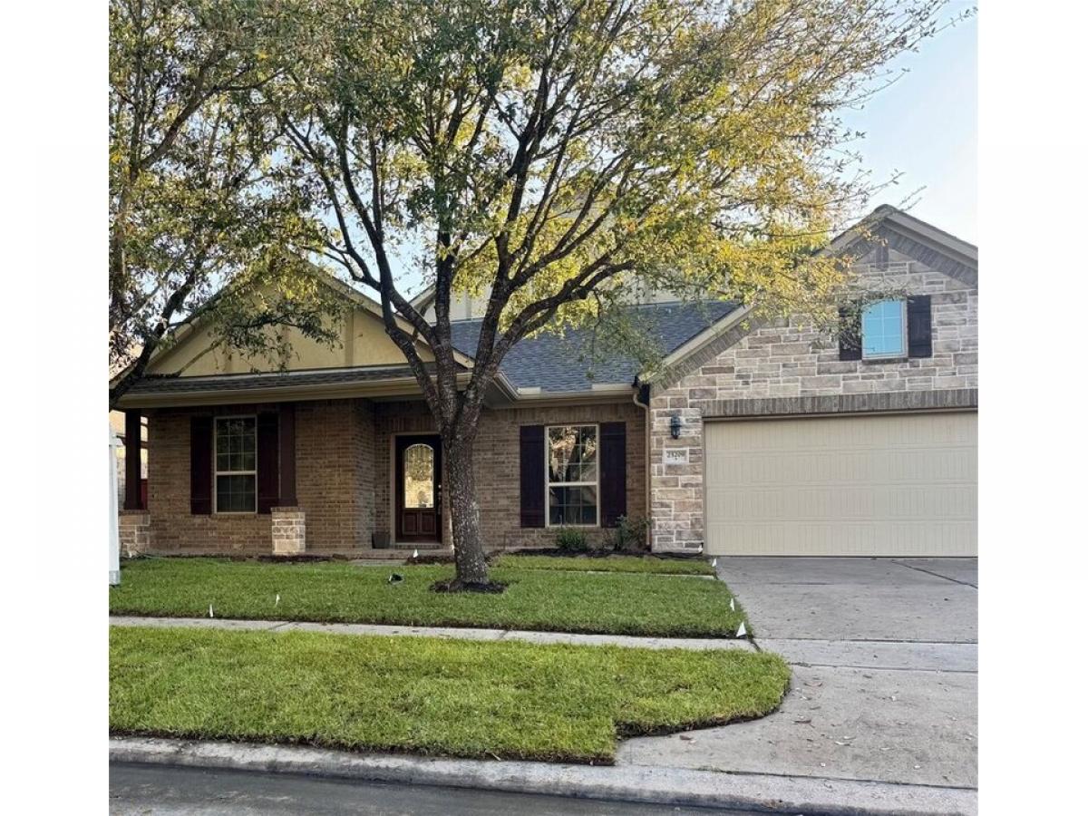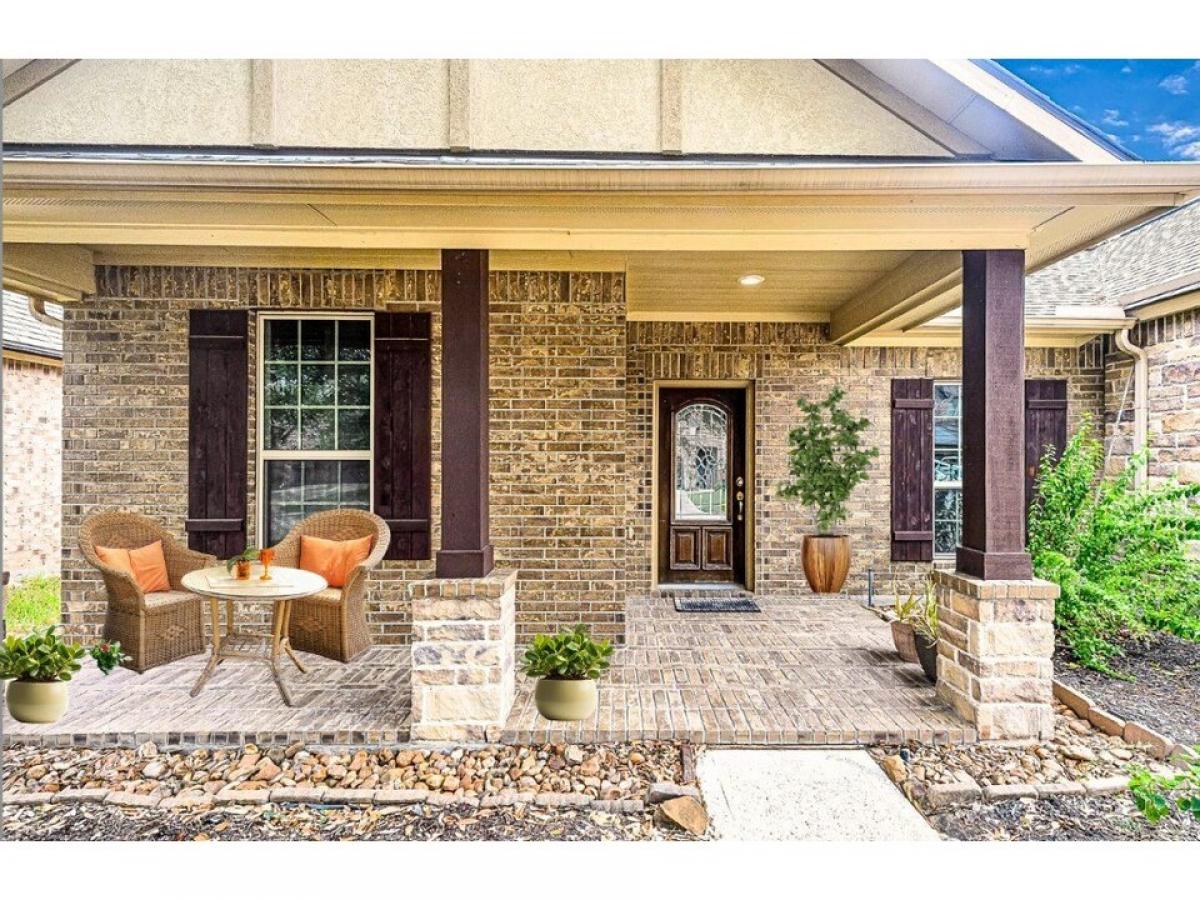 This charming 1frac12;-story home combines elegance and warmth with its stone and brick elevation, creating a timeless appeal. Large windows frame the front, while a welcoming covered porch invites you in. Inside, the engineered wood floors stretch throughout the main living areas, offering a sleek, durable surface with a warm, inviting tone. The open-concept layout enhances the sense of space, with a cozy living room that flows seamlessly into a well-appointed kitchen. The kitchen boasts modern appliances, ample cabinetry, and a large island, perfect for gatherings. The main floor features a spacious master suite, complete with a walk-in closet and a luxurious en-suite bathroom that includes dual vanities and a soaking tub amp; sep shower. Three more bedrooms and a versatile office provide additional space for family or guests. Upstairs is a huge bonus room with lots of storage and a full bath. No flooding, quiet neighborhood and great schools. This one is a must see!