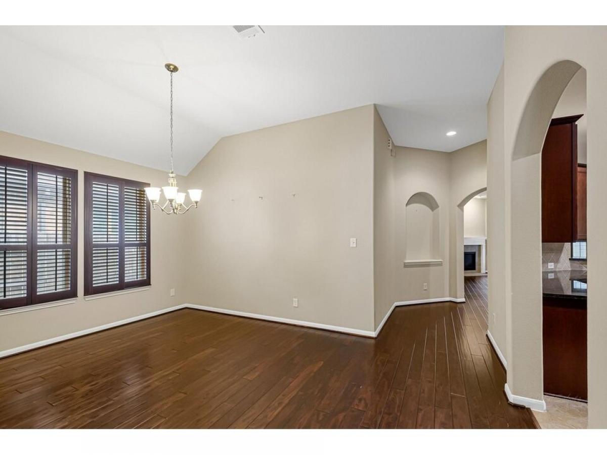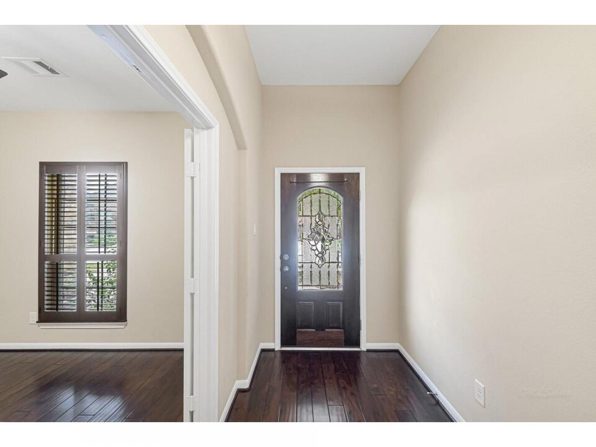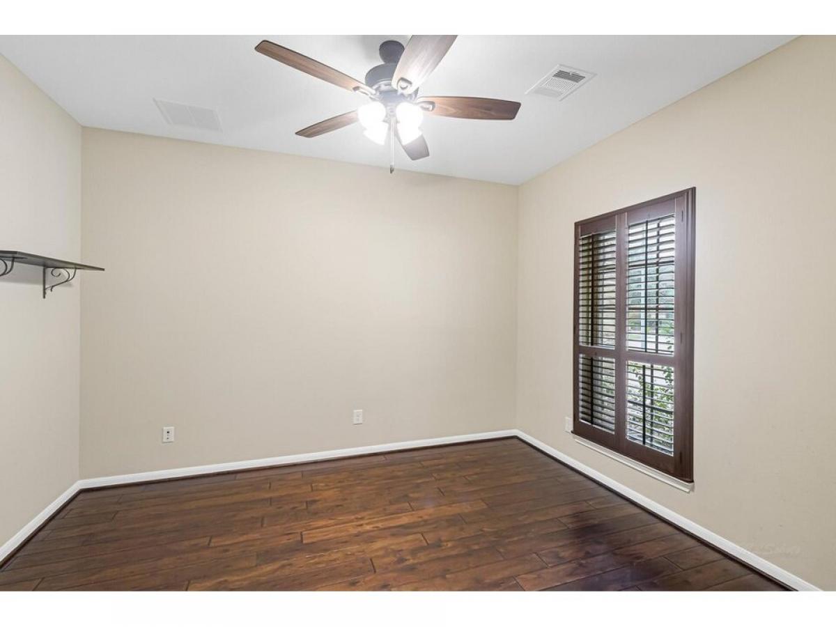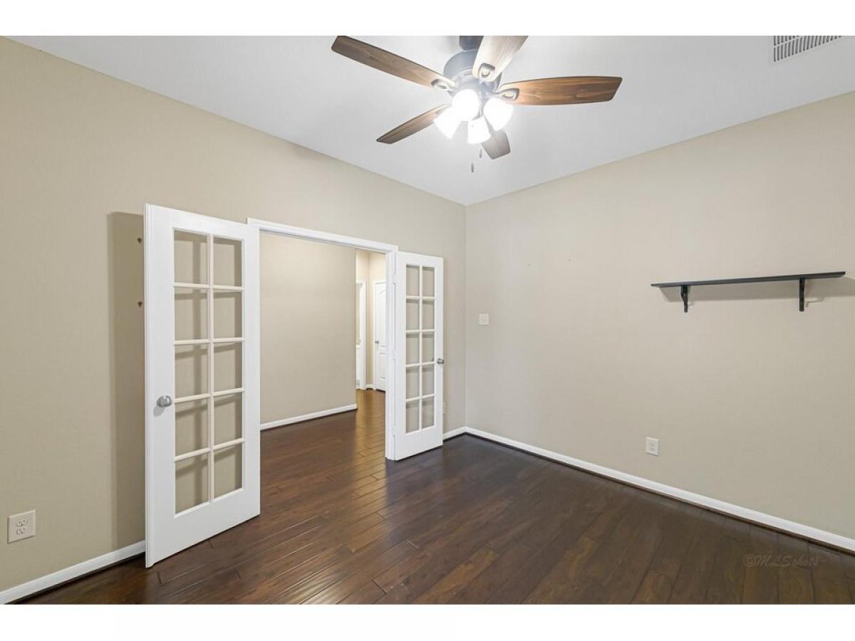 This charming 1frac12;-story home combines elegance and warmth with its stone and brick elevation, creating a timeless appeal. Large windows frame the front, while a welcoming covered porch invites you in. Inside, the engineered wood floors stretch throughout the main living areas, offering a sleek, durable surface with a warm, inviting tone. The open-concept layout enhances the sense of space, with a cozy living room that flows seamlessly into a well-appointed kitchen. The kitchen boasts modern appliances, ample cabinetry, and a large island, perfect for gatherings. The main floor features a spacious master suite, complete with a walk-in closet and a luxurious en-suite bathroom that includes dual vanities and a soaking tub amp; sep shower. Three more bedrooms and a versatile office provide additional space for family or guests. Upstairs is a huge bonus room with lots of storage and a full bath. No flooding, quiet neighborhood and great schools. This one is a must see!