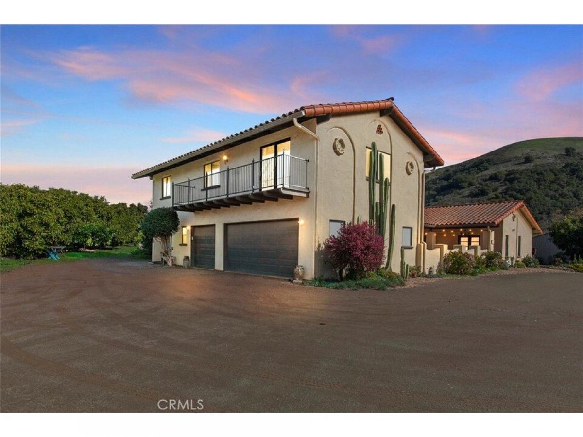 If yoursquo;ve ever dreamed of a peaceful hacienda near the coast, this 6-acre property is the perfect spot. Just 4 miles from Morro Bay, you get the fresh ocean air without the coastal fogmdash;plus, yoursquo;ll have your own boutique avocado farm! Drive through the wrought iron gate, and yoursquo;ll find a charming home with classic Mexican hacienda style. Saltillo tile, warm wood accents, and a welcoming courtyard set the tone. Inside, the open living and dining space is made for gatherings, with a built-in buffet, a cozy fireplace, and French doors leading to the courtyard. The kitchen has handpicked tile, a pantry cupboard, two ovens, and opens up to a bright dining and family room with backyard views. Cozy up to a wood burning fireplace accented with Mexican tile. Adjacent to the family room you will find a large office giving you extra space to work or create. The primary suite has two custom walk-in closets, a spacious ensuite with a tiled shower, separate tub, and dual sinks. Two more bedrooms down the hall have large closets and views of the avocado trees. A large laundry/mudroom also includes a bathroom, complete with showermdash;super handy for cleanup after working outside or surfing. Upstairs, the separate apartment above the 3 car garage gives you optionsmdash;guest space, rental income, or room for extended family. It is equipped with a full updated kitchen, a great room with 2 balconies, and a spacious bedroom with its own balcony and ensuite. This space is enhanced by panoramic views from every window and balcony. Outside, the 210-tree avocado grove is set up for small-scale farming, and therersquo;s also a fenced 2-acre pasture suitable for livestock. The 720 sq ft metal garage has a new, well thought-out workbench and cabinets, great for projects or storage. With wide-open space, beautiful design, and a prime location near the beach and wine country, this is a special place to call home!