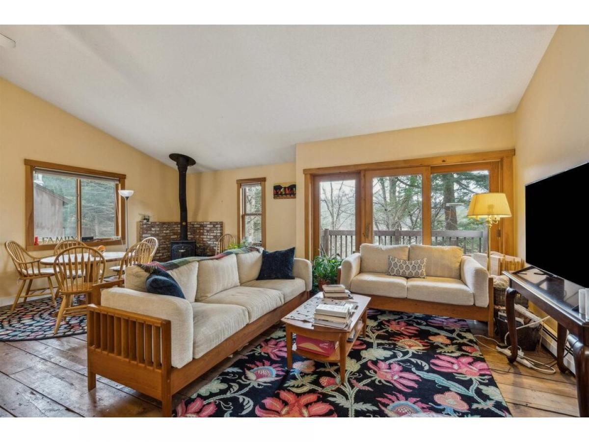 Mill Run Condo, a QLLA property, is conveniently located close to the Upper Valley, Ski Resorts, Woodstock, and Dartmouth College. This condo features an open floor plan on the main level with a tree house feel from the deck that has views of the Ottauquechee River in the winter and is in the tree canopy in spring, summer, and fall. The kitchen is open to the dining room, with a wood stove. The ceilings are high, and the wide open room gives a spacious feel. The main level also has a 1/2 bath. Just 8 stairs down to the lower level that has a spacious primary bedroom and convenient 2nd bedroom and a full bath. It has an entry closet, storage space below the stairs, and extra space for the condo. This condo is part of the Quechee Lake Landowners Association and all it has to offer. Showings begin on April 19th. 48 hours notice is required
