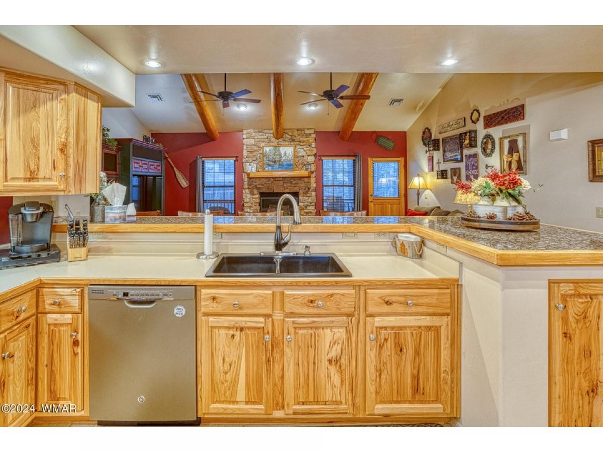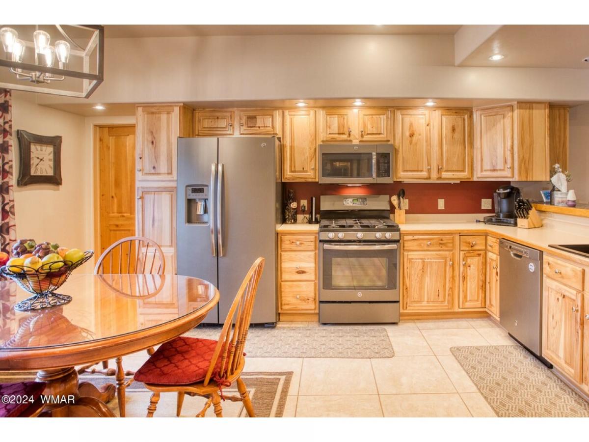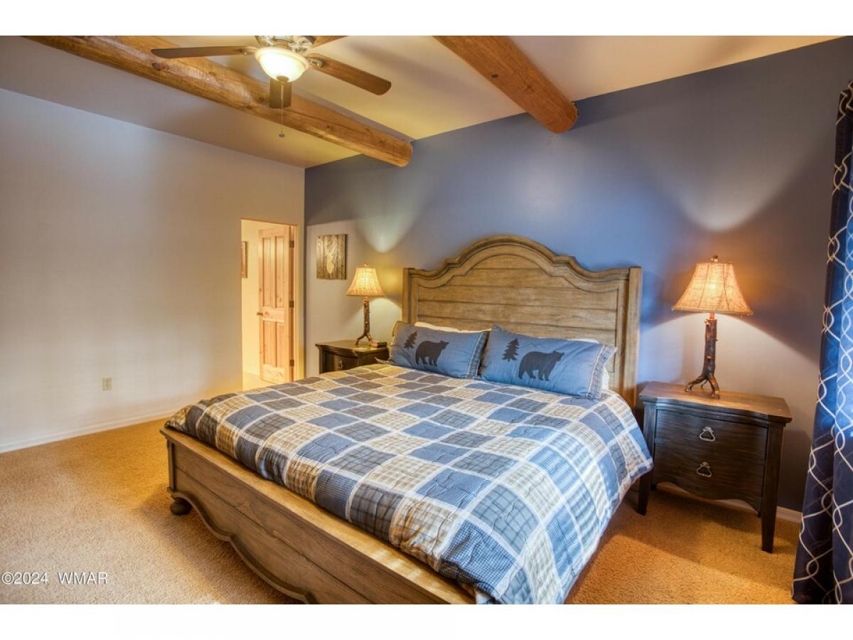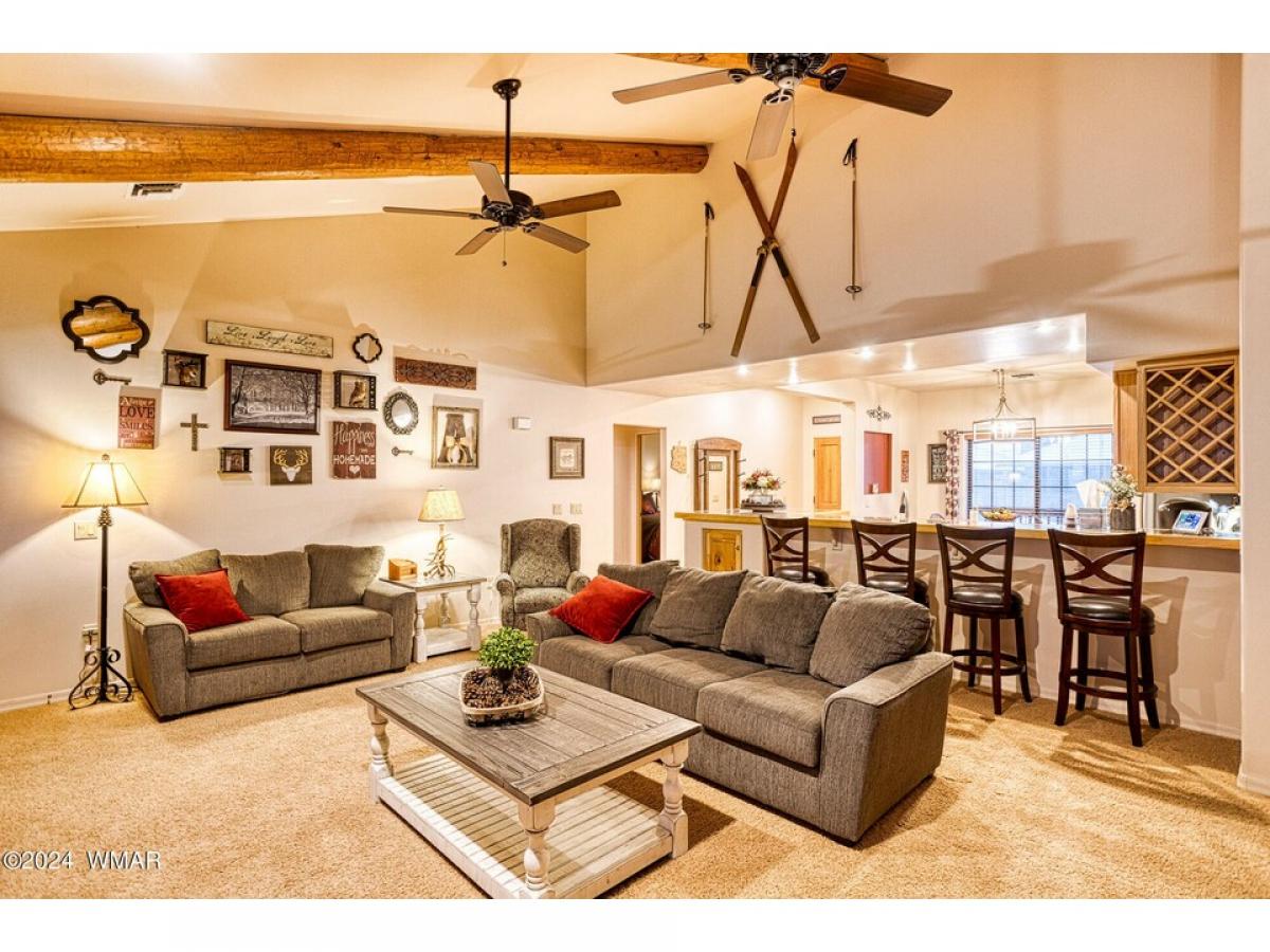 Welcome to 2531 Village Court, a charming end unit nestled on the second floor offering everything you need in a mountain home. Fully furnished and turn-key, the desirable split floorplan boasts a meticulously maintained interior, vaulted ceilings & stunning real log beams. Upgrades include added cupboard space, high-end appliances, and new roof installed in 2023! Entertain on the eastern facing and expansive barrel-vaulted deck, providing panoramic views of tall pines and lush greenery. Conveniently situated in the gated community of The Village in Pinetop Country Club, this residence offers easy access to golf, hiking trails, skiing, town amenities, and more! This is the condo you've been waiting for! Seller is licensed to sell Real Estate in AZ