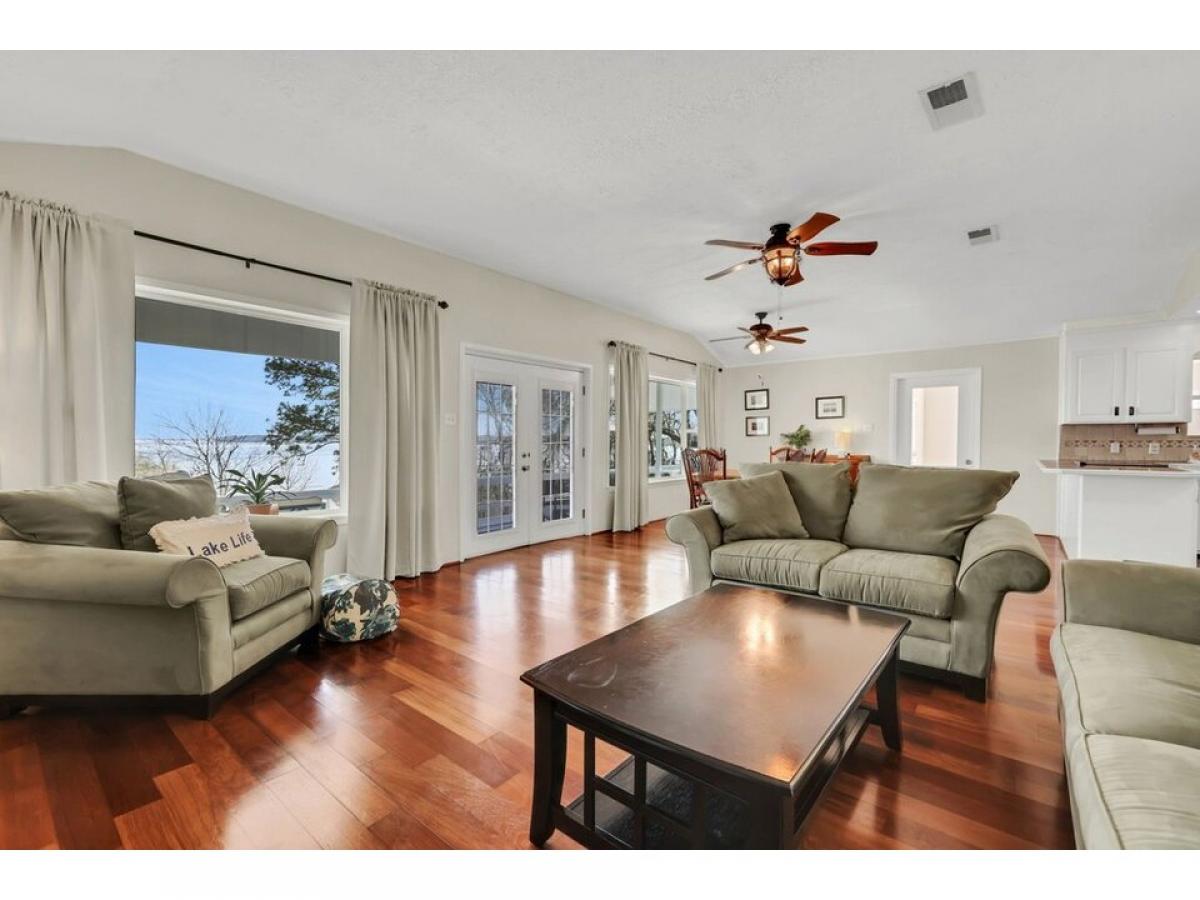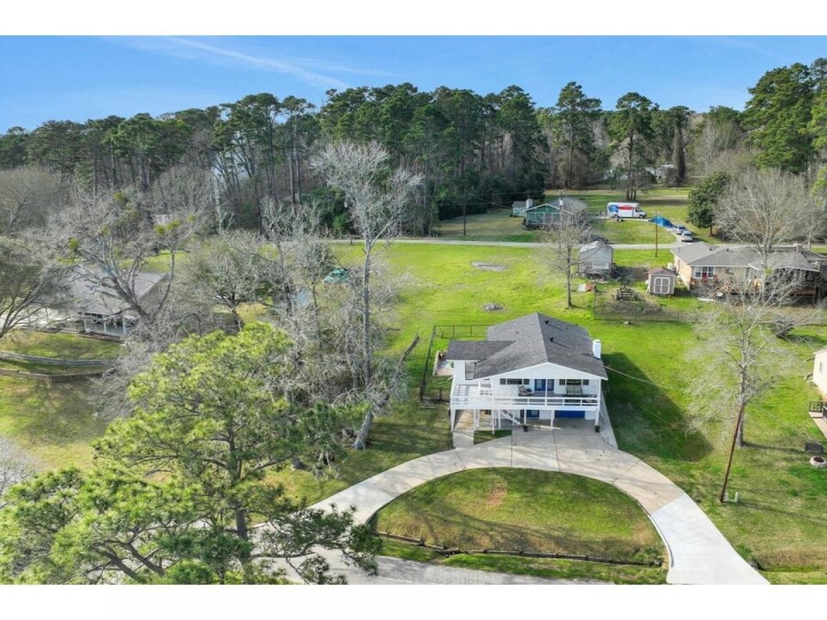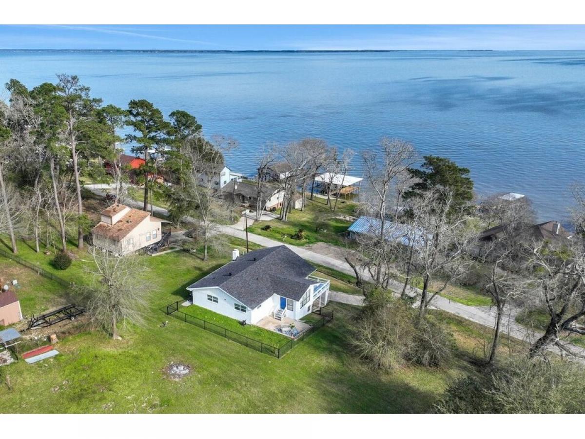 Enjoy breathtaking views of Lake Livingston from this elevated two-story home, perfectly designed to capture the beauty of the open water and Pine Island. Located directly across the street from the lake, this 3-bedroom, 2-bathroom home offers a peaceful getaway. The adjacent lot is included, ideal for added privacy and a natural buffer between neighbors. Inside, the open-concept living, kitchen, and dining area is designed for easy entertaining, while the sunroom provides a relaxing space to soak in the scenery. The elevated front deck is the perfect spot to enjoy the sunrise with your morning coffee. The home has a number of updates including the AC (2024), roof (2022) and freshly painted exterior (2025). Downstairs, the game room offers a great separated space for the kids and the garage provides good storage. Located in the Forest Cove community, this home is conveniently situated between Huntsville and Livingston and just one hour north of The Woodlands.
