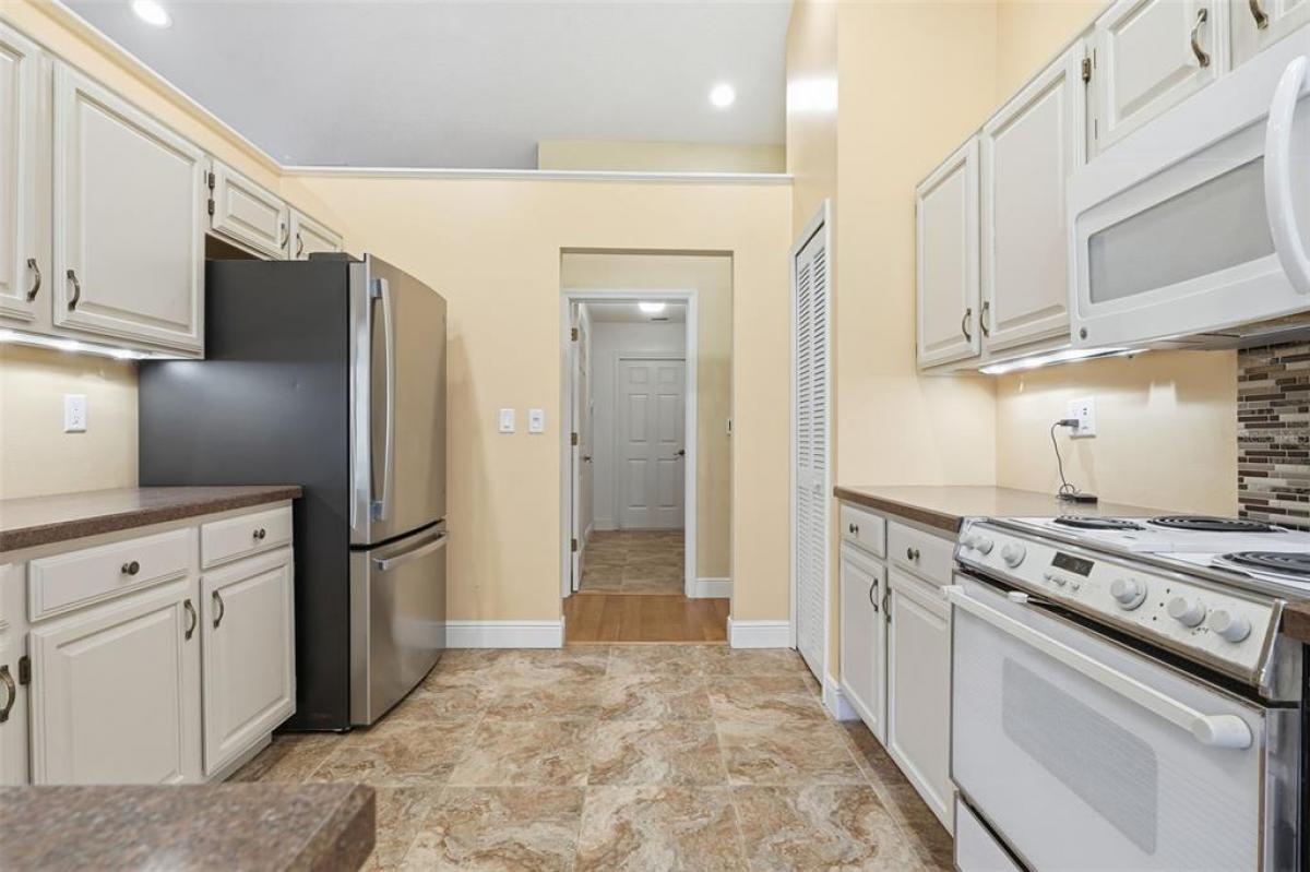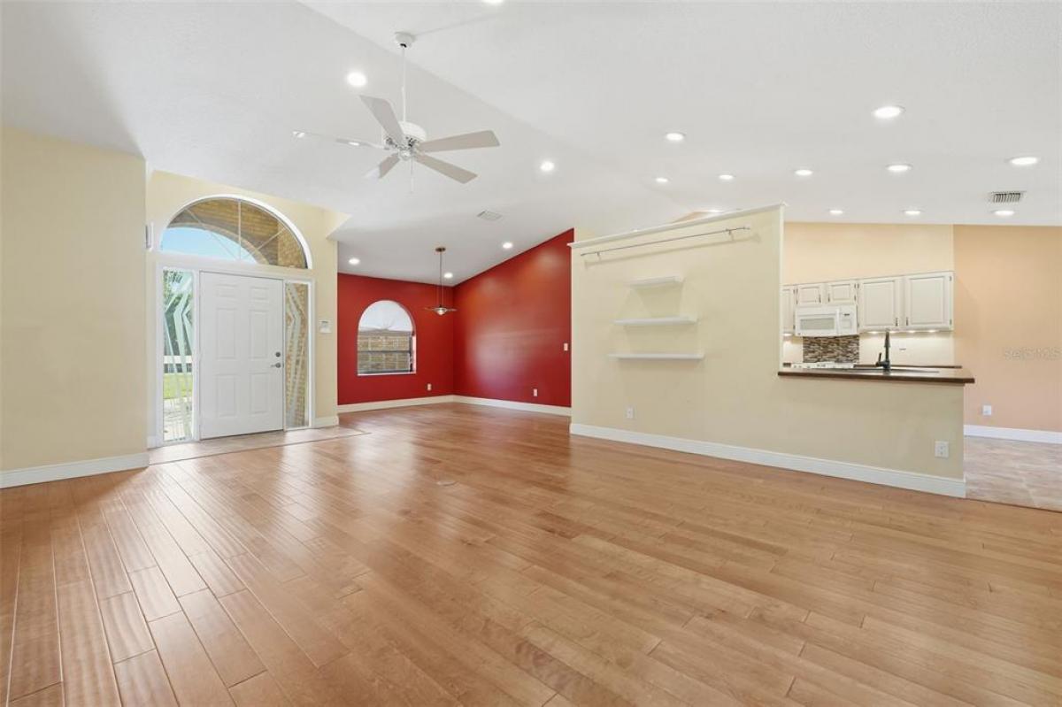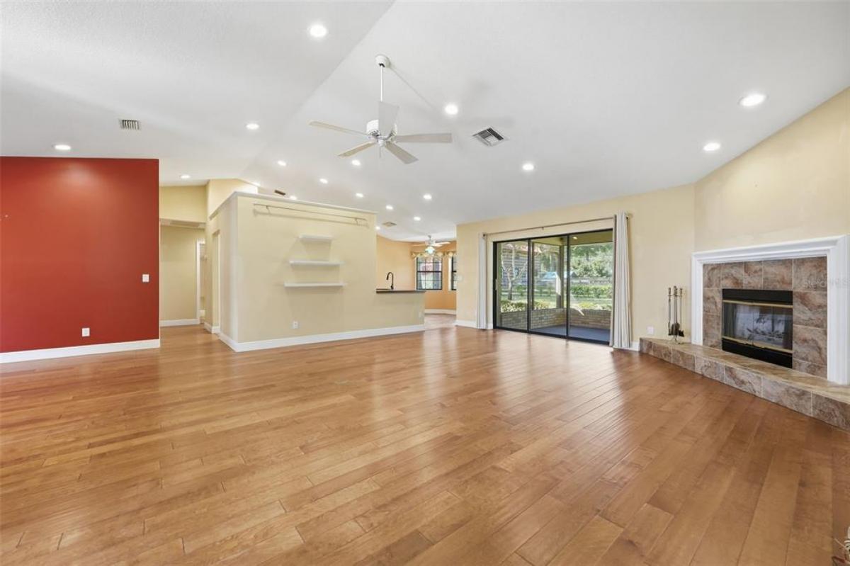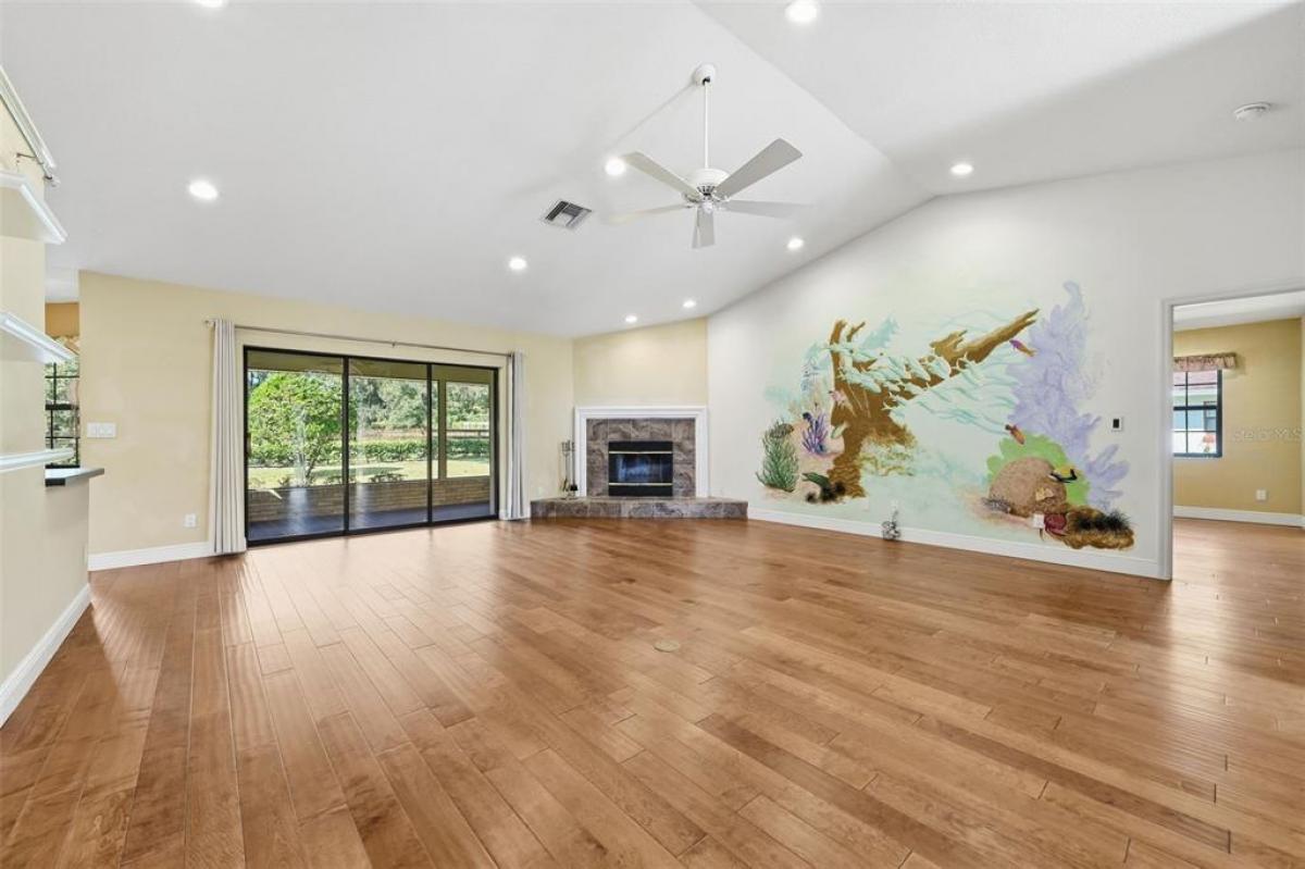 Welcome to this beautifully maintained 3-bedroom, 2-bath home in the sought-after community of MOUNT PLYMOUTH. From the moment you step inside, you’ll notice the thoughtful layout and inviting atmosphere. The primary suite is located just off the entry to your right, offering a peaceful retreat with a large walk-in closet and a private bath. To your left, the formal dining room is ready for memorable gatherings, while the cozy living room features a wood-burning fireplace. At the heart of the home, the kitchen shines with a Jenn-Air stove, stainless steel refrigerator, a sleek composite graphite sink, pantry storage, and a space ready for your dishwasher. The cheerful breakfast nook overlooks the backyard, and multi-slide patio doors lead to a screened porch ideal for enjoying your morning coffee or a quiet evening breeze. The porch is already plumbed for your future hot tub! The split floor plan ensures privacy, with two additional generously sized bedrooms and a full bath on the opposite side of the home. Storage is abundant, with a linen closet, laundry room with cabinetry, attic storage above the two-car garage, and plenty of room for your boat or toys. The washer and dryer are included for your convenience. Outside, the meticulously kept yard adds to the home’s appeal. Septic Drain Field replaced 2025. Located in a golf cart-friendly neighborhood with NO HOA, you’ll have easy access to SR-429, the Neighborhood Lakes Scenic Trail & Trailhead, East Lake Sports & Community Complex, and Lake Lucie Conservation Area. This home offers the perfect blend of comfort, style, and functionality—ready for you to move in and make it your own.
