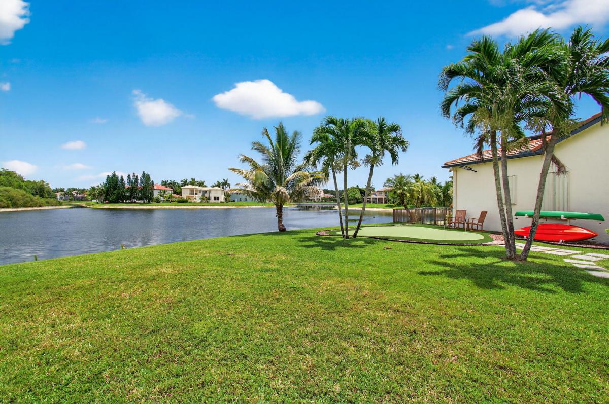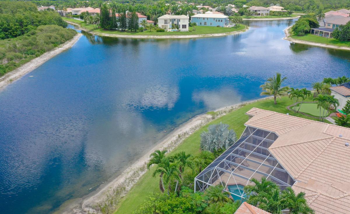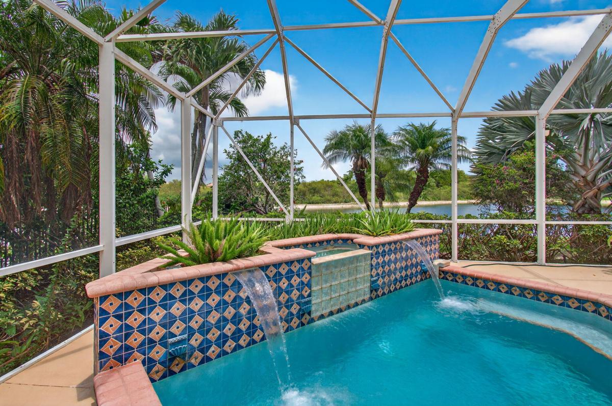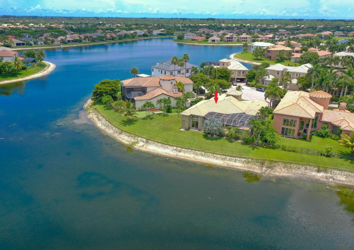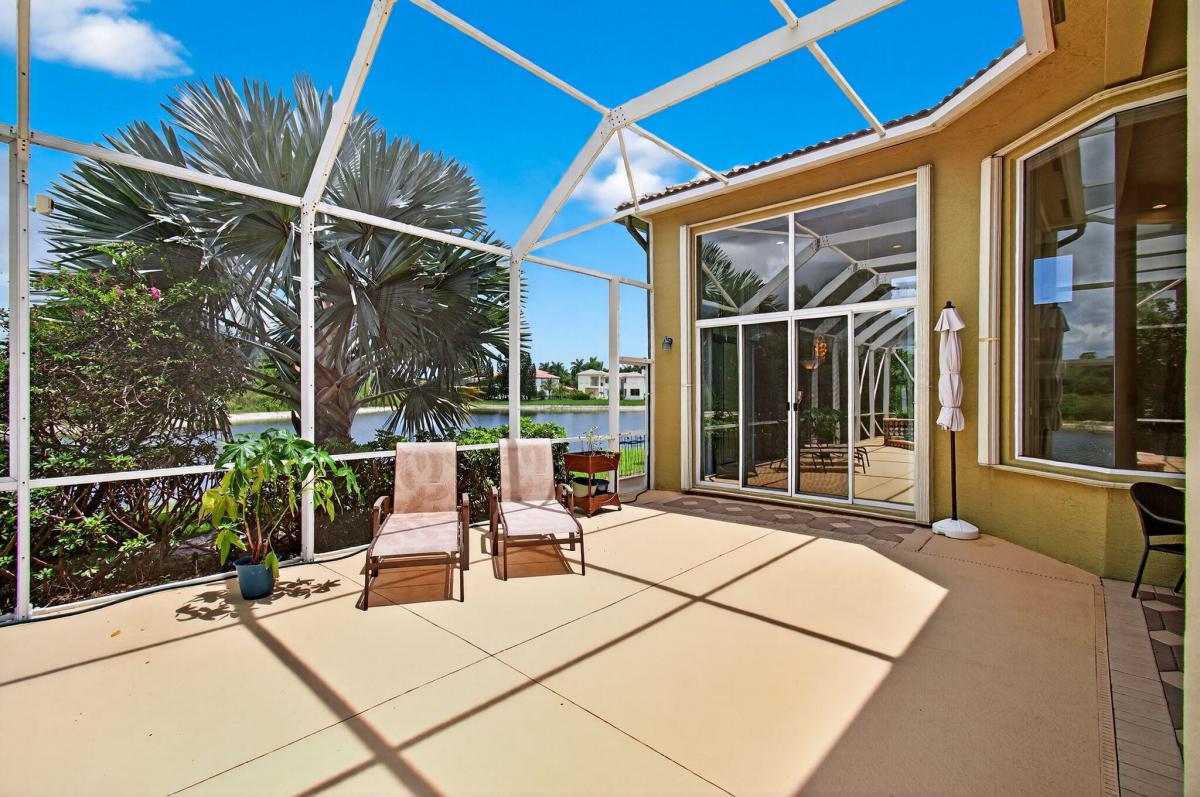 An extraordinary ONE-OF-A-KIND SETTING defines this rare one-story Casa Del Flora model perfectly positioned at the end of a quiet cul-de-sac in the exclusive Grandezza Estate Collection. With an oversized driveway that accommodates up to seven cars and surrounded by water and a lush preserve, it offers total privacy and the tranquil feeling of your own private island.For peace of mind and year-round comfort, the home features a buried propane tank, house generator, accordion shutters, and a screened-in oversized heated, salt water SPOOL, (an large spa...not a pool) an ideal setting for entertaining or enjoying "alfresco dining" in complete seclusion.This stunning model features soaring 14-foot ceilings, multiple coffered ceilings with elegant faux finishes, rich crown molding, and dramatic floor-to-ceiling glass throughout, flooding the home with natural light and showcasing serene water views.The open contemporary kitchen is designed for both style and function, featuring extensive cabinetry with pull-outs, granite countertops, a full granite backsplash, stainless steel appliances including a double oven, and a fully outfitted walk-in pantry. A large counter-height island serves as the perfect hub for entertaining, seamlessly opening to a massive family room anchored by transom windows, full-height glass, and sliding doors that lead to a breathtaking backyard oasis.This thoughtfully designed floorplan offers maximum privacy with the luxurious primary suite situated in its own wing. The suite features dramatic coffered drywall ceilings, serene views of the screened-in spool, and a massive custom outfitted walk-in closet. The spa-inspired primary bath includes a double-sided marble shower with dual shower heads, jetted spa package, sleek contemporary cabinetry with pull-outs, and a relaxing soaking tub.The opposite wing of the home includes three en-suite bedrooms, one of which shares its bathroom with a versatile fourth bedroom, ideal for guests or a home office.You'll fall in love with the enormous laundry room, complete with abundant cabinetry, folding space, a laundry sink, and washer and dryer.For the car enthusiast, the dream garage is a standout feature fully outfitted with over $30,000 worth of custom floor-to-ceiling cabinetry and a work area. A motorized attic lift system adds extra convenience for seasonal or long-term storage. (Tool chest and tools not included but available for purchase.)Additional highlights include a reinforced screen enclosure, newly installed screens, extensive recessed lighting, solid core doors, Hunter Douglas Silhouettes and Luminette shades, an electric car plug, wiring for a safe to alarm, family room surround speakers, patio speakers and included patio furniture with gazebo (grill excluded).Villa Olympia offers world-class amenities, including a lagoon-style pool and spa, tennis courts, pickleball, basketball, volleyball, a playground, an indoor basketball court, and a state-of-the-art fitness center. The clubhouse features an outdoor entertaining patio. HOA fees cover 24-hour gated security, recreation amenities, common area maintenance, property landscaping, internet, & irrigation. Walk to A-rated schools, the Wellington Green Mall, fine dining, Trader Joe's, & Whole Foods. Close to world-class equestrian events, the Wellington Tennis Center, Palm Beach Island, and more.Stylish, sophisticated, and move-in ready, this home is a true standout!