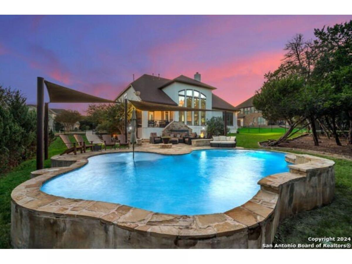 Step into timeless elegance with this stunning Old World-style home, perfectly nestled on a sprawling 1/2+ acre flat, treed lot. The backyard is an entertainer#039;s dream, featuring a breathtaking pool surrounded by extensive flagstone flatwork, multiple lounging areas, a double staircase leading to the covered patio, limestone benches, a firepit and lots of covered space around the pool. Whether you#039;re hosting a gathering or unwinding, this space is your private retreat. Inside, the gourmet kitchen steals the show with a 5x5 island, breakfast bar, gas cooking, and a butler#039;s pantry-all opening to the family room with a wall of windows that seamlessly blend indoor and outdoor living. Thoughtful upgrades include hardwood floors, upgraded interior paint, Cat5 and surround sound wiring, and a whole-house water filtration system. The oversized 3-car garage not only includes a utility sink and walk-in attic for extra storage but also has room for a car lift. This home is a rare blend of charm, luxury, and functionality-don#039;t miss out on this one-of-a-kind property!