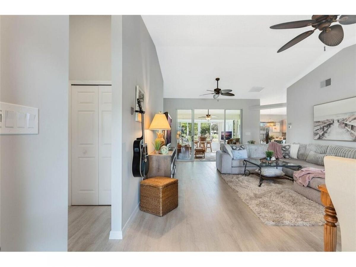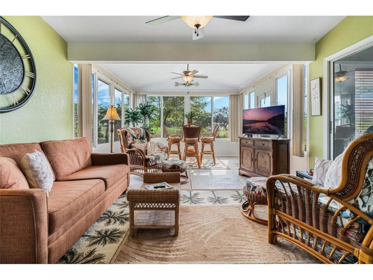 This meticulously maintained 2BR 2B home is located on a quiet cul de sac. There are no neighbors behind you, just a beautiful view of nature. There is a charming covered front porch. You will be delighted as you enter. The dining room is on your right but your view continues all the way through the living room and continues through the fantastic Florida Room. The openness is accentuated by the high ceilings and beautiful floors. The large windows in the Florida Room provide a marvelous view of nature behind the home. Nature is literally pulled into the decor of this home. Whether you are a nature lover, a bird watcher or just a person who enjoys a serene private space to read or meditate you will love this home. Open the windows at dusk and listen to natures symphony. To your right is a spacious kitchen with an eating area. There is lots of cabinet and counter space. The updated counters and backsplash compliment this home. Just outside is a patio for barbequing. On the other side of the house is the primary suite with the en suite bath room and walk-in closet. The 2nd bedroom and guest bath room will welcome your guests. This home is what Florida is all about. Join the fun in the sun at The Plantation a 55+ community with two 18 hole golf courses, a driving range, 3 activity centers, 3 heated pools with spas, men#039;s and women#039;s softball, tennis and pickle ball courts, horseshoes and many more amenities and special interest groups including art and crafts. Roof - 2014 AC - 2023 Most furniture is negotiable and the GOLF CART is included. Don#039;t miss this one!