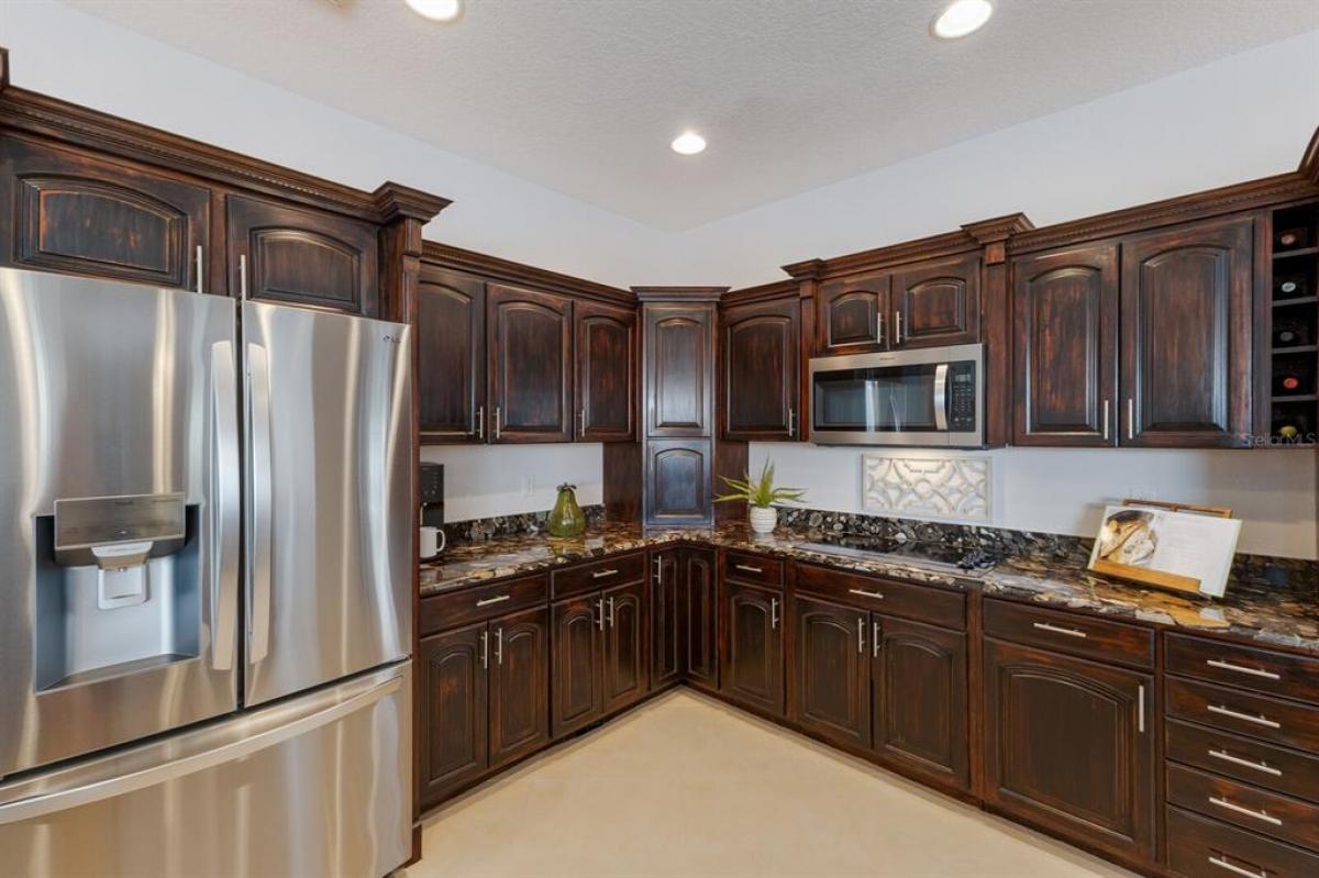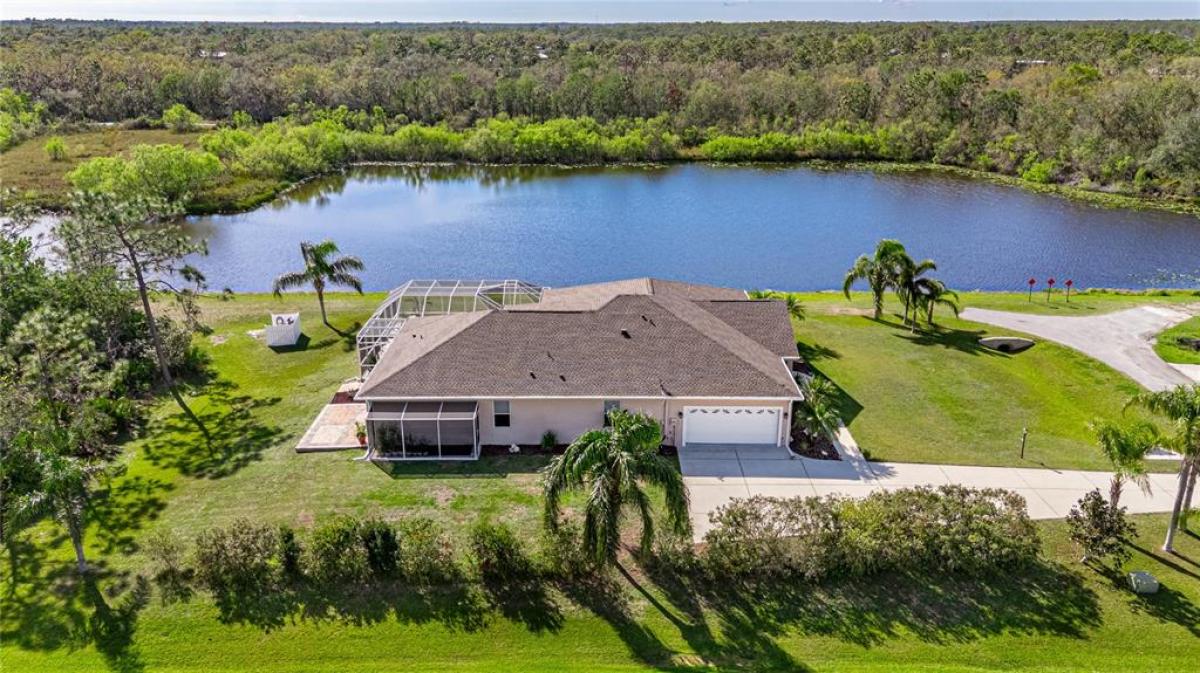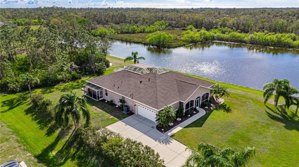Discover the perfect blend of luxury, privacy, and natural beauty in this stunning 4-bedroom, 4-bathroom lakefront home, nestled at the end of a quiet dead-end street on just under an acre of serene, forested property. With breathtaking water views and a peaceful preserve behind, this home offers complete privacy, ensuring the ultimate tranquility. Thoughtfully positioned, the home sits safely elevated high above the retention pond, providing both stunning scenery and peace of mind. Designed with both comfort and functionality in mind, the spacious split floor plan allows for a master suite tucked away from the guest bedrooms for added seclusion. The master suite is a retreat in itself, featuring three closets (including a walk-in and linen), dual sinks, an onyx countertop, a jacuzzi tub, a walk-in shower, and stunning water views from every angle. Three of the four bedrooms include en-suite bathrooms, while the fourth bath is perfectly positioned for guests, with direct access to the lanai for seamless indoor-outdoor living. All bathrooms feature elegant marble countertops, adding a refined touch throughout the home. The heart of the home is the expansive kitchen, complete with stone countertops, ample storage, a pantry, and a new refrigerator (2022), all while offering beautiful water views. The kitchen opens into casual and formal living spaces, creating an ideal environment for entertaining, enhanced by an indoor/outdoor speaker system. Large windows and sliding glass doors flood the home with natural light, enhancing the open feel and offering easy access to the lanai. Outside, enjoy the ultimate in outdoor living with a heated saltwater pool, spa, outdoor shower, and a separate enclosed garden area. The fully screened lanai ensures a peaceful and secure space to relax, entertain, or enjoy al fresco dining, while the private outdoor areas are perfect for embracing the surrounding nature. This property is zoned agricultural (not residential), so chickens, goats, and other small livestock are welcome if desired. This home has been thoughtfully updated with major improvements, including a new roof (2023), new Trane HVAC system with upgraded soft start (2023), new hybrid water heater (2023), and a new well pump (2022). Additionally, all smoke alarms throughout the house and a carbon monoxide detector were installed in 2024, with batteries and units designed to last 10 years, ensuring safety and peace of mind. Located in the up-and-coming area of Myakka City, this home offers the perfect balance of seclusion and convenience. It's just a short drive to shopping, dining, and local parks, including Myakka River and Lake Manatee State Parks. This property comes with a transferable business permit, previously operating as an Airbnb retreat, offering the potential for passive income or future resale value. Whether you're seeking a peaceful retreat, an investment opportunity, or both, this home presents an exceptional chance to enjoy the best of both worlds—privacy and tranquility, with endless possibilities for use. Nestled in a prime location with easy access to Lakewood Ranch, Waterside Place, UTC Mall, Boutique Shopping, Airports, and Beautiful Parks - offering both convenience and lifestyle at your doorstep.