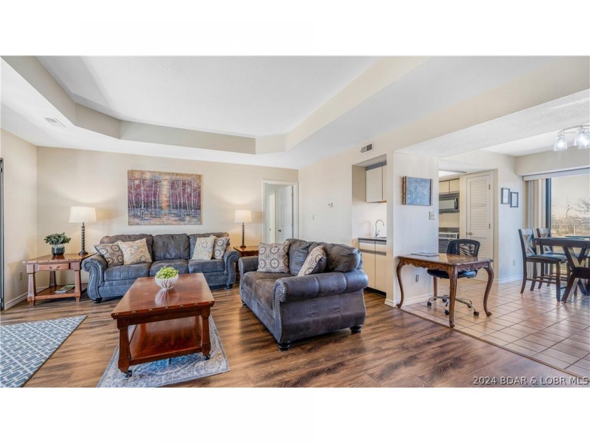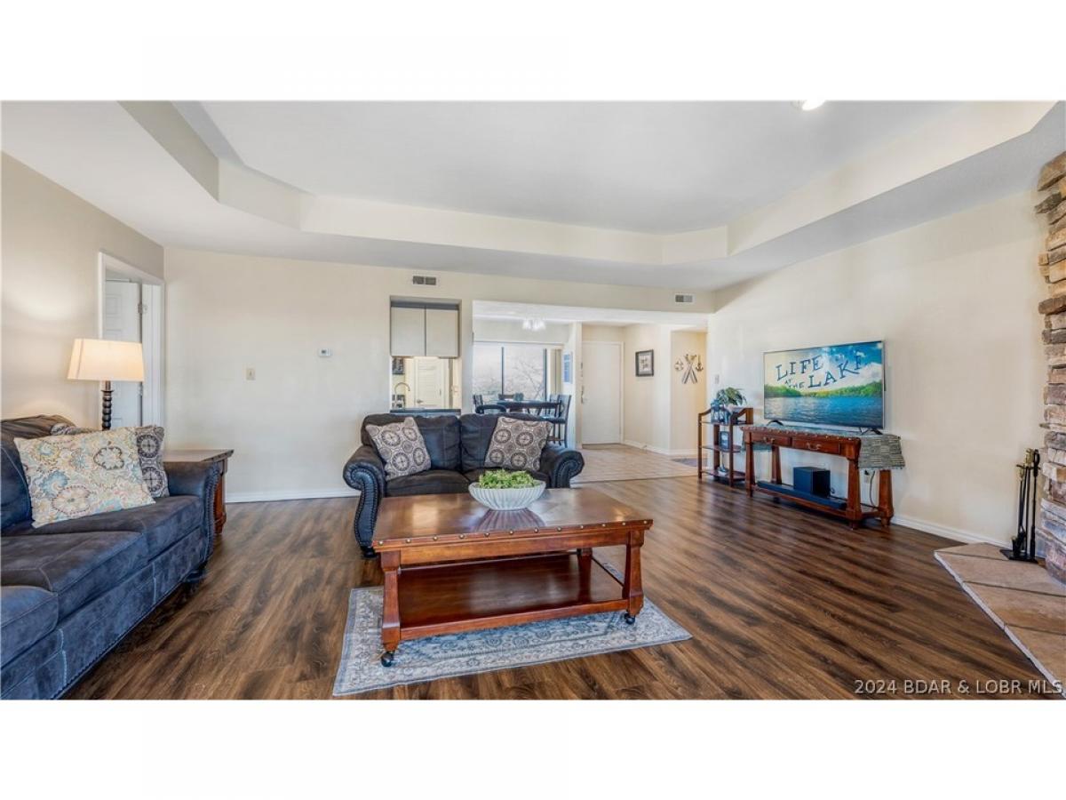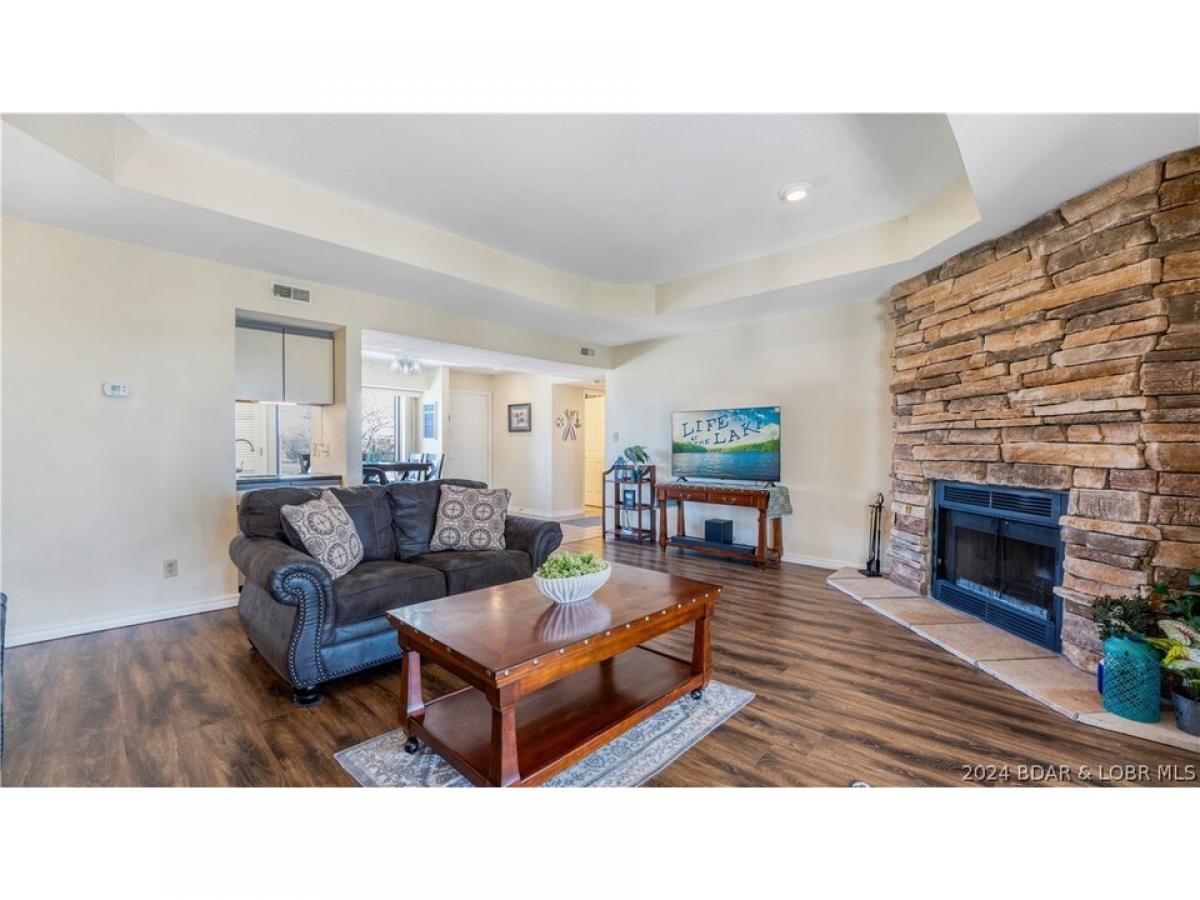 AWESOME LAKE VIEWS OVERLOOKING DOWNING BRANCH COVE, WATCH THE LIGHTS SHIMMERING OFF THE LAKE AT NIGHT FROM THE HUGE GLASSED With Sliders ON THE DECK!! TURNKEY on Top floor end unit. Great open floor plan with fireplace, granite counter in kitchen, Master Suite is on one end and guest on the other end. New Stainless-Steel Fridge 2024 (with ice maker needs hooked up) New dishwasher 2024, New Bathtub in hall bath 2024, New Washer & Dryer 2024, New Screened entrance door, A/C and Heating replaced in 2019, Fron the family room you have Beautiful Views of the lake and the Rolling Hills of the Robert Trent Jones Golf course. Ownership at Osage Vistas gives you Four Seasons amenities for you and your guests, and you are in walking distance to the Regalia Hotel and the amenities. Along with 6 Pools to use, playground, all on grounds. with Four Seasons amenities you have a Dog park, pools, tennis courts, boat ramp, campgrounds and more.... Offers are Welcomed. This would make a Great Investment Condo PRICED TO SELL FAST!!!