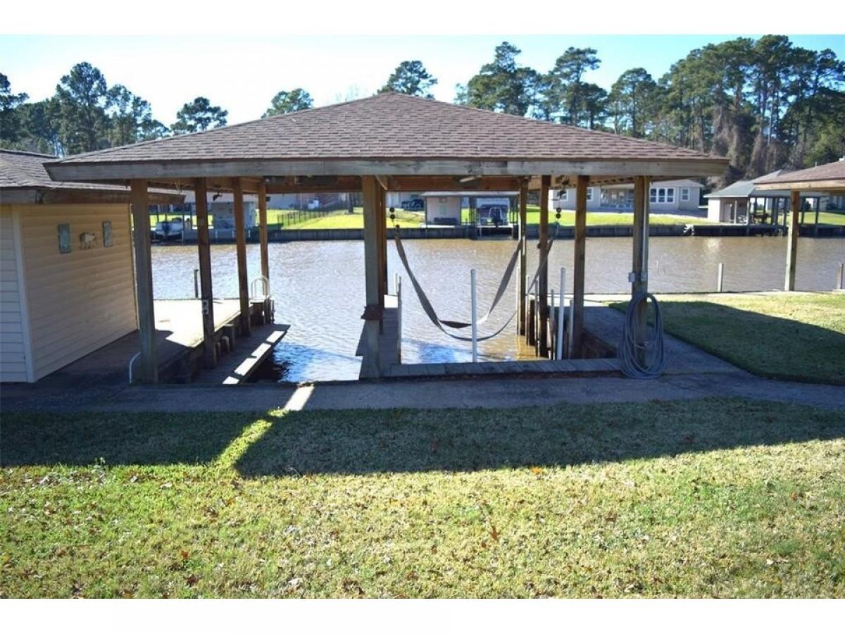 Welcome to this brilliantly designed 1 story stone custom home on TWO waterfront lots with a 4 car garage amp; 2 car port-a-cache. The property offers 4 bedrooms, 2.5 baths, island kitchen, dining and living room. No lake property would be complete without an inground pool and hot tub remote controlled, double boat house with lifts for boat and 2 jet skis (The pool pump and heater have recently been replaced). The boat house has a separate sitting area for outdoor cooking or fishing. The home sits on approximately .55 of an acre and offers breathtaking water views from multiple vantage points. The great room offers a floor to ceiling stone woodburning fireplace and is open to the kitchen making it perfect for entertaining. The home offers an executive kitchen, cooking island, custom cabinets and double ovens. The master suite at 13x26 offers the perfect proportions to create the owners split sanctuary. The home comes with a Generac generator and updated windows with a lifetime warranty.