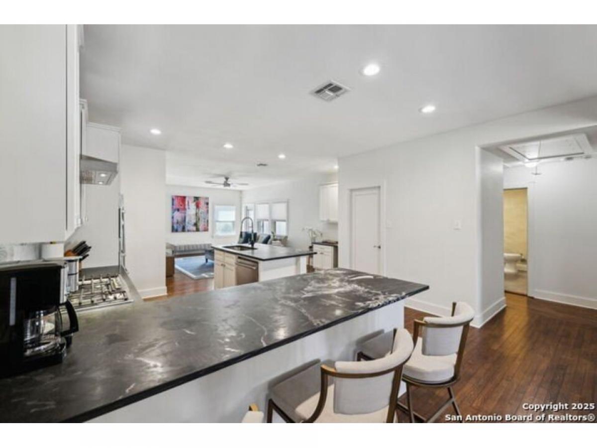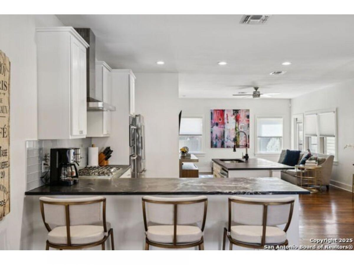 This charming Alamo Heights home offers a rare, true 4-bedroom, 4-bath layout, with each bedroom privately situated for ultimate comfort. The home was completely redone in 2021 to include foundation, electrical, plumbing, and all mechanical systems. A versatile flex space adjoins one of the bedrooms, perfect for a home office or game room. Enjoy two spacious living areas, a built-in bar with a wine fridge, and a kitchen that seamlessly opens to the main living space. The kitchen features timeless soapstone countertops, stainless steel appliances, and custom cabinetry. Great pantry amp; a buit-in desk off the kitchen. Dedicated laundry room with drop space! The expansive primary suite boasts two separate closets, providing ample storage. Step outside to a charming screened-in porch overlooking a beautiful Keith Zars pool amp; spa - your own private retreat. Additional highlights include an alley-access two-car garage and a prime location in sought-after Alamo Heights.