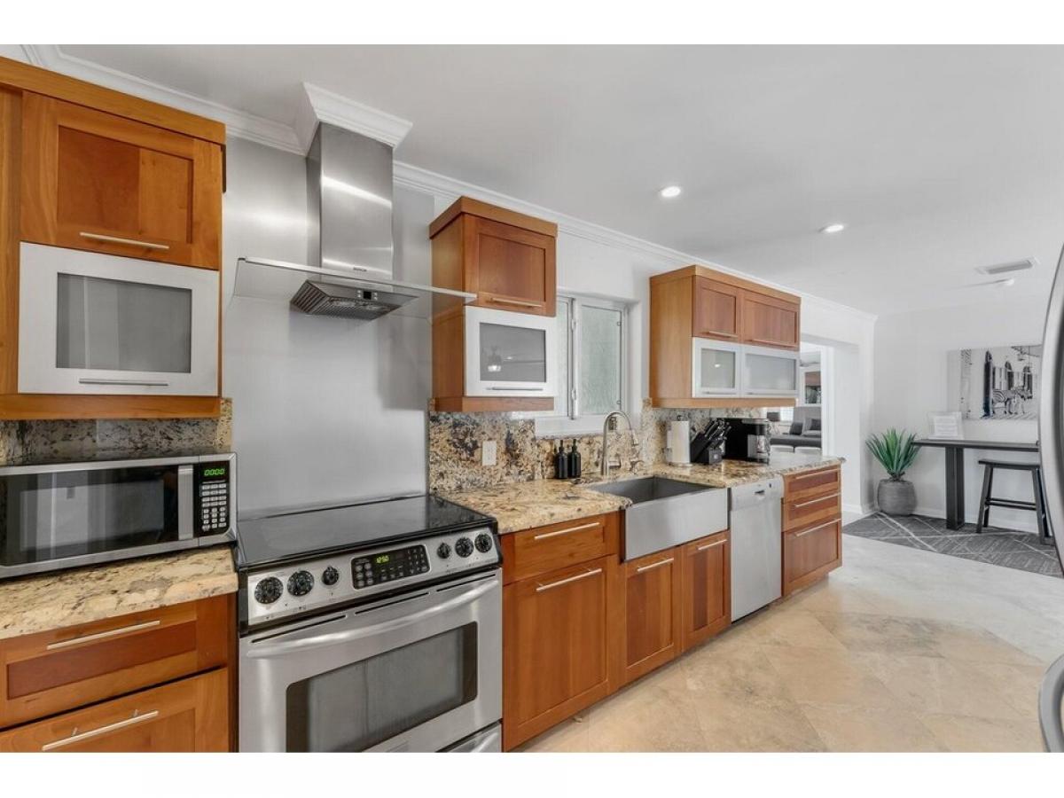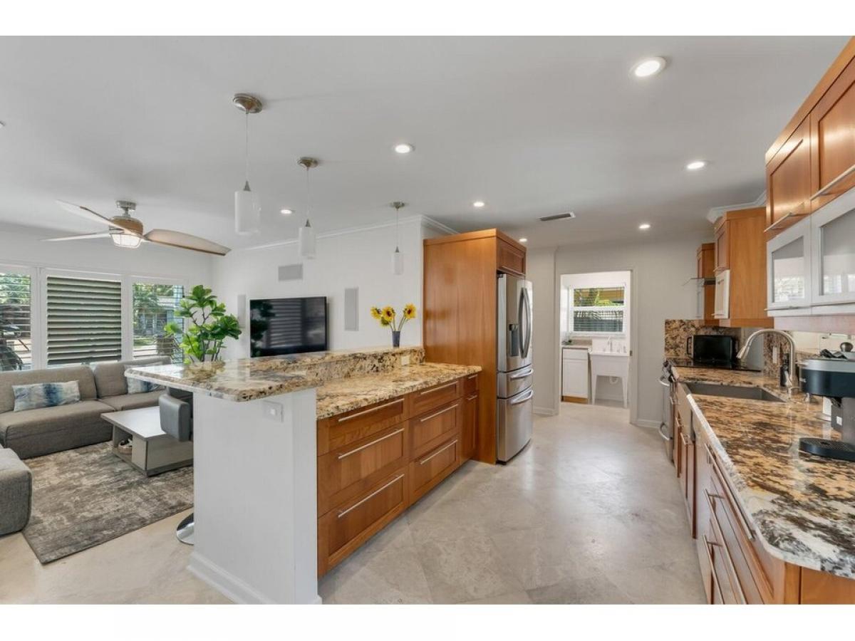 Discover your ideal home in the vibrant city of Lighthouse Point, where modern luxury meets laid-back tropical living. This beautifully maintained property is a true gem, offering an inviting atmosphere from the moment you arrive. The expansive open-concept design features a large, well-appointed kitchen with plenty of counter space and storage, perfect for both everyday living and entertaining. Step outside to your private outdoor oasis, complete with a sparkling pool, a spacious covered patio, and a charming Tiki Hut--ideal for gatherings or unwinding in the Florida sunshine. Renovated and added on in 2008, the impact doors for added peace of mind. The plumbing throughout is entirely PVC--no cast iron pipes to worry about