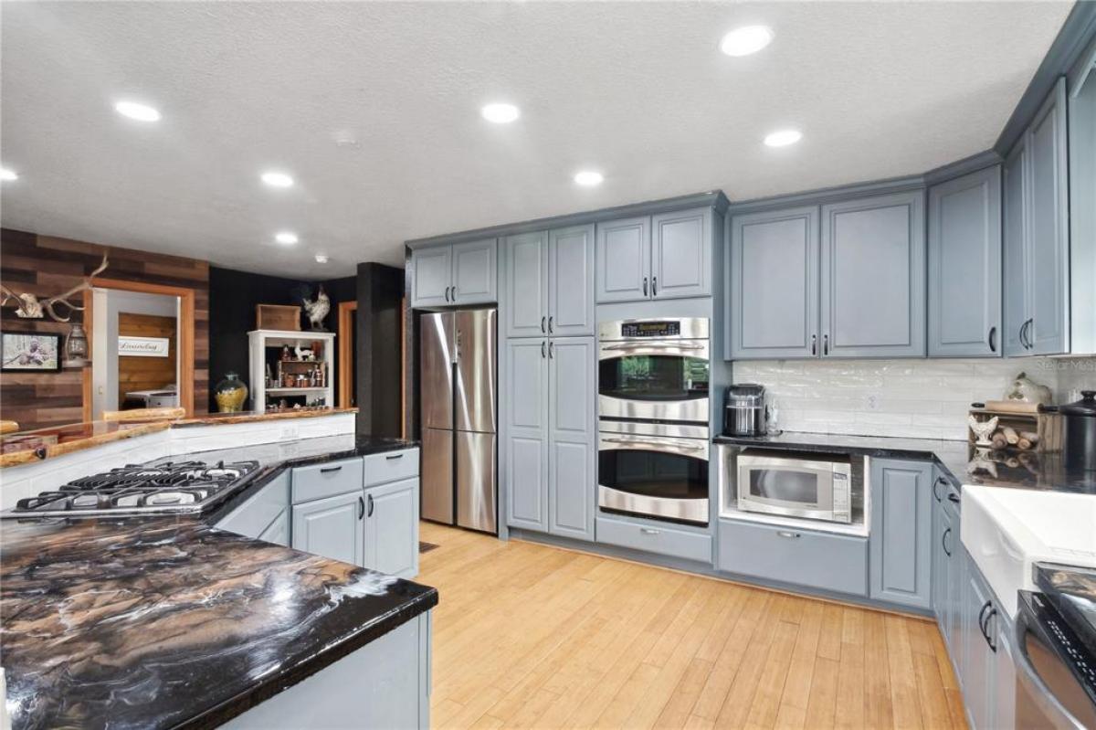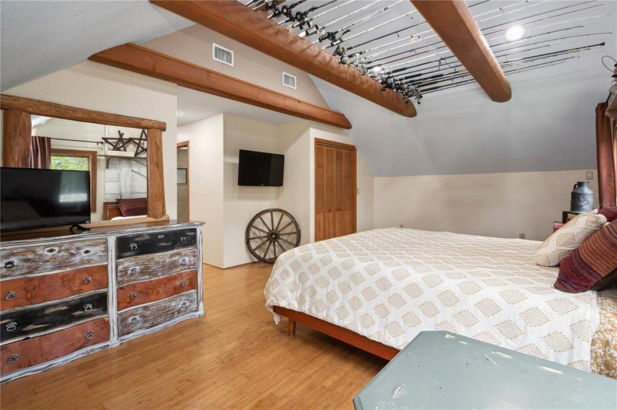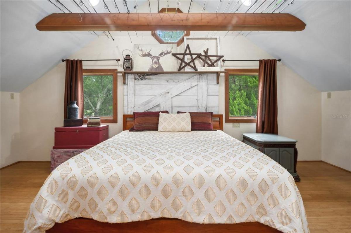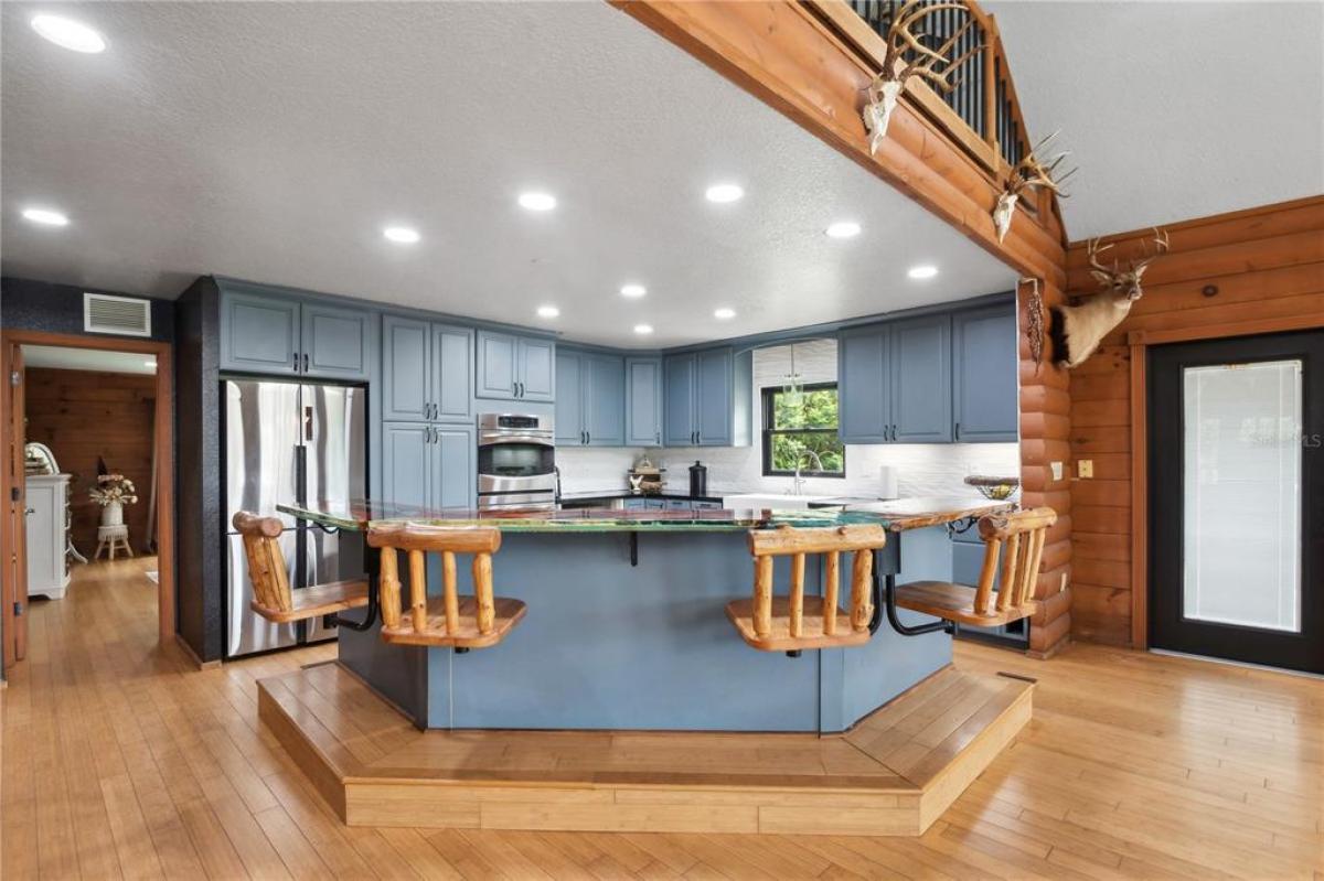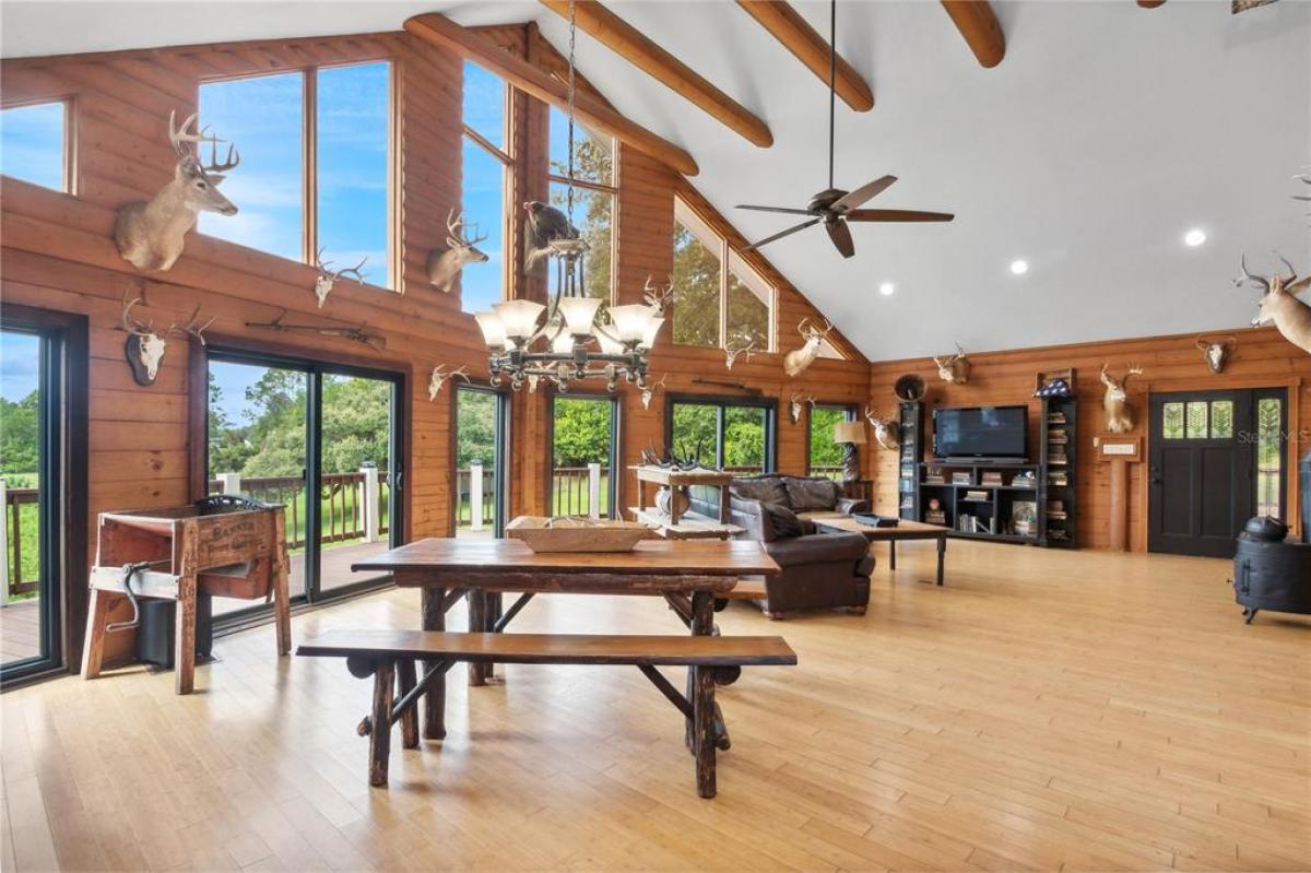 Under contract-accepting backup offers. Near the Ocala forest for hunting, fishing and awesome horseback riding! Stunning custom built 3 story log cabin with wrap around decks sitting on 3 acres with scenic waterfront view. Beautifully done with all the amenities! 4800 heated sq ft with 4 bedrooms, 3 full baths. Multiple Zoned heating and cooling system with 2 units. The flooring is a mix of ceramic tile and gorgeous bamboo wood. Thermal Anderson windows, and recessed lighting everywhere. Main floor has 2 bedrooms, bath with laundry, great room, and custom built island. Access to the wrap around deck is accessible through BRAND NEW custom sliding doors off the great room. Kitchen is equipped with wood cabinets with self closing drawers, gas cooktop, dual electric ovens, under the counter lighting and more. The 700 sq ft Master suite with loft is on the 3rd floor overlooking the stunning main floor and has a bathroom with a large walk-in shower, whirlpool tub, two sinks and skylight. The walk out basement has a great room, kitchenette, full bath and large bedroom. Let your imagination run wild with the 2 huge bonus rooms down there! Could be an in-law suite, rental income, hunting/fishing lodge or just space for your large family activities!