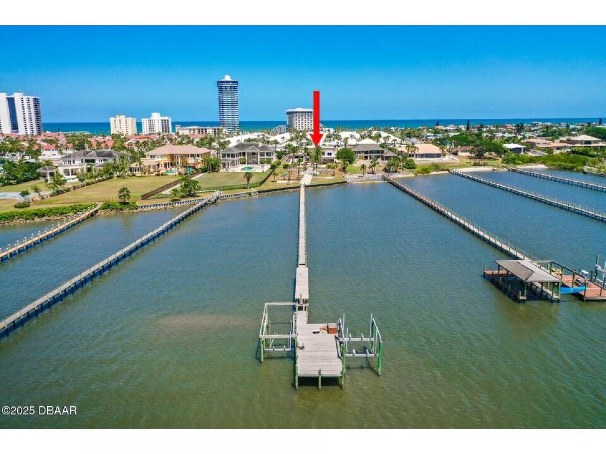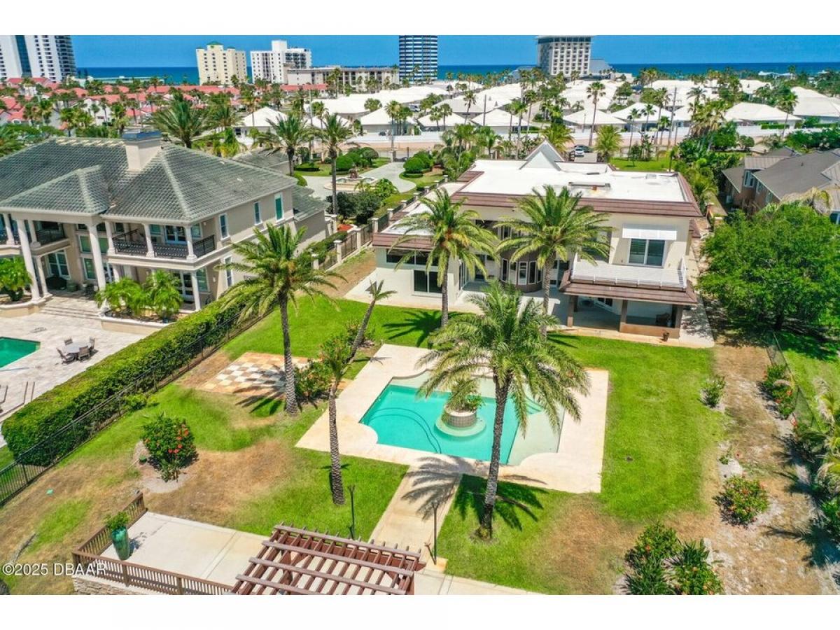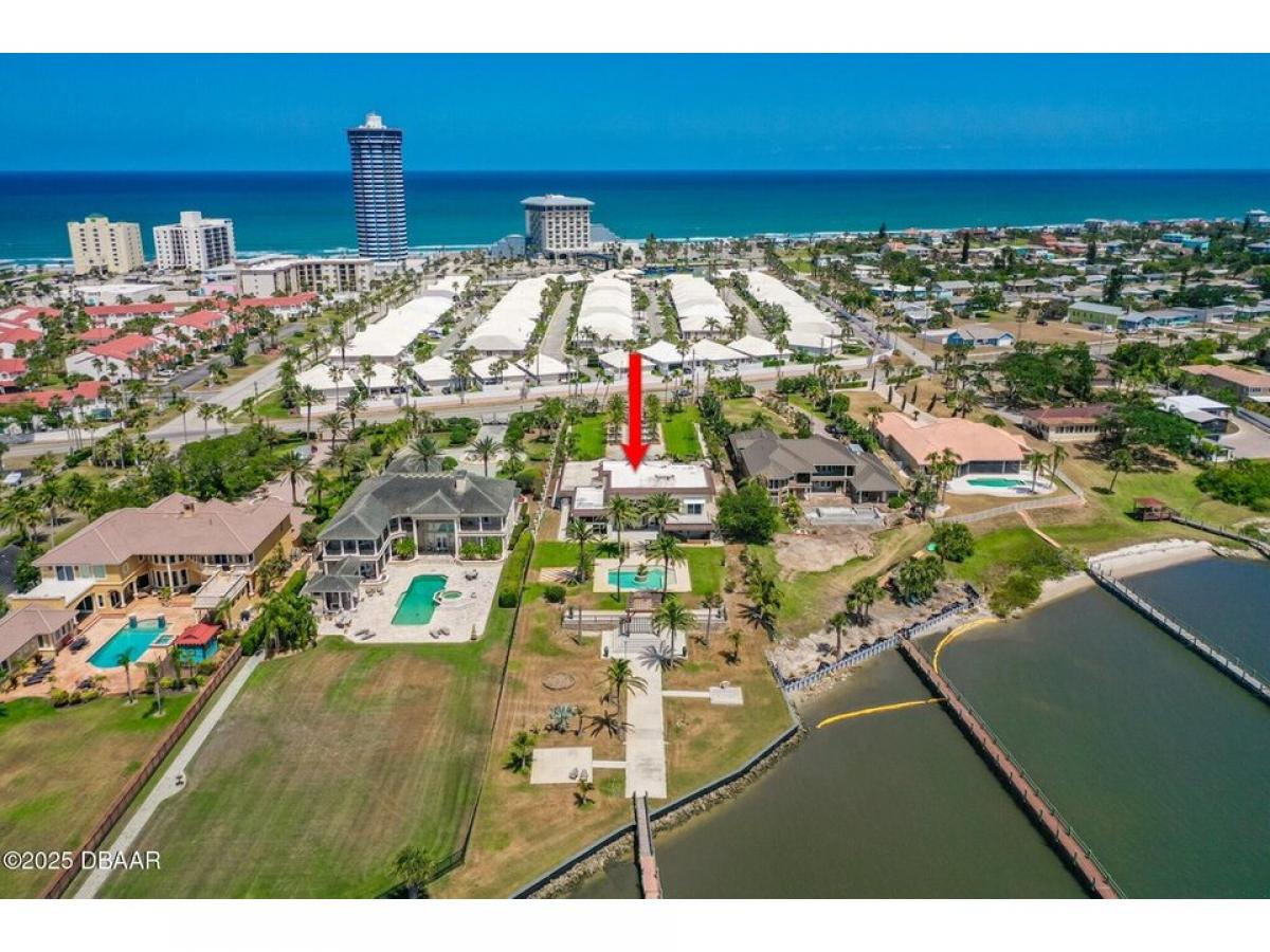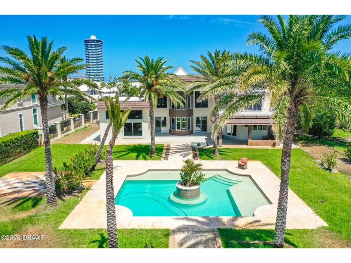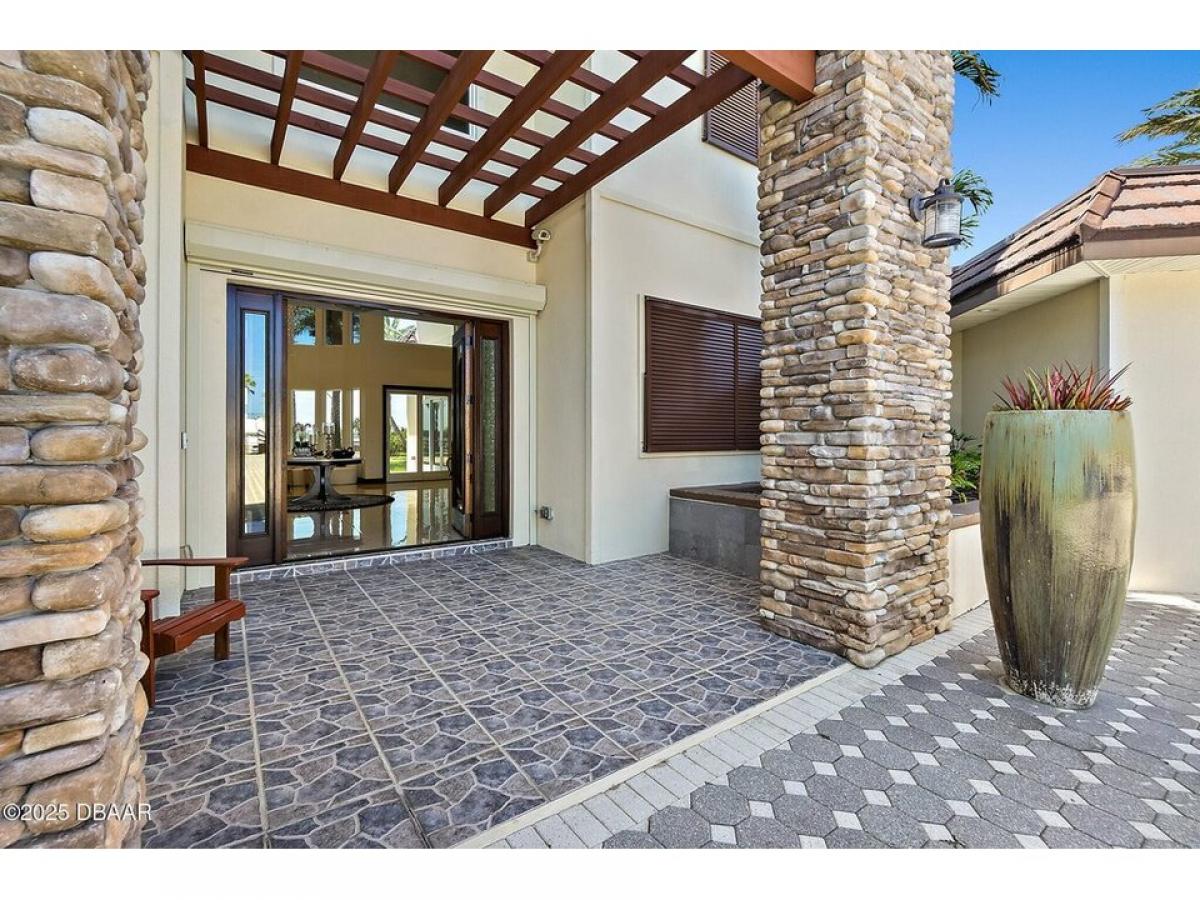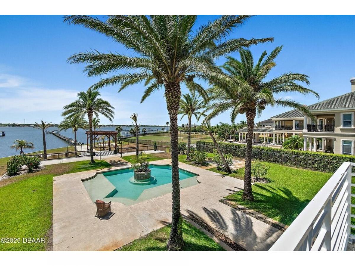 Introducing a stunning gated beachside riverfront estate, set on an expansive 1.4 acres that evoke a park-like atmosphere, located just minutes from the beautiful shores of Daytona Beach. This custom-built luxury home boasts an impressive 4,985 square feet of living space, featuring three spacious bedrooms, three full bathrooms, and two half baths, along with an in-law suite, an office, and a versatile loft that#039;s perfect for family life and entertaining. Additionally, the property includes a generous three-car garage totaling 1,152 square feet. With 115 feet of waterfront access, complete with a deep-water dock, this estate offers an exceptional blend of comfort and outdoor enjoyment. Showcasing over a million dollars in high-end upgrades. Notably, $250,000 has been dedicated to creating a stunning landscape adorned with palm trees that greatly enhance the property#039;s appeal. As you pass through the elegant gates, you#039;ll be welcomed by a sprawling paver motor court with custom stacked stones pillars and landscaped vignettes. This home boasts a robust concrete block stucco exterior with striking stacked stone pillars all leading to a grand and inviting entrance. Upon entering through the double doors, you#039;re immediately met with a soaring 22-foot ceiling that frames expansive river views, while an exquisite crystal chandelier hangs seamlessly with understated elegance. The first floor is finished with lustrous 36x36 porcelain tiles, adding a touch of modern refinement. Step into the chef inspired kitchen adorned with a contemporary flair highlighted with black wood cabinets, an impressive large custom island, soft close drawers, and wrapped in a double slab stone countertop. Kitchen Aid appliances with two refrigerators, two dishwashers, double oven, warming drawer, and 6-burner gas stove with pot filler. The butler#039;s pantry is tucked away for seamless hosting, equipped with a dishwasher, deep sink with disposal, and large pantry. Right off the kitchen is the spacious living room which features travertine stacked stones all the way up the wall to create a beautiful feature wall with a contemporary fireplace and tv niche. Easy access to the outdoor lanai and pool area, which is ideal for entertaining and offers beautiful river and pool views. Ascend the custom-built Walnut staircase, adorned with wrought iron balusters, to discover the upper level encompassing 1,283 square feet of exquisite living space. The primary bedroom offers breathtaking river views, complete with a private deck that overlooks the pool. The primary bath exudes luxury, featuring a relaxing soaking tub, a walk-in shower with striking tile that elegantly extends up the wall, a separate toilet and bidet in the water closet, and a spacious walk-in closet. Additionally, the upper level includes a stunning loft that provides sweeping views of the expansive intracoastal and a panoramic perspective of the open floor plan below. Downstairs, you#039;ll find a riverfront bedroom that features an in-law suite, complete with a private living room and a well-appointed laundry room, equipped with ample cabinetry and two washing machines and dryers for added convenience. The full bathroom showcases rustic charm, featuring a thoughtful mix of gray, brown, and beige tiles that evoke a farmhouse aesthetic. Additionally, the third bedroom comes with its own ensuite bathroom, ensuring comfort and privacy for guests or family members. This well-designed layout offers both practicality and a warm, inviting atmosphere. Other notable features, Anderson Windows, 4 AC units replaced in 2018, Rinnai commercial grade tankless water heater 2018. The inviting backyard is highlighted by a lovely pool, added in 2017, which is perfect for relaxation or entertaining guests, a large pergola, and walkways in a serene setting. The 2019 sea wall provides added protection and stability, enhancing the property#039;s value and appeal. For those who enjoy boating, this property is an entertainer#039;s dream.