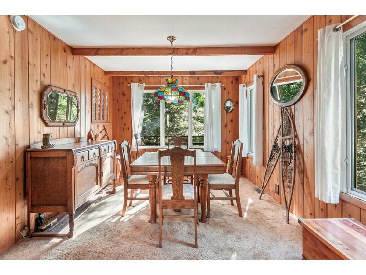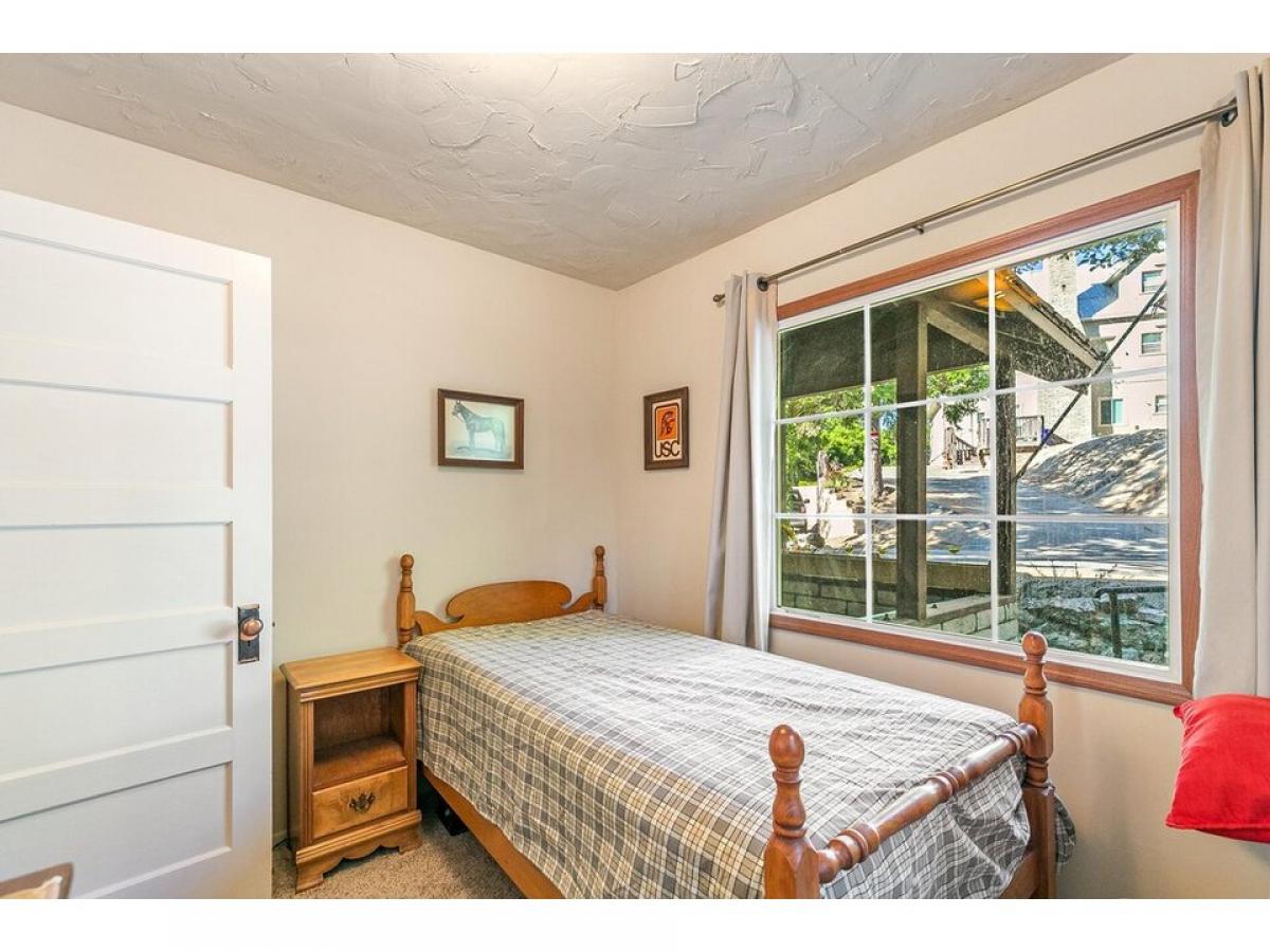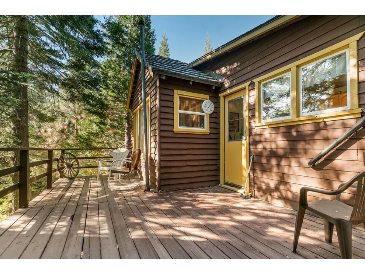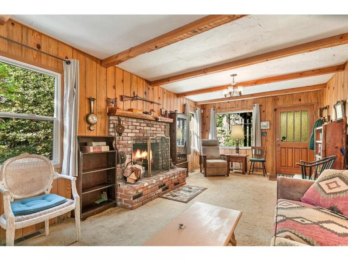 Turnkey Level Entry cabin to call your mountain getaway! Remodeled by the owner through out the years - wood panelling is reclaimed bark beetle wood. From the covered porch, enter into thepaciou ss living room with fireplace. Bedroom, full bath, and spare room to the left. Also enjoy a dining area, kitchen with entry to the back deck. The house has AC, dual pane windows, new FAU, newer paint and decking, roof is aluminum shake. under the house with seperate enterance is ffinished workshop amp; laundry. Plenty of room on either side of the house which sits on appx .23 acre, and shaded with cedars, an apple treee and dogwood included!