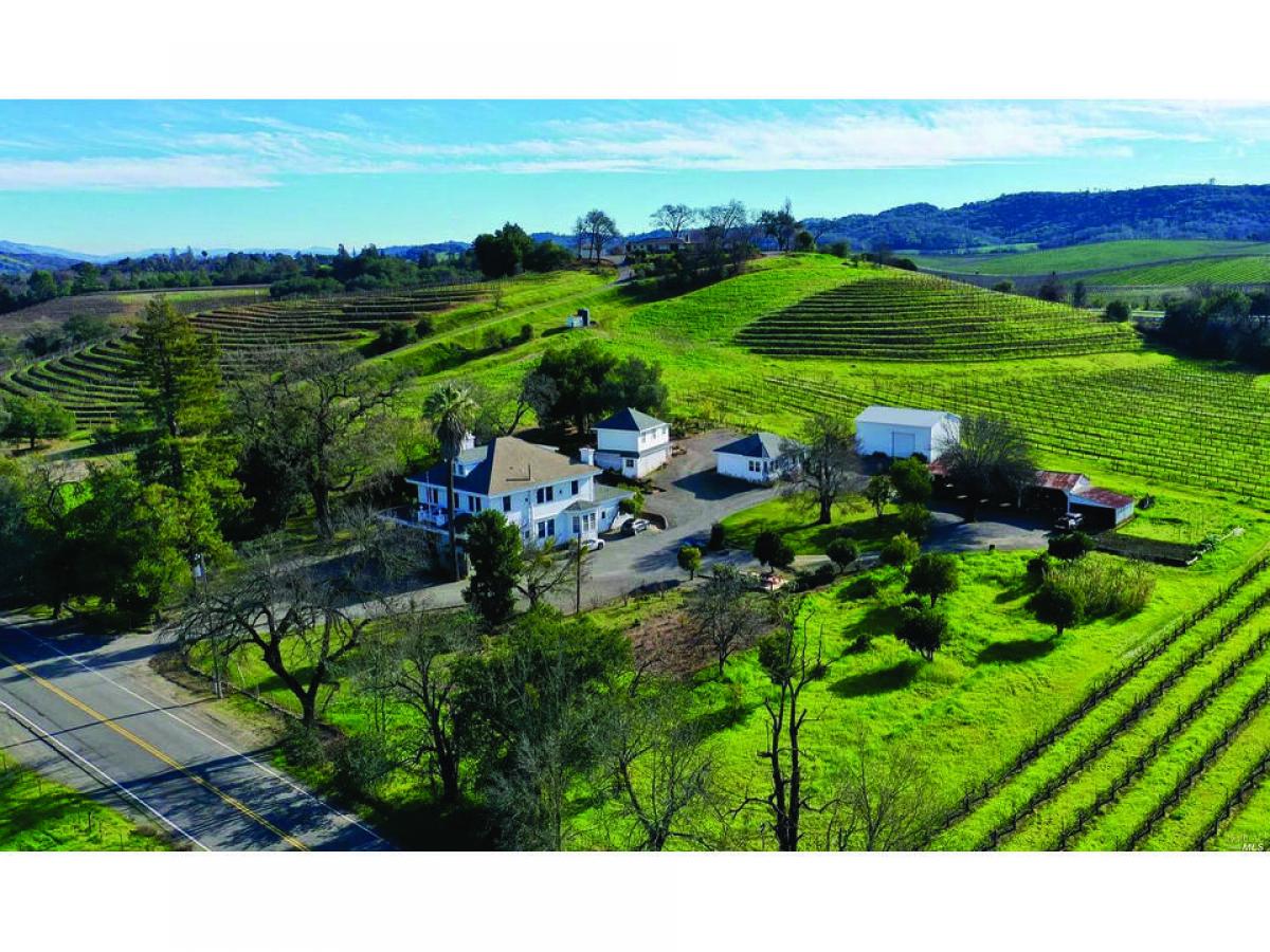 Enchanting 1912 colonial estate residence on 15.81+/- bucolic acres in Northern Sonoma County renowned Alexander Valley Wine Appellation. Fabulous views overlooking vineyards, valley Russian River. This stately residence played a prominent role in the rich history of Asti and the Italian Swiss Colony Winery. It served as the headquarters, living quarters and entertainment center for the winery. Numerous dignitaries and even royalty were entertained there. The property features guest house, caretaker's cottage, equipment storage barn, several outbuildings, two parcels 6.07 9.74 ac, gorgeous gardens and seven acres +/- planted to premium cabernet sauvignon vineyards. Potential for winery. Located on a quiet country lane. Minutes to Geyserville, Cloverdale, Healdsburg and Lake Sonoma.