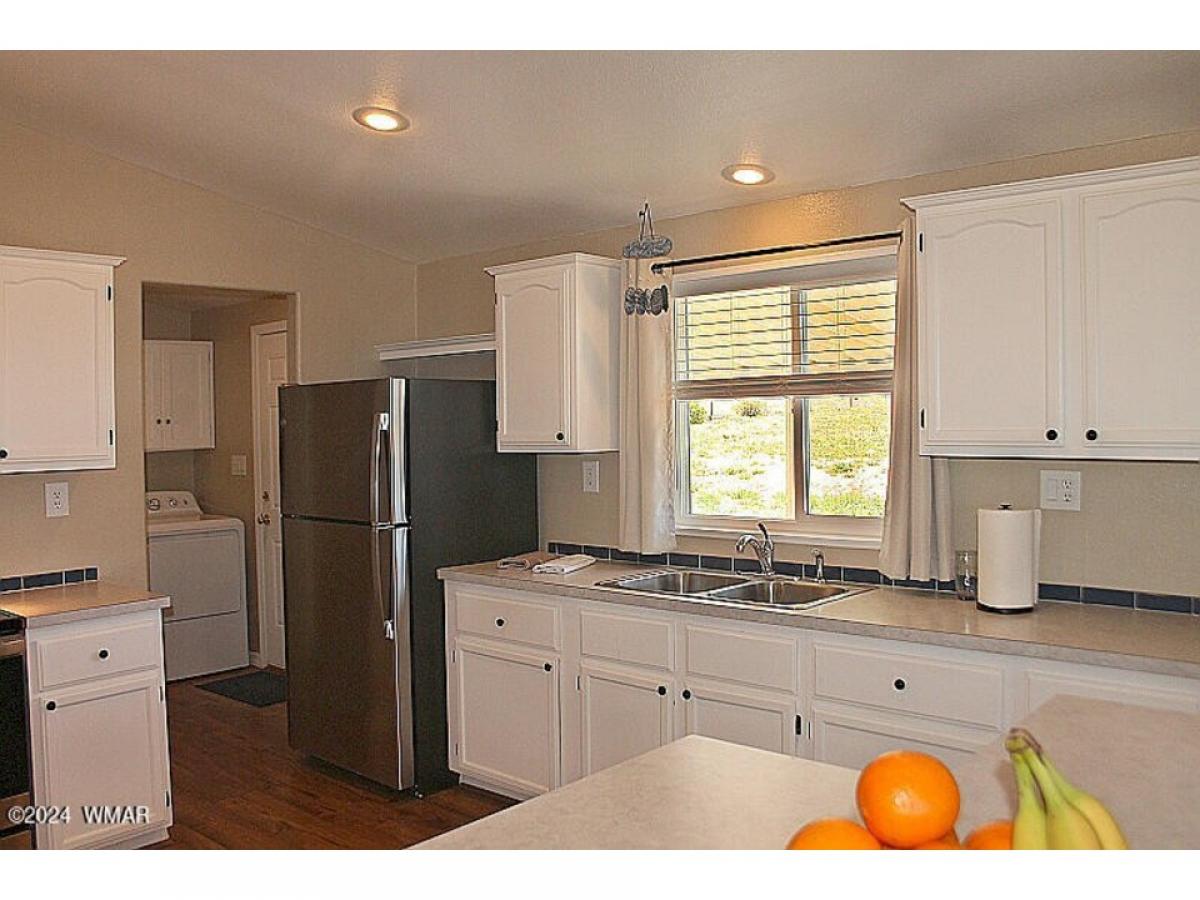 This light and bright 2 bedroom, 2 bath 1,344 sq. foot home is situated on 1.53 acres in the quaint community of Taylor, AZ. The meticulous owners have made many recent improvements to the home such as: New A/C, new wood floors, new roof, new windows, new electric water heater, new appliances (stove, range hood, refrigerator, washer/dryer) new window treatments, new exterior paint, new interior paint, new ceiling fans, new light fixtures in bath. The home has tie downs for easy financing and NO HOA. There is a shared well with one other home, Another bonus is the home is being sold fully furnished. Come check out this lovely home and start enjoying easy country living.