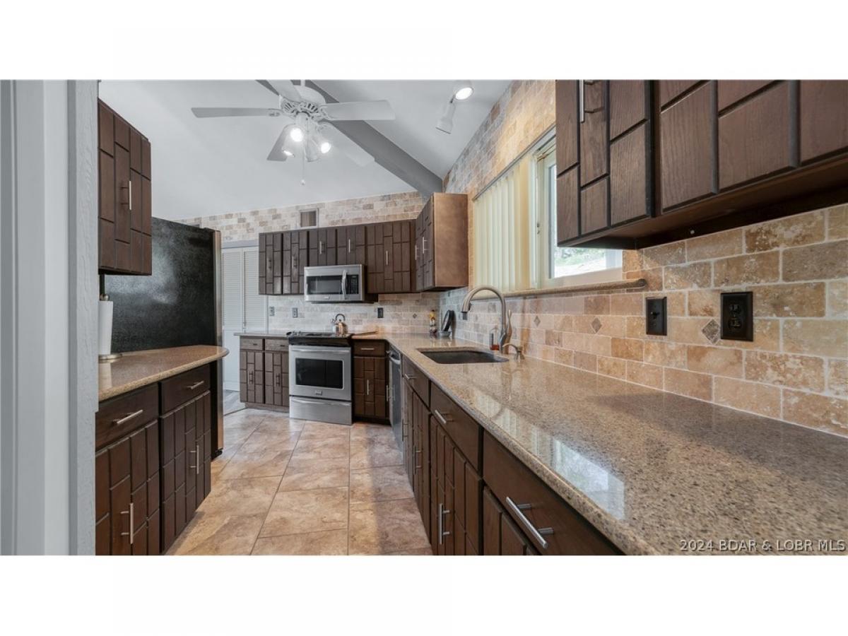 This one has it all! This beautiful lake home is nestled in the coveted Indian Creek Cove and has 220 feet of Lakefront in deep water and has huge views of the 6 MM of the Gravois Arm. It sits on a large secluded lot with lots of privacy and an oversized 3 Car Garage. This 3 Bedroom, 3 Bath home features a Beautiful updated Kitchen, large Living Room, Dining Room, Master Suite, Guest Suite, Guest Bedroom, Laundry Room, Newly remodeled Bathrooms, New Flooring, New Backsplash, Corian Countertops, New Appliances, Fresh Paint, and breathtaking views! The living room has sliders to open up for the warm summer breeze that walk-out to a large wrap-around deck both on upper and lower levels with wonderful views! You can enjoy a cozy fire in the large extra deep fireplace! Do you have boats/jet ski's? It has a large concrete 2 well dock, jet ski lift for 2, swim dock with ladder, water pump, and a storage shed. This home offers the best of both worlds with a little bit of country and a whole lot of Lake in Indian Creek Cove! There is lots of parking spots Plus a 3 car garage! This would make a great Vacation Rental or Full time home! Seller is Motivated! Bring Offers!