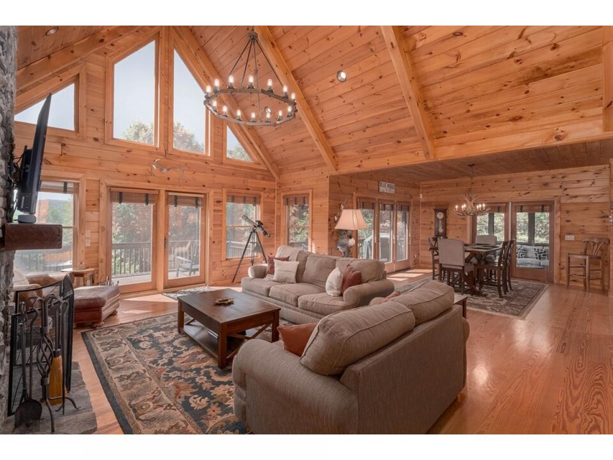 Experience mountain living with lots of privacy and nature on 11.5 secluded acres next to 50 acres of US Forest Service land in the Aska Adventure Area. This well-kept home has amazing long-range views and beautiful surroundings. The house has an open and spacious floor plan. On the main level, there's a primary bedroom and a cozy living room with a stone fireplace. High ceilings make it feel even bigger, and the large kitchen has an island great for cooking and hanging out. Big windows in the great room let in lots of light and offer stunning views. There are also multiple outdoor spaces, including upper and lower decks and a screened porch, perfect for family gatherings and entertaining. The lower level has two large bedrooms with great views and a second family room with a wet bar. There's also a small outbuilding that has been turned into an observatory with a retractable roof for stargazing. Recent updates include a new HVAC system installed in March 2024, smart thermostats, a Ring doorbell, security cameras, landscaping lights, and an automatic front door lock. The water heater was replaced in 2022, and the roof was completely replaced in December 2021. This home is ready to offer you a comfortable and peaceful mountain lifestyle.
