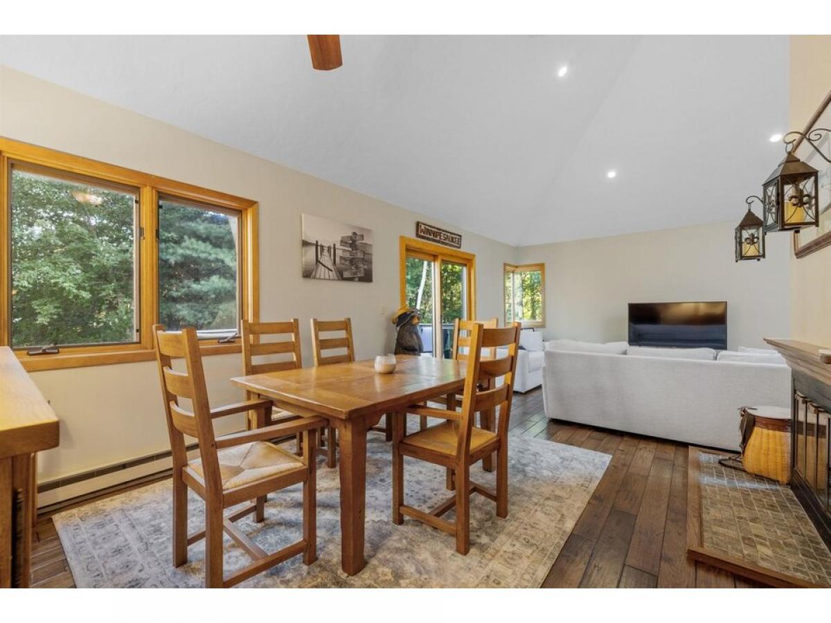 SAMOSET RARE UPDATED 3BR + Loft townhouse. One of the largest styles at the Samoset. Samoset is a Lake Winnipesaukee waterfront community with docks, moorings, pools and a beach. Relax in your open concept family/dining room with a wood burning fireplace. Living/dining area with soaring ceilings opens onto a deck with wooded privacy. Stunning updated kitchen with coffee bar, granite countertops and stainless appliances. Hardwood flooring. Attached primary suite with full bath amp; cathedral ceilings offers space and privacy. Two more bedrooms, with an additional loft (could be a 4th sleeping area) will allow enough space for family and your guests. Lower level opens onto a screened porch, allowing you to have an another living/dining area in a spectacular outdoor space. Outside ski/storage closets. Basement storage area. Short walk to the beach and your boat! Your new townhouse is steps away from the waterfront with docks, moorings, two levels of a private beach area (beach chairs provided) waterfront patios/grill areas, two pools (one overlooks the lake), fire pit and kayak area, several tennis and pickleball courts, and a basketball and volleyball area. Samoset is conveniently located only minutes from Gunstock, Mt. Major and the major Lakes Region Attractions. Get in before summer! SF is approximate and includes loft area.