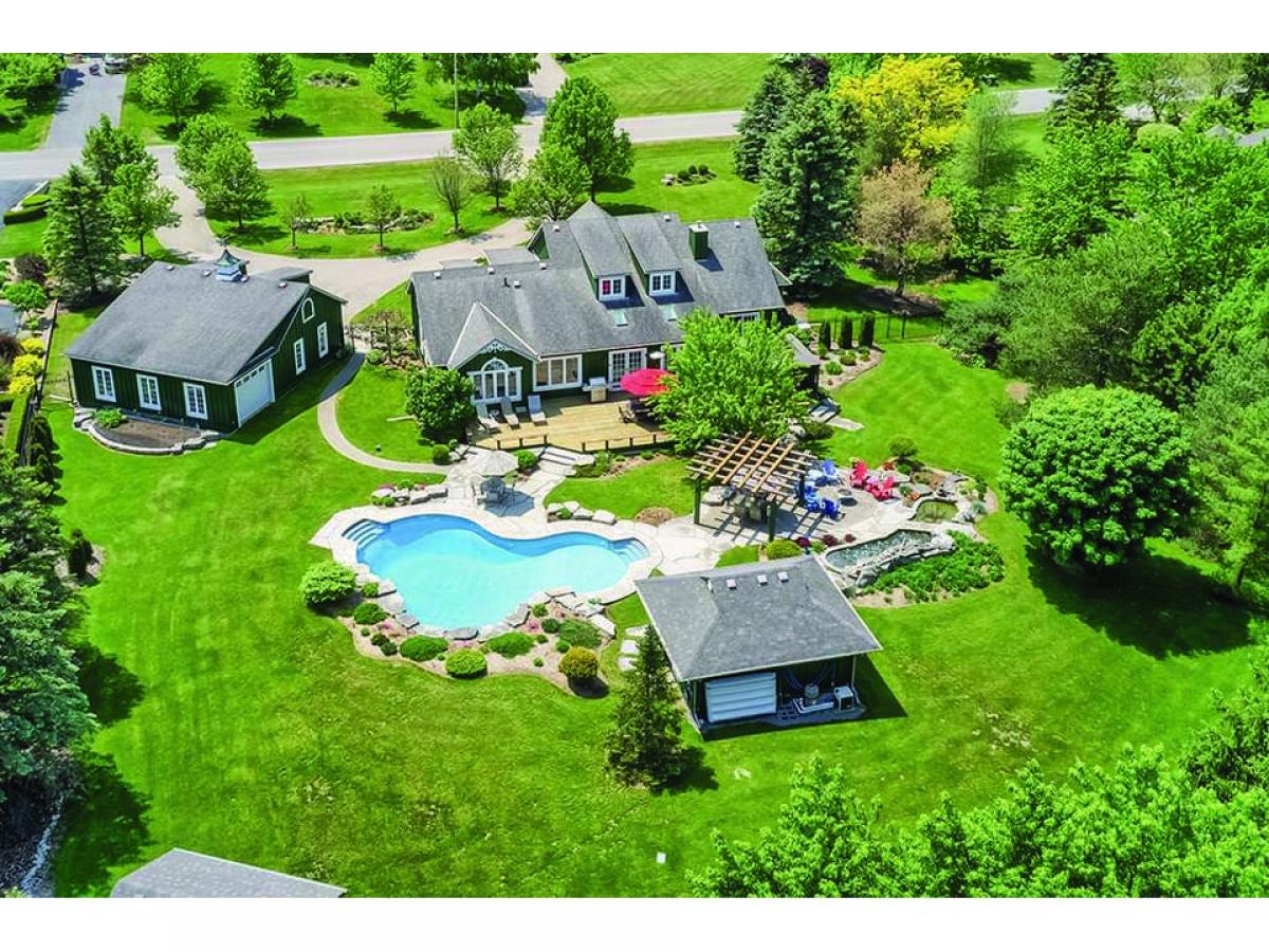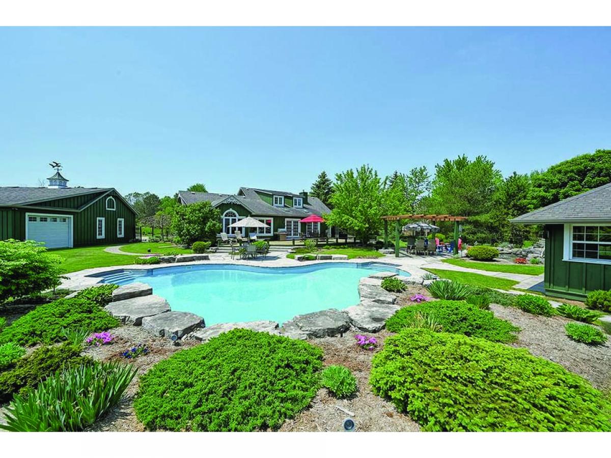 Tucked into a quiet family neighbourhood in Freelton lies a truly magnificent rural paradise, thatâs just a stoneâs throw to city amenities! Imagine sipping iced tea on the covered front porch while you watch the kids ride bikes and play hockey. No need for Muskoka when youâve got this slice of heaven and all it offers four seasons long. Driving up to this stunning board and batten style custom-built home evokes a simpler time, a place to entertain, relax and enjoy. This vast bungalow was created by Van Hoeve Homes and is an engineering masterpiece with its unique 19-foot vaulted ceiling and open-concept layout. The floor plan flows seamlessly from the primary bedroom wing through to the heart of the home, the family room. A wonderful place for the family to gather and enjoy the natural stone fireplace while gazing out at the beautifully landscaped vistas that the backyard paradise presents. The one-level layout allows for easy transition from principal living areas, to outside onto the rear deck and all that the backyard has to offer. A generous dining room and three bedrooms make this the perfect home for growing families or empty nesters. The second bedroom offers a walk-out to the deck and cabana, perfect for guests! The third bedroom makes the perfect home office or den, with bright picture windows that draw your view over the vast front lawn and gardens. Over 5,267 square feet of luxury living on both levels with no expense spared. Top-of-the-line appliances, all chosen to compliment the finely finished gourmet kitchens, both on the main level and in the lower level where the Summer kitchen will allow for catering of large parties and gatherings. Everything you need is all on the main level, with the fully finished lower level creating more bonus areas to enjoy! Open concept games room to enjoy billiards and a large recreation room for movie night! If youâre not impressed enough already, your breath will be taken away with the fully fenced 1.27-acre backyard! Every corner of this private property has been meticulously planned with areas for all to enjoy! The back deck stretches from one end of the home to the other and sets the scene. On the deck is a gazebo, reminiscent of a Lanai, with four sides screened in with sliding doors to manipulate open or closed to capture the breeze! Meandering natural stone paths lead through a trellised dining area down to the pond that is home to goldfish, who enjoy the waterfall gently falling from the rockery ledges. Natureâs perfect touch! Continue to stroll down to the Muskoka shed where the unique wall/ door system either opens up completely for summer sunshine or closes in for cozy wood stove fires in the winter. The award-winning Pioneer pool is the centrepiece of the property! Lagoon-shaped, with easy walk-in and walk-out stairs, this saltwater beauty will have you floating all summer long. Pop out to enjoy a catered lunch in the pool cabana, with lounging areas and a change room! When itâs time to garden this multi-Trillium Award-winning garden, you will love the ease and simplicity of the full garden shed! Drive right in on your lawn tractor and have everything you need at your fingertips. Storage galore and organization are key to keeping this paradise perfectly groomed. For the car aficionados, the detached garage will see you spending many happy hours with room to park and work on up to four cars! The kitchen area is easily accessed off one of two secondary garage doors to bring in bikes and more toys! Park the RV or boat at the side of the garage on the well-planned turf stone surface. Truly the full package with something for every family memberâs unique tastes and hobbies, this home will become a destination and a source of peace and comfort for years to come.