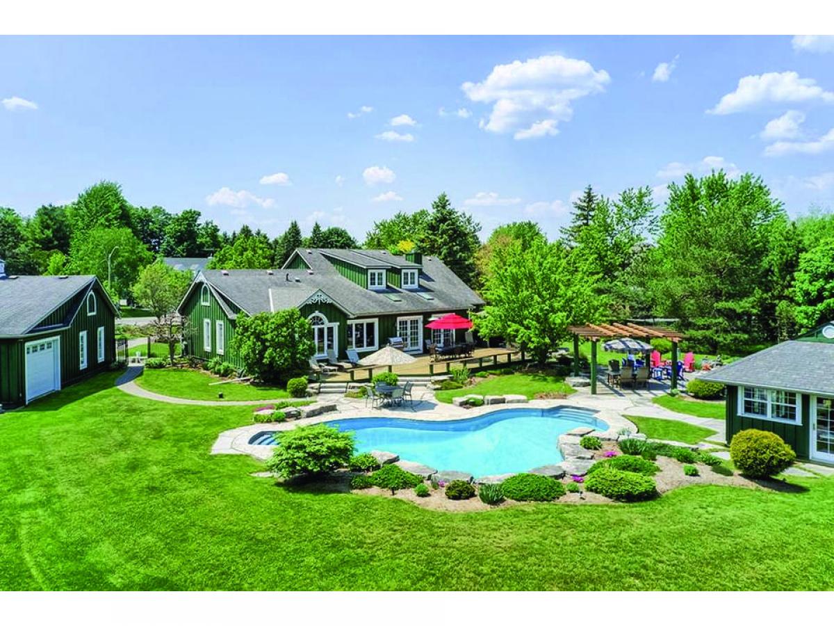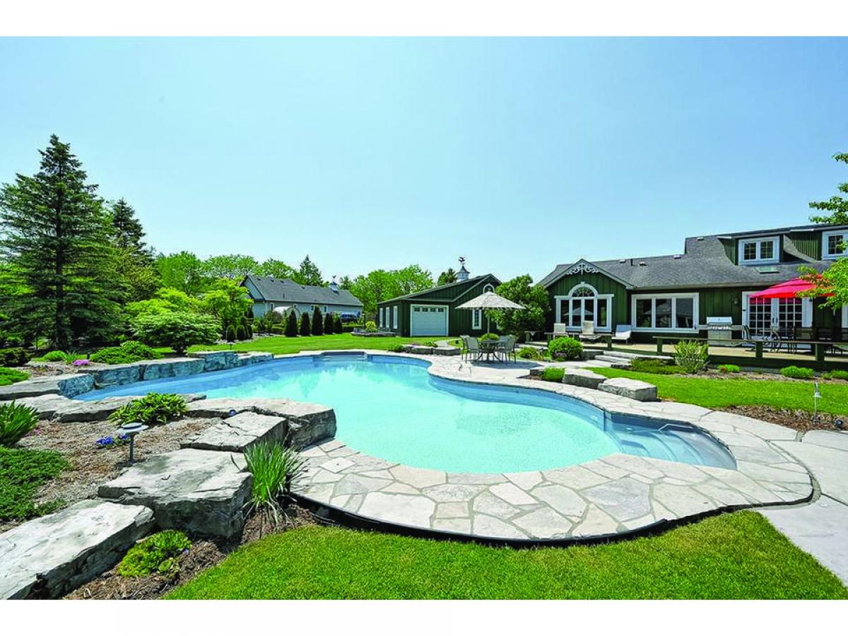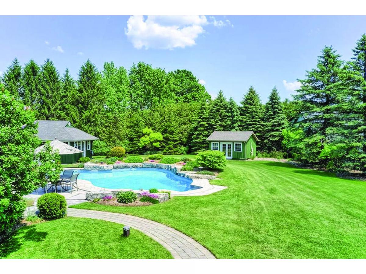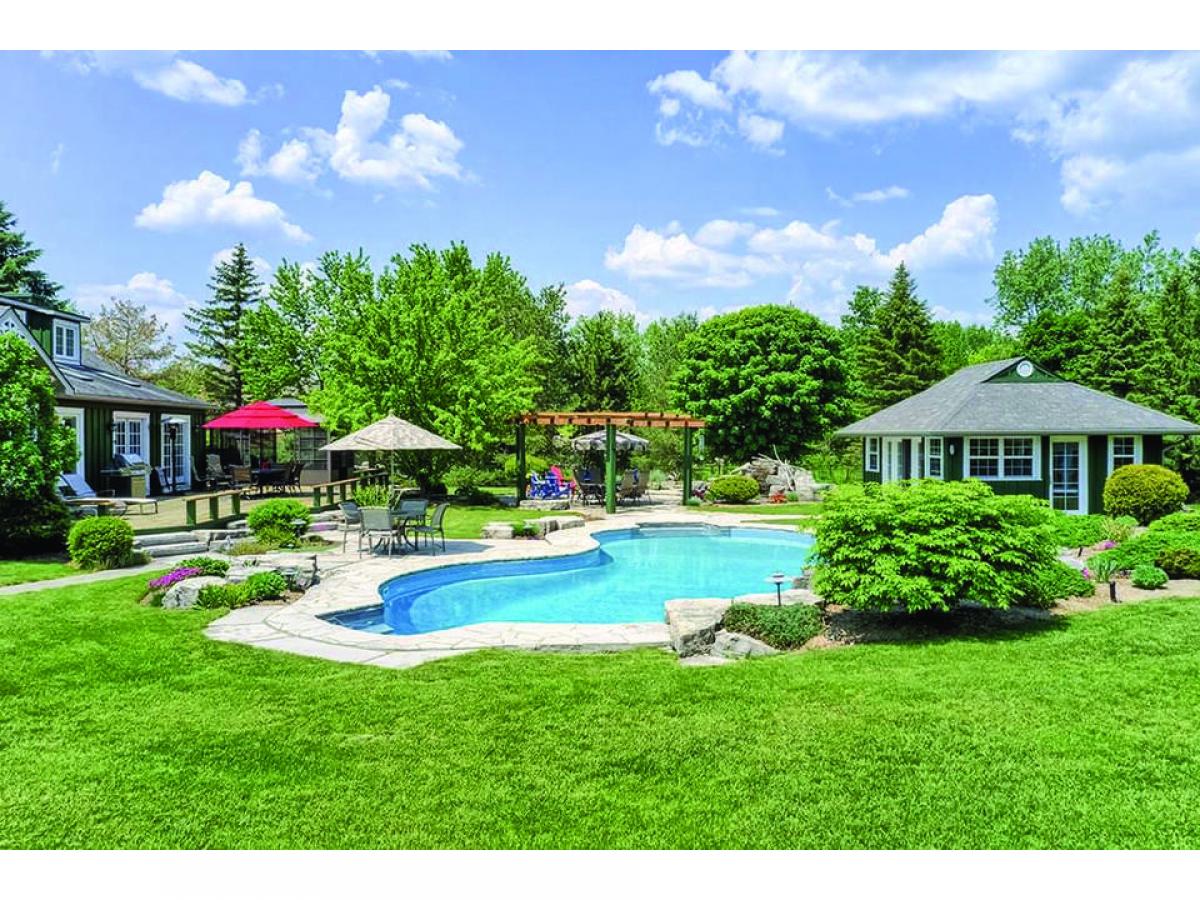 Tucked into a quiet family neighbourhood in Freelton lies a truly magnificent rural paradise, thatâs just a stoneâs throw to city amenities! Imagine sipping iced tea on the covered front porch while you watch the kids ride bikes and play hockey. No need for Muskoka when youâve got this slice of heaven and all it offers four seasons long. Driving up to this stunning board and batten style custom-built home evokes a simpler time, a place to entertain, relax and enjoy. This vast bungalow was created by Van Hoeve Homes and is an engineering masterpiece with its unique 19-foot vaulted ceiling and open-concept layout. The floor plan flows seamlessly from the primary bedroom wing through to the heart of the home, the family room. A wonderful place for the family to gather and enjoy the natural stone fireplace while gazing out at the beautifully landscaped vistas that the backyard paradise presents. The one-level layout allows for easy transition from principal living areas, to outside onto the rear deck and all that the backyard has to offer. A generous dining room and three bedrooms make this the perfect home for growing families or empty nesters. The second bedroom offers a walk-out to the deck and cabana, perfect for guests! The third bedroom makes the perfect home office or den, with bright picture windows that draw your view over the vast front lawn and gardens. Over 5,267 square feet of luxury living on both levels with no expense spared. Top-of-the-line appliances, all chosen to compliment the finely finished gourmet kitchens, both on the main level and in the lower level where the Summer kitchen will allow for catering of large parties and gatherings. Everything you need is all on the main level, with the fully finished lower level creating more bonus areas to enjoy! Open concept games room to enjoy billiards and a large recreation room for movie night! If youâre not impressed enough already, your breath will be taken away with the fully fenced 1.27-acre backyard! Every corner of this private property has been meticulously planned with areas for all to enjoy! The back deck stretches from one end of the home to the other and sets the scene. On the deck is a gazebo, reminiscent of a Lanai, with four sides screened in with sliding doors to manipulate open or closed to capture the breeze! Meandering natural stone paths lead through a trellised dining area down to the pond that is home to goldfish, who enjoy the waterfall gently falling from the rockery ledges. Natureâs perfect touch! Continue to stroll down to the Muskoka shed where the unique wall/ door system either opens up completely for summer sunshine or closes in for cozy wood stove fires in the winter. The award-winning Pioneer pool is the centrepiece of the property! Lagoon-shaped, with easy walk-in and walk-out stairs, this saltwater beauty will have you floating all summer long. Pop out to enjoy a catered lunch in the pool cabana, with lounging areas and a change room! When itâs time to garden this multi-Trillium Award-winning garden, you will love the ease and simplicity of the full garden shed! Drive right in on your lawn tractor and have everything you need at your fingertips. Storage galore and organization are key to keeping this paradise perfectly groomed. For the car aficionados, the detached garage will see you spending many happy hours with room to park and work on up to four cars! The kitchen area is easily accessed off one of two secondary garage doors to bring in bikes and more toys! Park the RV or boat at the side of the garage on the well-planned turf stone surface. Truly the full package with something for every family memberâs unique tastes and hobbies, this home will become a destination and a source of peace and comfort for years to come.