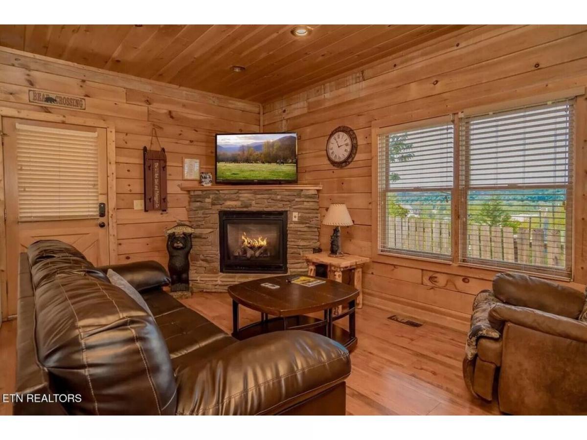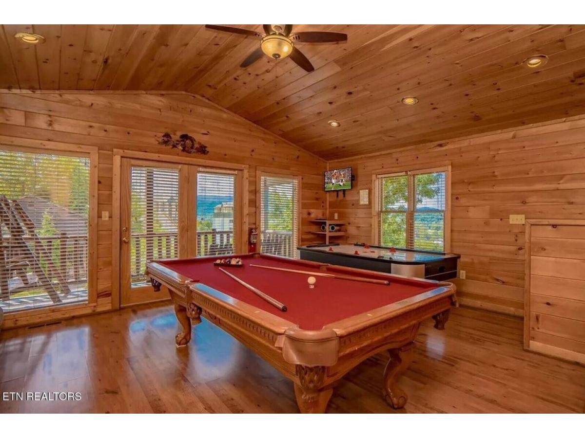Right in the heart of Pigeon Forge, across from the Titanic- the perfect extra large 2 bedroom true log cabin with a spectacular view of Pigeon Forge and the Mountains that surround her! Two king suites with their own private baths, a luxurious game room with pool table and more! Washer and Dryer- Fully stocked kitchen, everything in the cabin conveys! Decks that allow you to enjoy views from above Pigeon Forge- a log swing and a hot tub make it a perfect place to relax and make memories! Located perfectly at the top back of the culdesac. This sweet little resort has a community pool. You are within walking distance of all the attractions and restaurants of Pigeon Forge. Maintained well and just moved to a favorite rental program, Amazing Views the cabins name is #039;#039;Pigeon Forge Getaway#039;#039;.