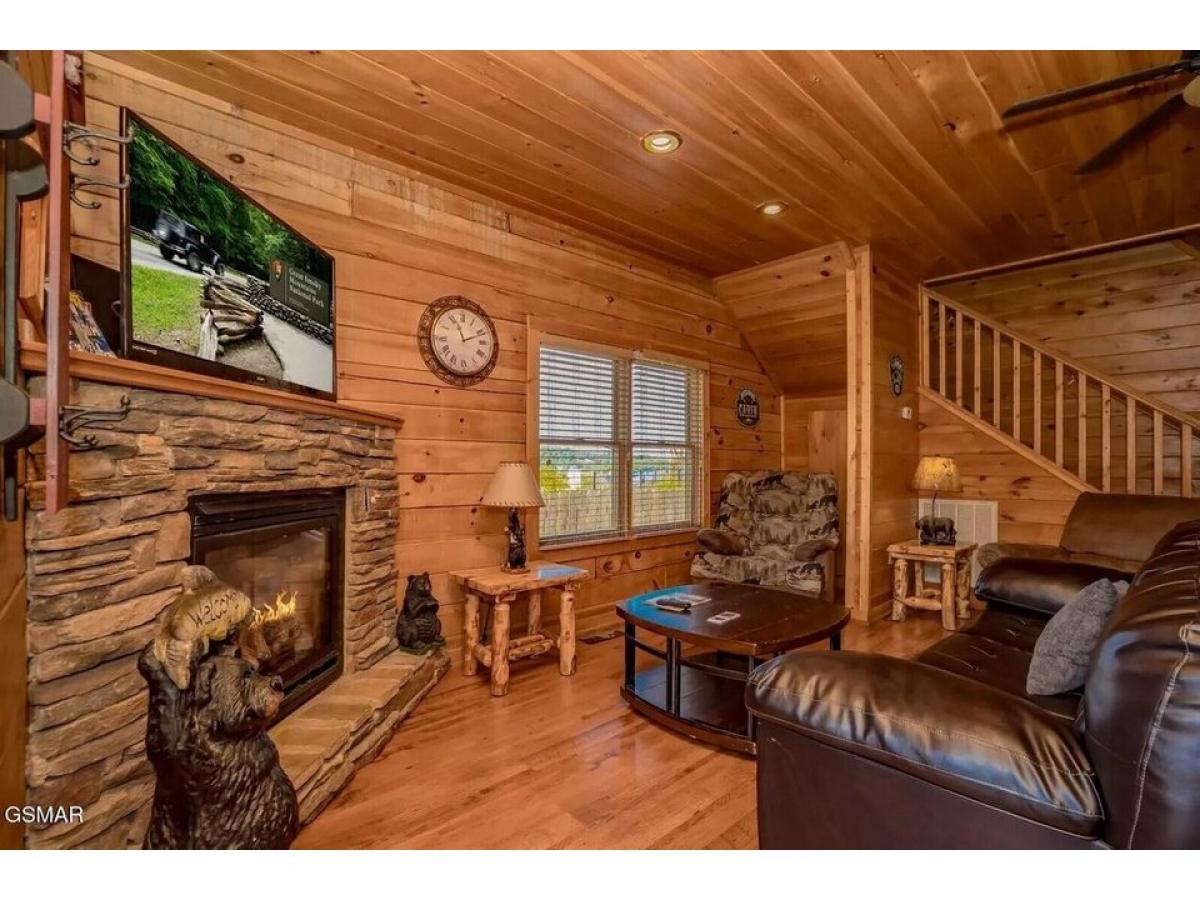 Right in the heart of Pigeon Forge, across from the Titanic- the perfect extra large 2 bedroom true log cabin with a spectacular view of Pigeon Forge and the Mountains that surround her! Two king suites with their own private baths, a luxurious game room with pool table and more! Washer and Dryer- Fully stocked kitchen, everything in the cabin conveys! Decks that allow you to enjoy views from above Pigeon Forge- a log swing and a hot tub make it a perfect place to relax and make memories! Located perfectly at the top back of the culdesac. This sweet little resort has a community pool. You are within walking distance of all the attractions and restaurants of Pigeon Forge. Maintained well and just moved to a favorite rental program, Amazing Views the cabins name is #039;#039;Pigeon Forge Getaway#039;#039;.