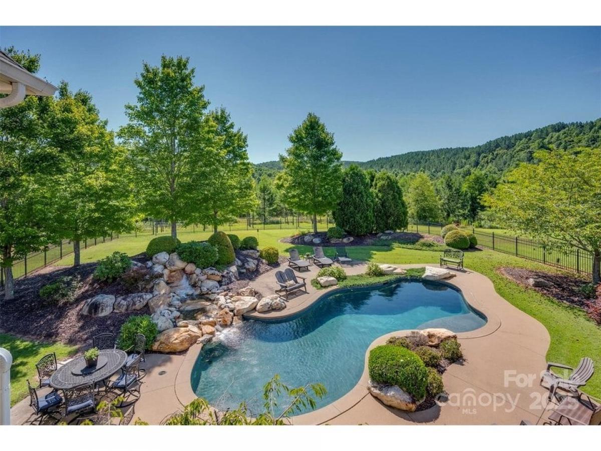 This special property was built for the seller in 2007 and has been lovingly maintained over the years. It is located 5 miles from Rutherfordton and 10 miles from Lake Lure. On the main level you will find the spacious primary bedroom with a fireplace, his and her closets, and a large en suite bathroom with a garden tub and shower. On the main level is the kitchen with ample cabinets and storage open to the den area with doors leading out to the covered porch. Two study/office areas, a large laundry room, dining room and breakfast nook are also on the main level. A mud room leads to the garage. Upstairs are 3 bedrooms with two of the bedrooms sharing a bathroom. In the basement, there is a kitchen and den area with a fireplace, bathroom and an extra bedroom. French doors lead to the beautiful saltwater pool area along with a custom fireplace for those cool fall nights. Majestic views can be seen from the 27.85 acres.