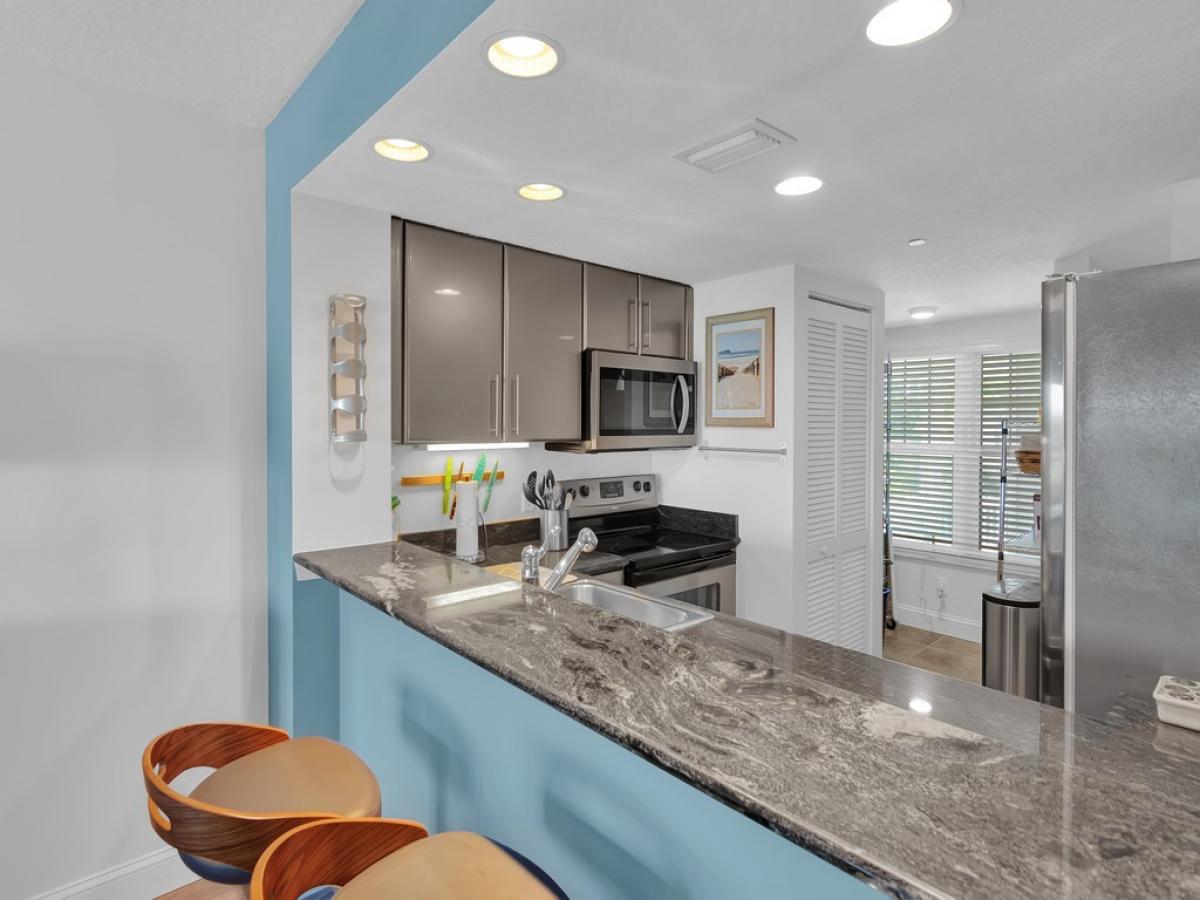Available for the 2026 Season for 1 Month, January! Desirable Gables Community on Ocean Drive. Enjoy being close to all areas of Shopping, Dining and Saturdays Farmers Market. Enjoy the Sunrise Daily and Enjoy the Tranquil Breezes off the Atlantic Ocean in a stylish 1st floor Gables 2/2 oceanside Condo unit with an expansive oceanfront patio offers beautiful ocean views and easy access to beach and heated pool. Modern decor includes upgraded kitchen featuring custom granite, S/S appliances and cabinetry. Totally Enjoy the resort lifestyle right in the heart of Vero's seaside village!