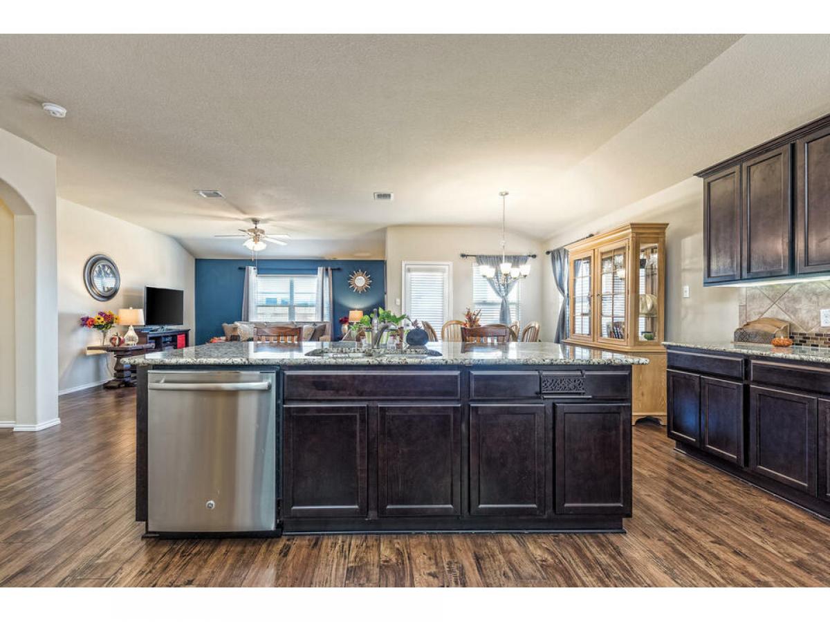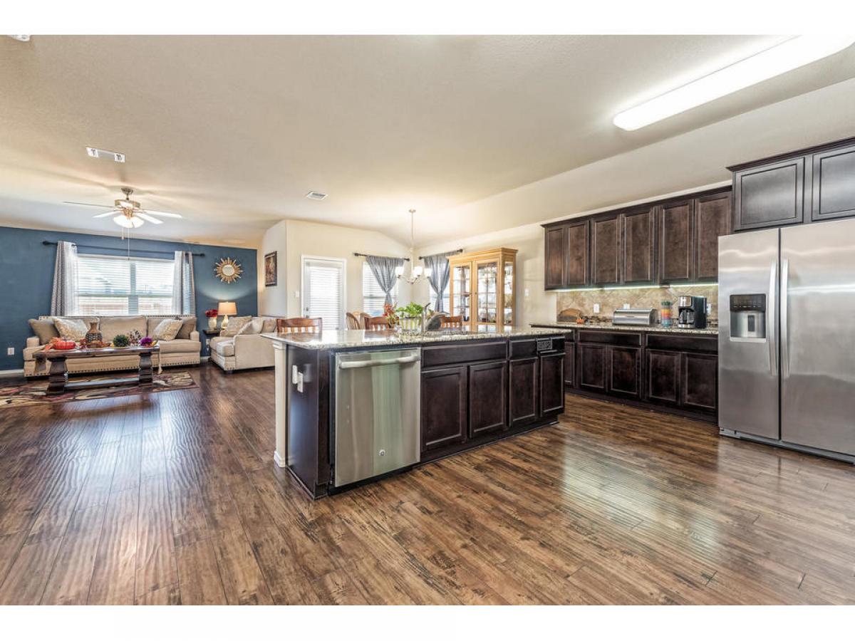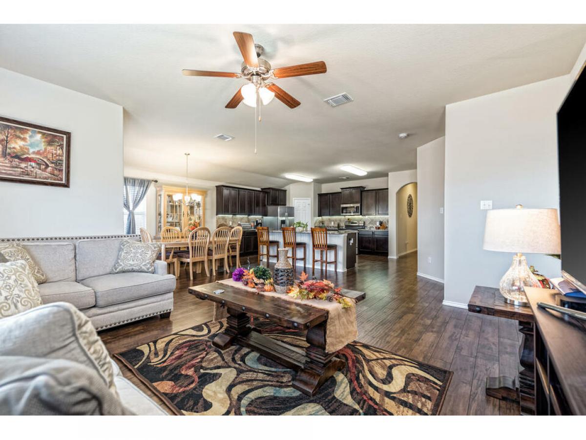 Very well maintained classic residence with a great open living/kitchen/dining plan. This home offers window treatments, full sprinkler front and back, a great location at the curve of the "horse shoe", laminate flooring throughout the living area, tile in the bathrooms and laundry (separate room) close to the master, carpet in the bedrooms, stained kitchen cabinets with granite counters, "under" cabinet kitchen lights added, the stove and dishwasher were an upgrade from the builders quality.