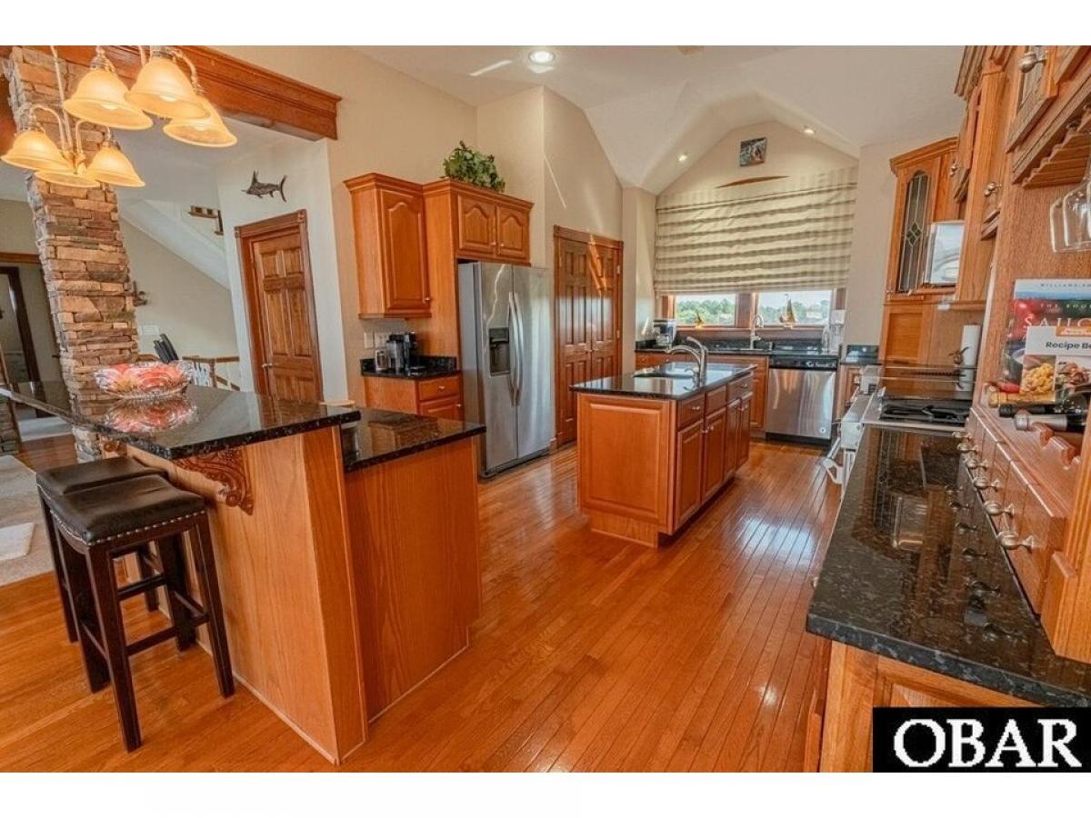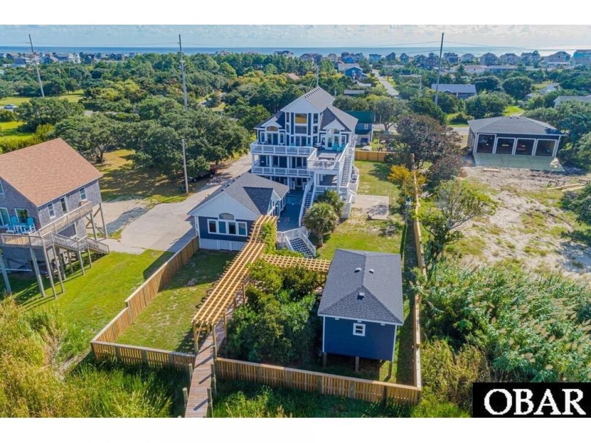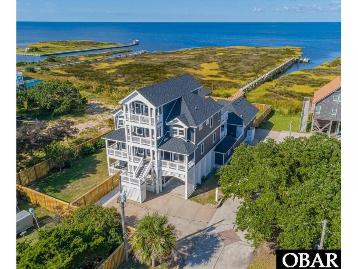 This exquisite SOUNDFRONT property in Salvo is truly ONE OF A KIND. Boasting INCREDIBLE sound VIEWS with stellar unobstructed sunset vistas -- this unique estate is sure to make all of your Hatteras Island property dreams come true. Set on a large 1+ acre lot with a fully fenced in yard for privacy and pets, 5 true bedrooms + bonus room with bunk beds, 8 full/1 half bathrooms in the house, elevator to all levels, detached gym + spa with a full bath and heated lap pool, concrete salt water pool (resurfaced in 2019), detached work shop, separate motor/mower shed, and 650#039; pier to the sound with boat and jet ski slip and electric amp; water + flow-through decking...what more could you ask for? Level 1 features a secondary living space (which could be used as a game room) with kitchenette + full-sized refrigerator, gas fireplace with stone surround, Aroma 360 system for the HVAC, access to the pool/grilling area, and 1 bedroom/bath. Level 2 has 3 bedrooms, each w/ private bathrooms, a bonus room with 2 sets of bunk beds, spacious laundry room, an additional full bath, access to the mid-level covered back and front decks, and built-in cabinetry with a granite counter for at-home working/office. Level 3 houses the main living spaces boasting jaw-dropping sound views, floor-to-ceiling windows with remote controlled blinds, gourmet kitchen with granite countertops, gas and electric stoves each w/ an oven, large pantry, dining area, living room with gas fireplace and floor to ceiling stone surround, 1/2 bath, master bedroom suite with walk-in closet, private tiled bath with jetted jacuzzi tub + walk-in shower + double sinks, and access to the spacious and newly constructed soundside sun deck with new (2020) hot tub with lighting and water features. A 4th level loft has the best views in the house (sound and ocean) and provides additional space and access to easy attic storage. The pool area features a tiled space for grilling/food prep/dining and an outside pool bathroom (showeramp; toilet). The soundside detached gym has all new equipment, a wall of windows along the sound, full bath, and heated spa/lap pool. Beyond the gym, step through a whimsical trellis with 20-year old wisteria vine to the climatized storage building/workshop -- or continue on down the pier to the sound and boat dock. The entire home and gym are wired for surround sound. All decks and stairs have been replaced with Trex/Azek composite materials, all vinyl railings and gates throughout, the roof on all buildings has been replaced since 2019 with architectural shingles, 6 new HVAC units, and all buildings have been freshly painted since 2019. No small detail has been overlooked -- schedule your viewing today to see it for yourself!!