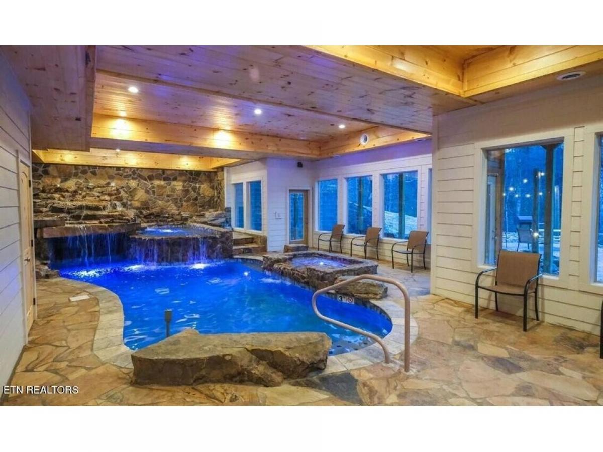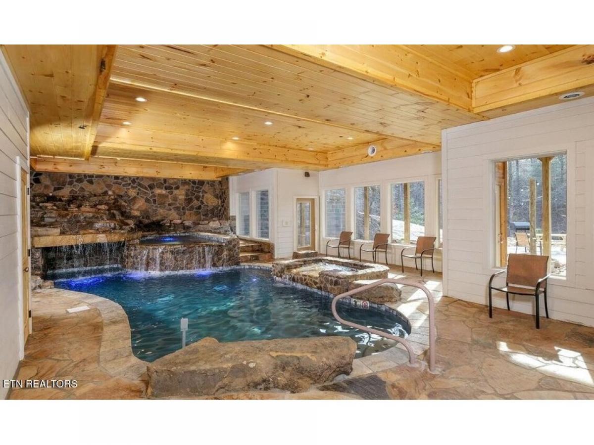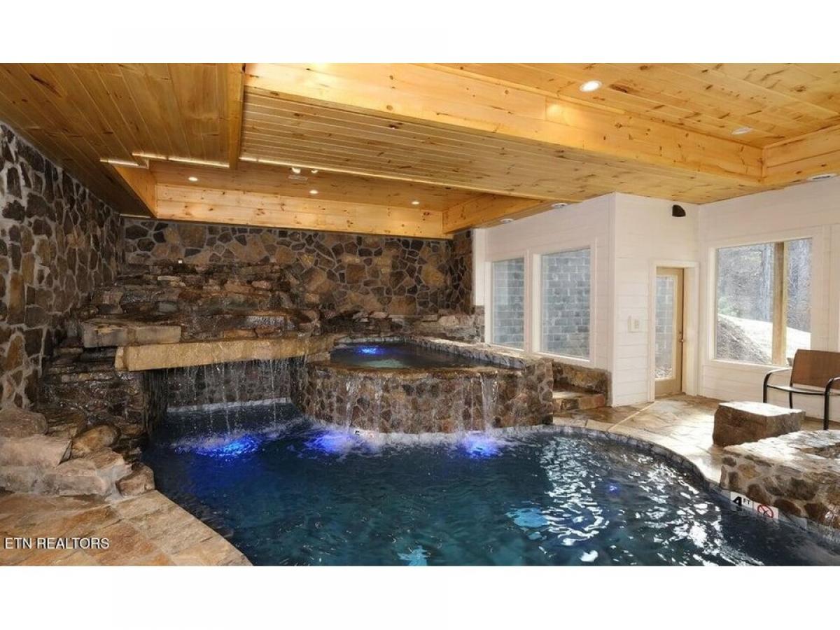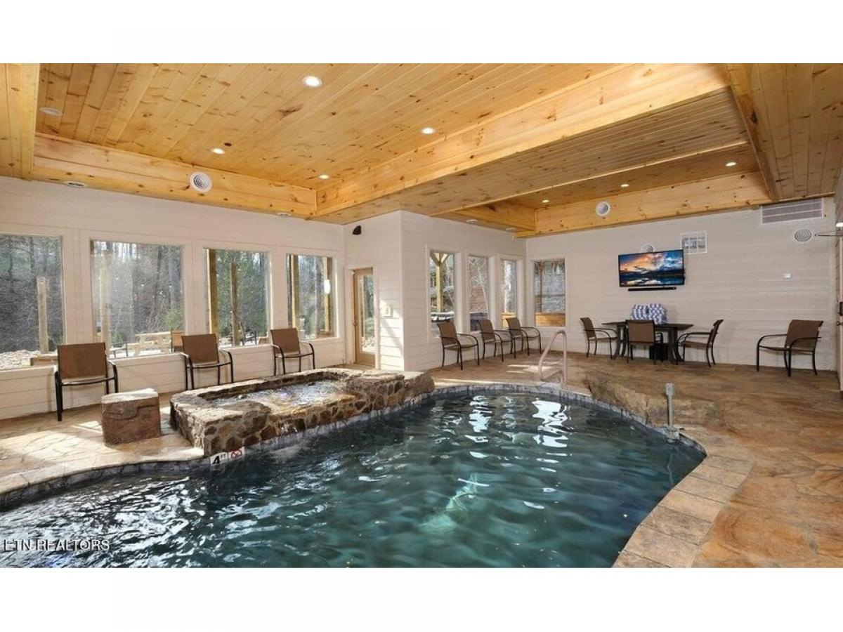 Best of the Best! Projection from AvantStay of $310,000! Custom Built in 2020 with all the latest amenities - a massive waterfall grotto pool with adult spa, kiddie pool- it doesn#039;t just get any more spectacular! Stunning design with high cathedral ceilings for drama, walls of barn wood, heavy timbers, glass from floor to ceiling makes this a unique a memorable vacation extravaganza. The 2 story fireplace anchors a truly great room. You will love the creative open floor plan, 4 bedrooms with 5.5 baths, a unique treehouse gives you multiple possibilities including additional sleeping options. Equipped with a sprinkler system so you are not limited in sleeping capacity. This cabin did $263k in revenue in 2022! Unwind in the hot tub with peaceful wooded views, cozy up in front of the electric (heated) fireplaces. The large treehouse/home theater room has a big screen TV, Blu-ray and DVD players, and lots of seating. A gas fire pit area, a pool table, a washer/dryer, a fully equipped kitchen, a charcoal grill, and easy arrivals with flat, paved roads to the cabin and flat parking with 4 spaces. If you#039;re looking for that wow factor as soon as you step through the door, this large cabin is for YOU. Featuring a 2-story cathedral ceiling along with a 2-story stacked stone (electric, heated) fireplace, gorgeous floors, log posts and mantel, and soaring windows letting in tons of natural light and tree-studded scenery. The open, stylish kitchen boasts an island with bar seating, modern appliances, plenty of counter space, a double sink, and 2 coffeemakers. Just off the kitchen is the dining area with a large table to seat 12. Combined with the kitchen#039;s bar seating for 4. Windows around the space add to the natural light and beauty of the area. Downstairs you#039;ll find the large, custom built pool that offers a swim-in grotto, color-changing lights, underwater seating, rushing waterfalls, a raised spa for adults, and a kiddy pool for the littlest ones to enjoy the water. A wall of windows frames the trees outdoors and brings tons of natural light into the pool room. The stone flooring meshes well with the pool#039;s design, and there#039;s a sitting area with a table, chairs, and a big screen TV for parents or guests who need a break from swimming. Best of all, having a private indoor pool means you can swim year-round, no matter the weather outside! The Treehouse/media room mdash; offers a space to unwind or host meetings during the day and a place to watch movies together at night. There#039;s a big screen TV, Blu-ray and DVD players, sofas (double as sleepers), loungers, and armchairs to relax, and another stone (electric, heated) fireplace. Windows surround the room, let in views of the trees, just like a treehouse. In the loft, you can shoot pool, play cards and drink at the pub table, and enjoy the treetop scenery through large windows. You#039;ll also have a great view of the stunning chandelier hanging over the living room. Tucked into the corner is the media space that features another big screen TV, a wall bar where you can chat and drink, and a sofa (doubles as a sleeper) with a coffee table. King-size beds await in 3 bedrooms, and 1 full-size triple bunk awaits in the last bedroom, great for the kids or teens There are also 3 queen-size sleepers. The perfect investment cabin no doubt! Comes fully furnished and ready to Enjoy!