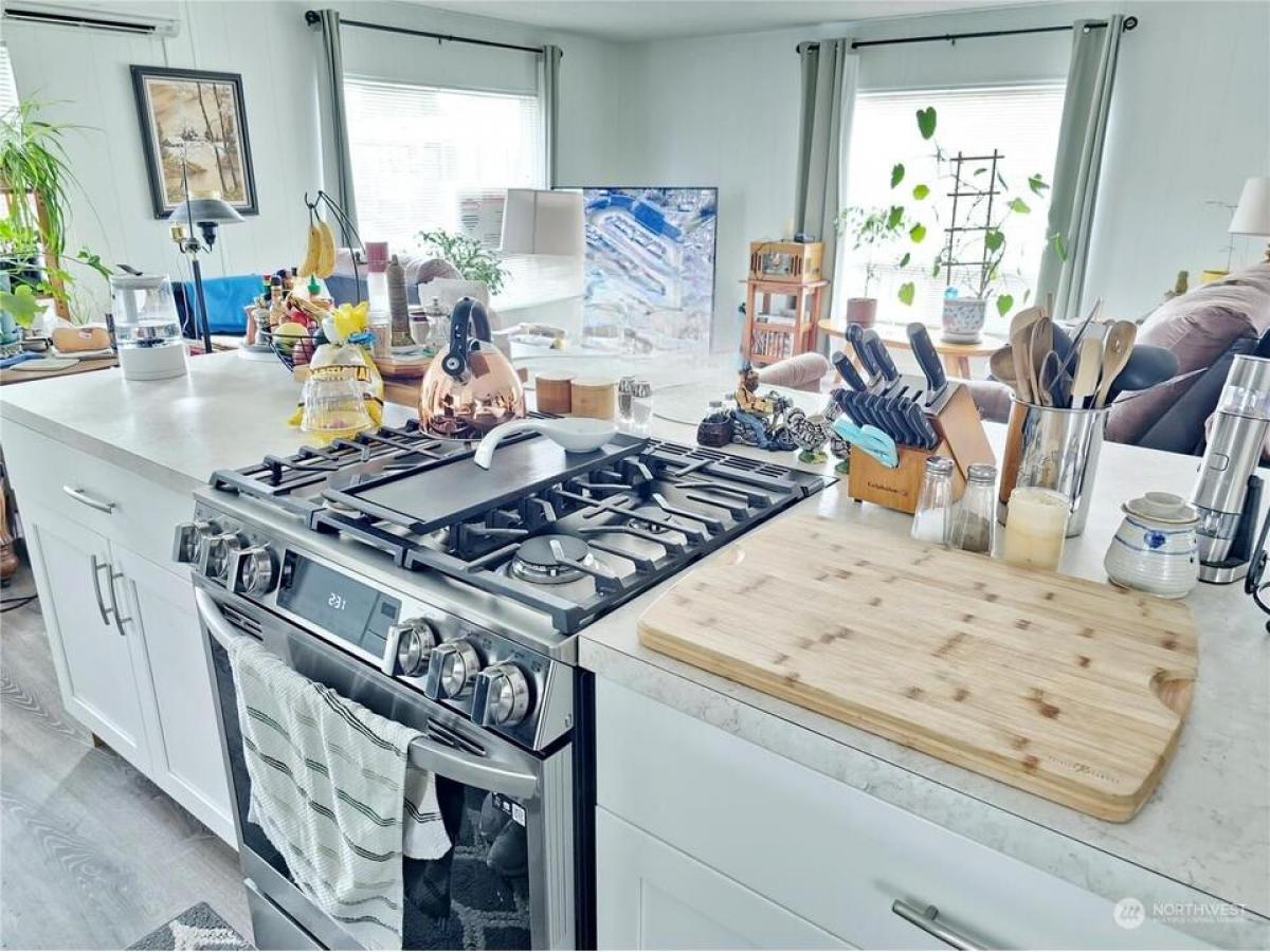 REMODELED 3BR, 1.75BA must-see home! Find your new home in this gated community just south of E College Way! Shopping, schools, parks, restaurants, hospital, downtown Mount Vernon are in your backyard! Easy access to I-5. Home includes a covered carport for at least 2 cars. An attached shed has electricity and NEW circuit panel. Large patio in the back is very clean and made with 1'x1' brick colored pavers. Room to garden! NEW roof in 2022, NEW PEX water pipes, NEW Rinnai tankless water heater, NEW Lifeproof brand flooring, NEW Shaker white cabinets, NEW Kohler sinks/faucets, all NEW LG appliances: gas convection stove/air fryer, refrigerator, dishwasher, new HUGE island, and much more! UPDATES ATTACHED. Ask your agent for details! 55+ park