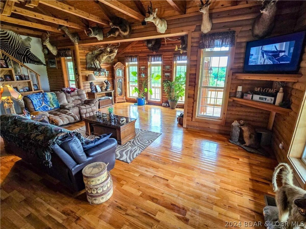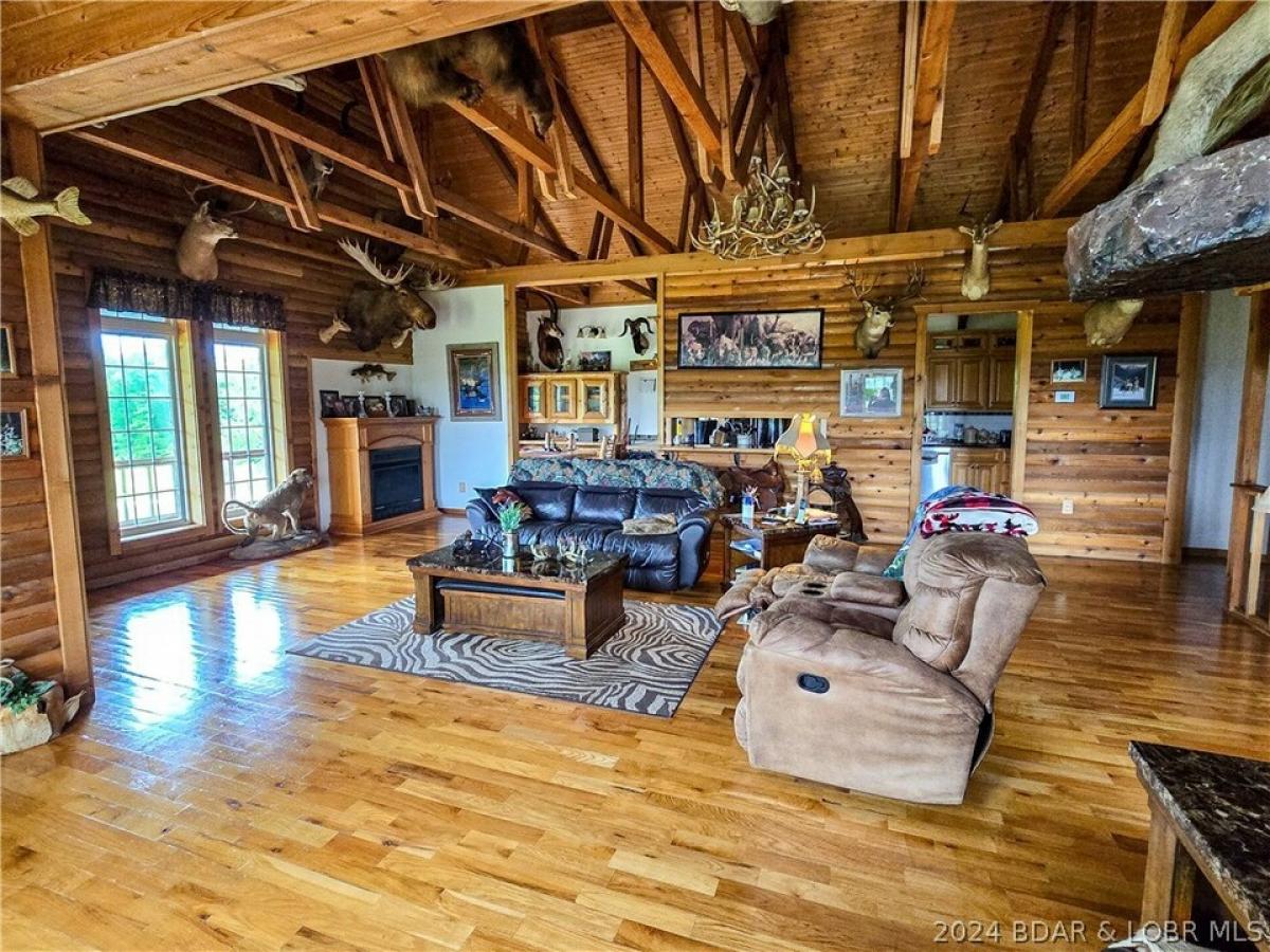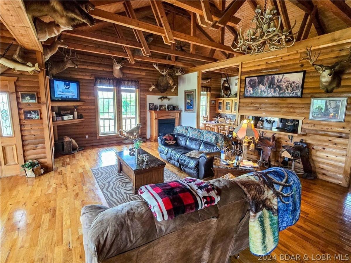 As soon as you travel under the wooden archway that sits over the drive you'll begin to feel your stress melt away. Nestled on over 90 acres of sprawling, picturesque landscape, this charming log home offers a private retreat amid nature's beauty. The rustic allure of exposed beams welcomes you into a cozy interior that seamlessly blends comfort & character. Master bedroom with bath & walk in closet on main level. Custom kitchen cabinets, double oven, plenty of counter space & breakfast bar. The homes appeal is enhanced by the natural light streaming through the windows & fireplace for winter nights. The home includes a loft area great for kids room or play room. Full finished basement has a large bonus room for a family room, hobby room or another bedroom if needed. The barn/shop area is great for storage, animals & work. Immerse yourself in the splendor of the outdoors on the wrap around deck with your cup of coffee enjoying the morning & evening sun. Relax, enjoy & live in the peace & quiet of God's country. This property includes all types of Missouri wildlife for hunting & enjoying. Bring your kids, your family & four legged family members to this amazing property.