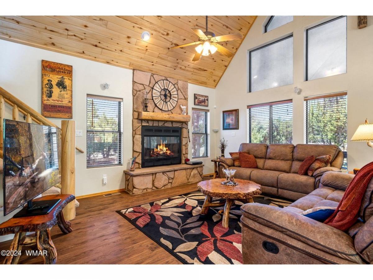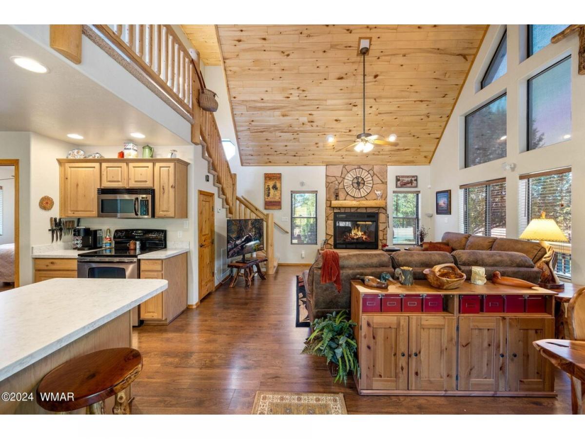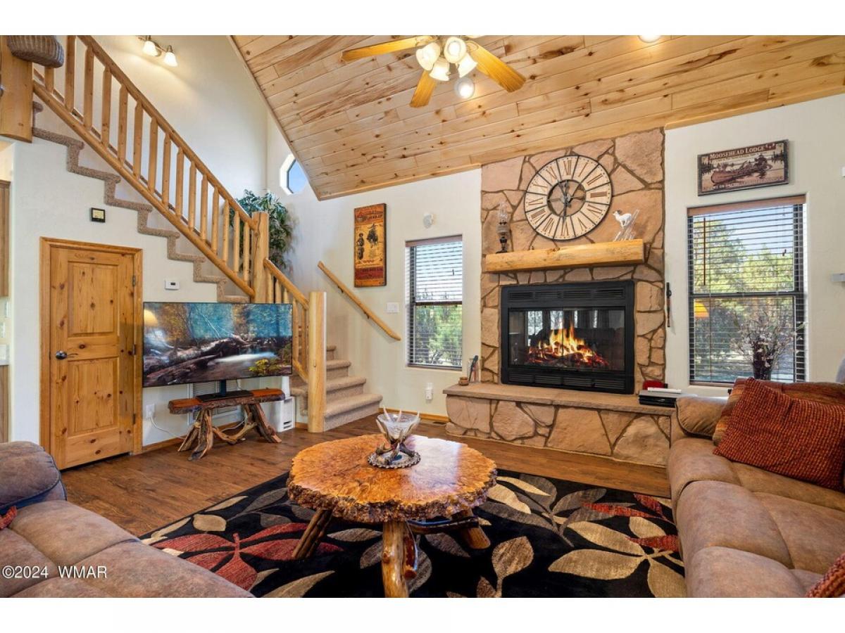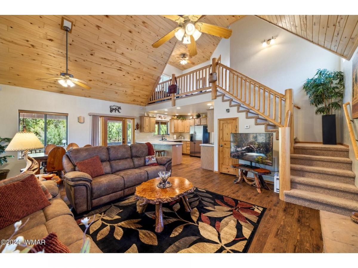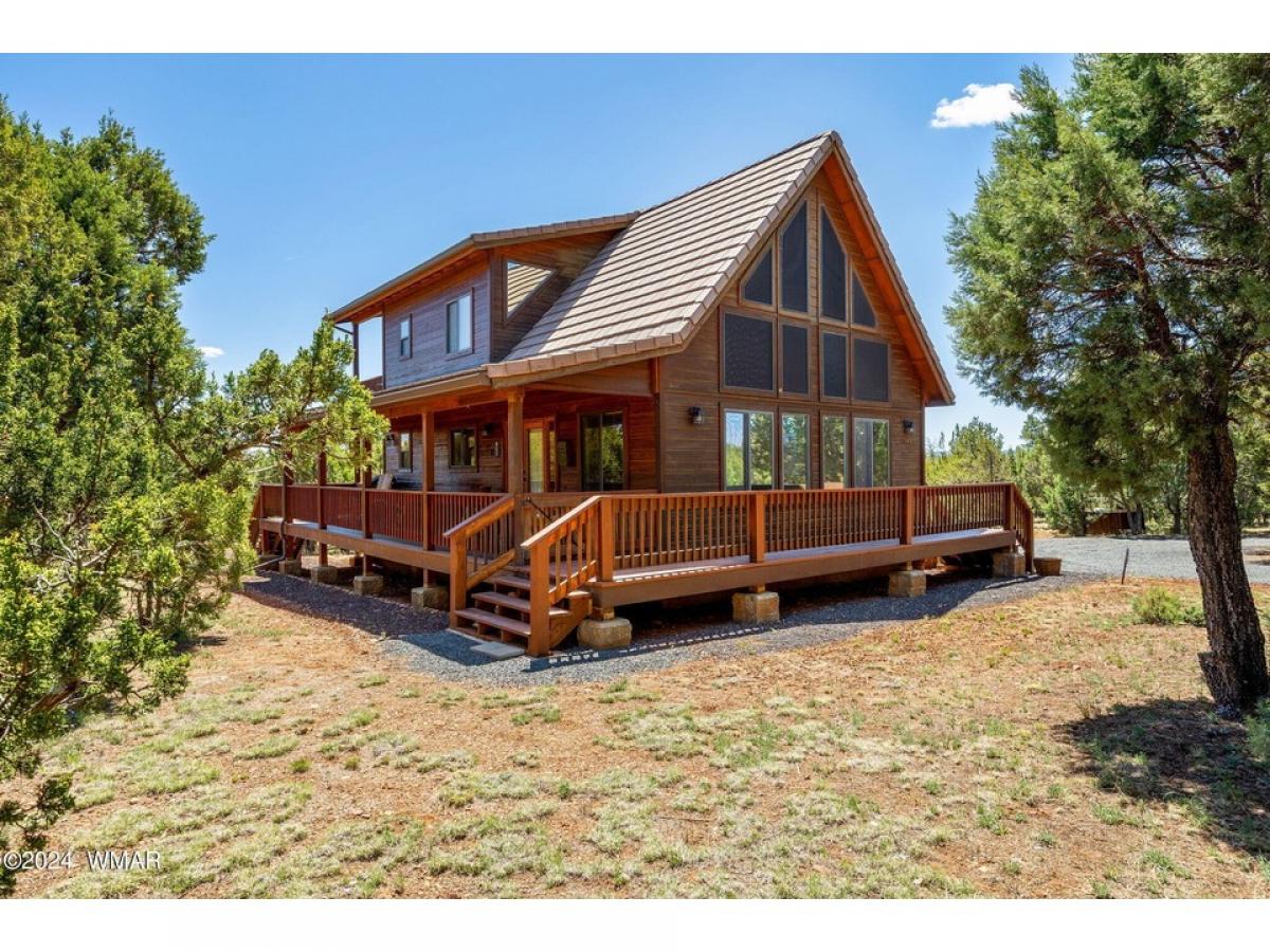 This beautiful home offers such a picturesque setting with its pine-covered surroundings. Nestled among the trees, is like a dream, especially with covered decks to enjoy the outdoors. This peaceful retreat is perfect for relaxing and soaking in the natural beauty of the area. Step into your weekend getaway or full time home and you will find an open floor plan, vaulted ceilings, gas fireplace and loft. The split bedroom offers privacy for all and the main bedroom has it's own private en suite and private balcony with amazing views. The ample sized kitchen offers plenty of room and space for all your baking & cooking needs and gorgeous quartz counters. Property comes furnished and turn key.