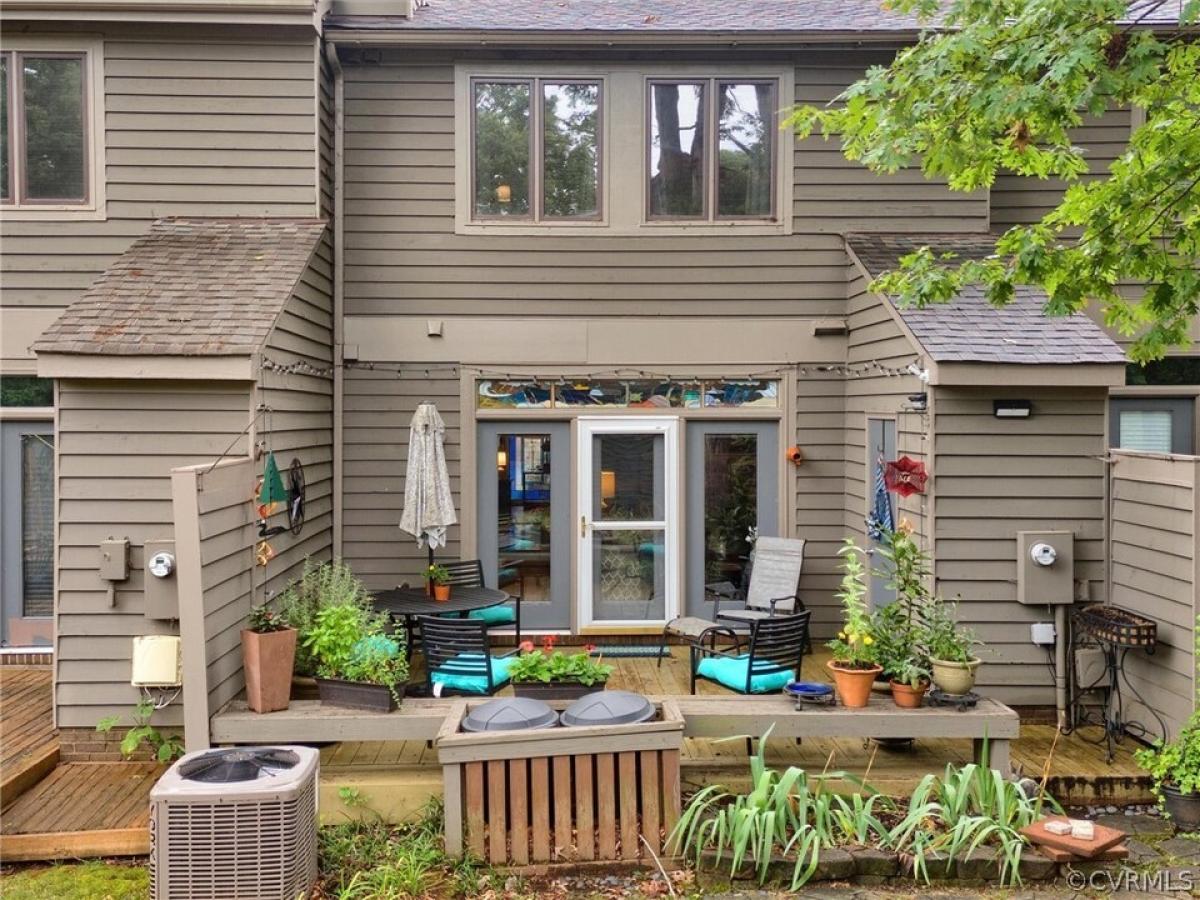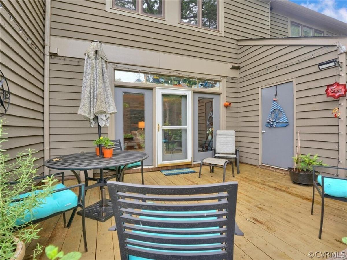 Welcome home , to this tastefully updated townhome in the heart of the West End . As you enter the home you will notice the abundance of natural light and ceramic tile flooring that continues from the foyer through the vast eat-in kitchen , which features granite countertops , grey shaker cabinets , a tiled backsplash , and pantry. Continuing towards the rear of the home , you will find a powder room with a granite vanity , beautiful hardwood floors that extend from the dining area and throughout the family room. The family room offers a wood burning fireplace , great built in shelves , a large stained transom window and glass door provide natural light , and access to your back deck. Upstairs are two welcoming primary bedrooms , each equipped with recently renovated ensuite bathrooms and beyond ample closet space. Schedule your showing immediately at this turn key unit in The Harbour cove community conveniently located just 2 miles From Short Pump Town Center or 10 miles from downtown Richmond , and alongside Wilde lake which is viewable from the back deck.