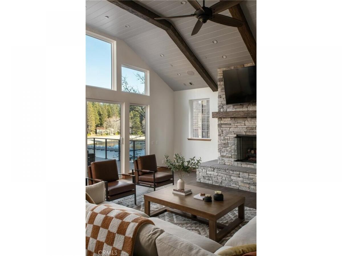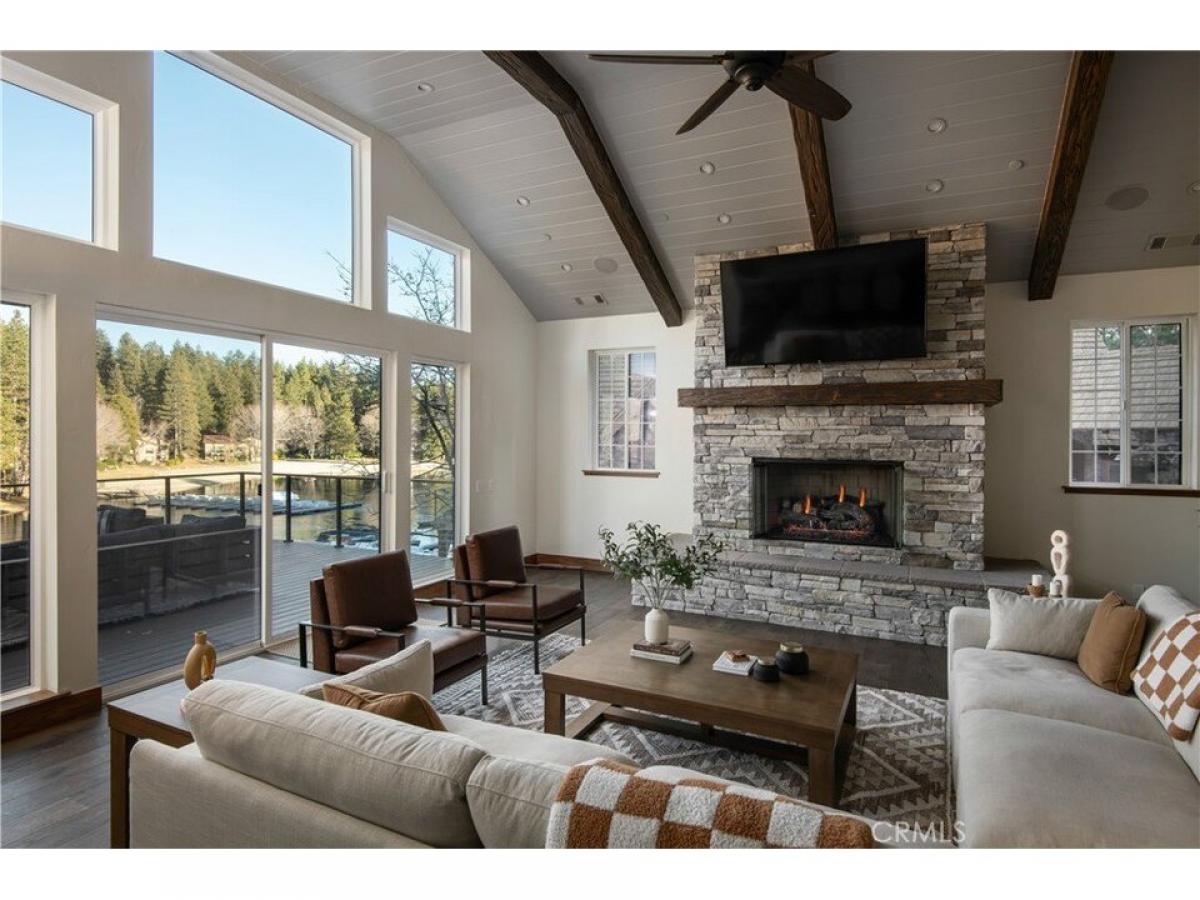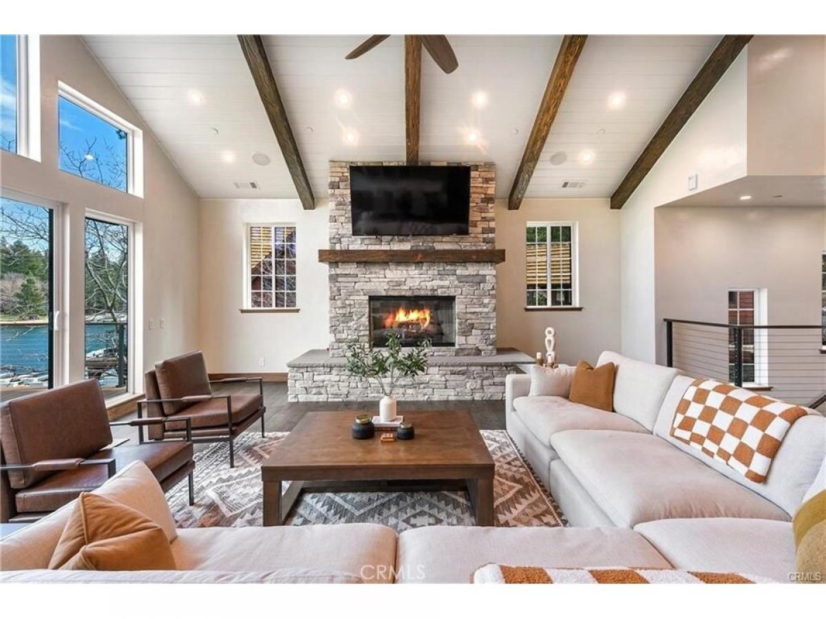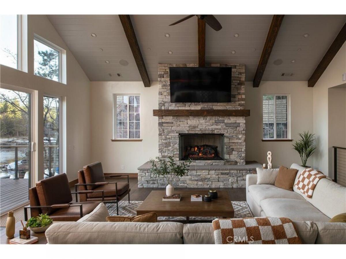 Experience luxury lakefront living at its finest in this newly built masterpiece located within the exclusive gated community of Meadow Bay. Perfectly positioned to showcase breathtaking lake views, this home offers an exceptional blend of modern amenities and timeless elegance. Step through the level entry into a grand living space featuring soaring ceilings, custom wood beams, and a dramatic stone fireplace. Enjoy uninterrupted 180-degree lake views from the expansive living area, perfect for entertaining. The dining room, with seating for 18, flows seamlessly onto a spacious upper deck designed for dining, barbecuing, and relaxation. The gourmet kitchen is a chefacirc;euro;trade;s dream, boasting a large center island with a wine cooler, secondary sink, and microwave. Top-of-the-line appliances include dual refrigerators, dishwashers, ovens, and a professional double range. A walk-in pantry and a custom wine cellar complete this culinary haven. The home is thoughtfully designed with two primary suites acirc;lone on each levelacirc;euro;rdquo;offering privacy and luxury. Every bedroom has an ensuite bathroom, unique design details, fireplaces, and curated tile accents. Additional conveniences include a generous laundry room with two sets of washers and dryers, plus another set in the primary suite. Central air ensures comfort year-round. The lower level is an entertaineracirc;euro;trade;s paradise, featuring a sprawling recreation room with a custom wet bar, grand stone fireplace, multiple seating areas, and three televisionsacirc;euro;rdquo;perfect for game days or hosting. Step outside to the lower deck, a shaded retreat with outdoor heaters for year-round enjoyment. A detached guesthouse above the garage provides an additional layer of comfort and privacy, with a full kitchen, cozy living area with a fireplace, and two ensuite bedrooms. Both the main house and guesthouse are equipped with generators, ensuring reliability in any season. Lakeside, a dedicated dock house offers storage for water gear, a bathroom, and space to relax. The brand-new single-slip dock measures 16 feet by 10 feet, providing direct access to Lake Arrowheadacirc;euro;trade;s pristine waters. Practical features abound, including a spacious 3+ car garage and exterior parking for six vehicles, all situated at the end of a private cul-de-sac. The seller is open to creative financing or trade opportunities. Donacirc;euro;trade;t miss this rare opportunity to own a one-of-a-kind lakefront retreat in Meadow Bay.