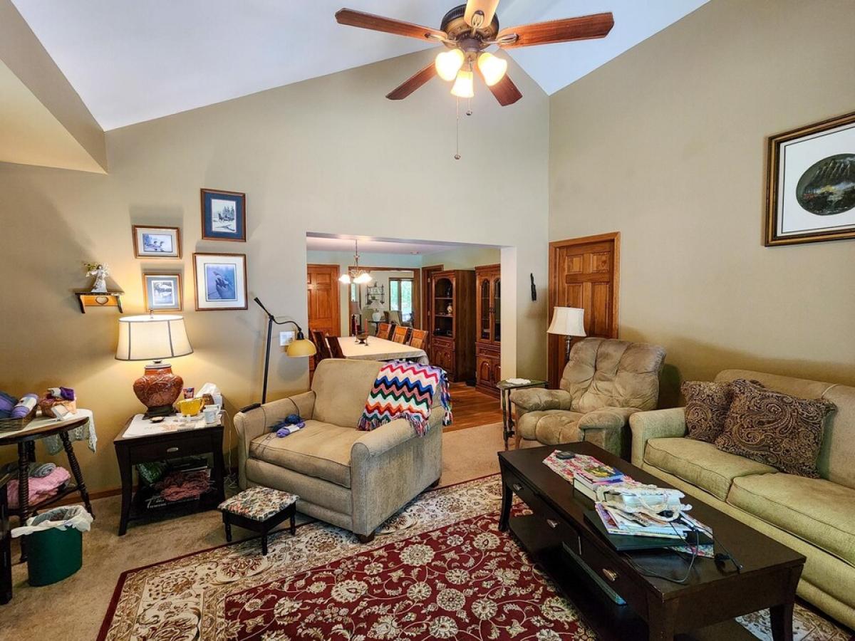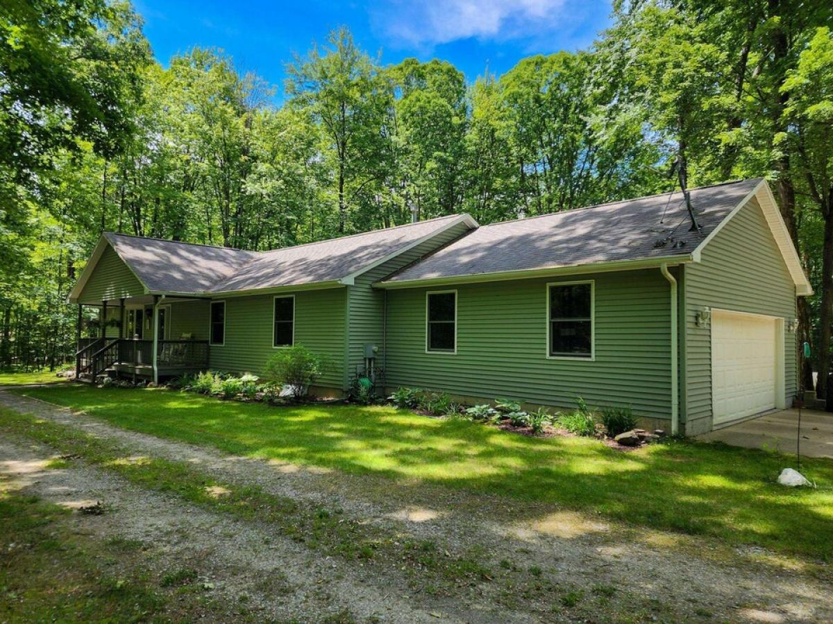 This stunning 5-bedroom, 2 1/2-bathroom home, built in 2004, has received numerous updates in recent years. It features a new 5" well installed in April 2022, updated propane fireplace in 2023. The primary ensuite boasts a custom shower (seller will have the one ornamental tile professionally replaced) and fan installed in 2024, and the home has a new microwave (2023) and new toilets in both the ensuite and guest bathroom. The secluded, wooded backyard is perfect for relaxation, with a retractable motorized awning over a freshly painted deck. Alternatively, you can enjoy the covered porch at the front of the house. The property includes an owned propane tank that will transfer to the new owner, an attached 2-car garage with floor drain, as well as, hot and cold water for washing cars, and a separate insulated, heated 24x30 garage with floor drain. Includes all appliances and piano. Excludes some bulbs and a couple rocks. Nicely, situated on 2.27 acres within the gated White Birch Recreational Association, this home offers access to a variety of amenities for an active lifestyle. The community features an indoor heated pool, four lakes ideal for fishing, kayaking, or swimming, and two private beaches. Additional perks include private camping grounds and recreational facilities such as tennis courts, pickleball, and a basketball hoop. With nothing left to do but unpack, this home offers the perfect blend of luxury, convenience, and recreational opportunities in a desirable community. Embrace your dream lifestyle and make this beautiful property your own.