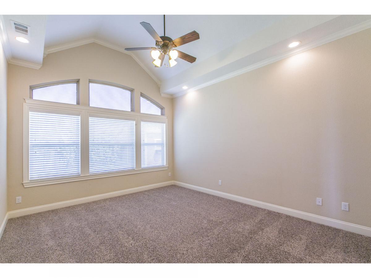 Home is calling... this spotless 4 bedroom lures you inside to the tall ceilings, beautiful wood cabinetry and window filled rooms. A grand living area is open to the kitchen with large eating area and pretty granite counters. Just off the entry is an ideal area for an office or study. An isolated master suite that is very spacious awaits with a luxurious bath including a whirlpool tub, large shower and walk-in closet. Glass doors open from the living area to the covered patio and privacy fenced backyard. Finishing the list of amenities is a sprinkler system and security system.