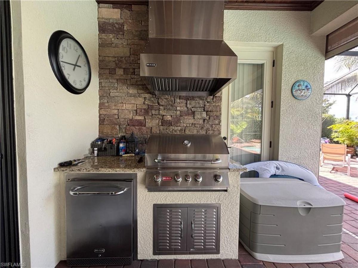 Step into this impeccably maintained Princeton floor plan that truly feels like a model home. The open-concept great room seamlessly flows into the gourmet kitchen, creating a bright and airy space ideal for both relaxed living and entertaining. The kitchen features elegant crown molding, granite countertops, and custom cabinetry with convenient pull-out drawers. Expansive sliding doors open to a stunning outdoor kitchen and covered patio—complete with a Kevlar electric screen for added comfort and protection—perfect for hosting guests or simply enjoying tranquil lake views. 3-car garage is air conditioned. Unwind in your private pool and spa, surrounded by an oversized lanai designed for ultimate comfort and style. Every detail has been thoughtfully cared for, making this home completely move-in ready. A Social Membership is included, offering access to exceptional resort-style amenities: a sparkling pool and spa, poolside dining, lap pool, full-service spa, pub, formal and patio dining, state-of-the-art fitness center, aerobic/spin studio, sauna, Har-Tru tennis courts, and so much more. Discover the perfect balance of luxury, leisure, and location—this home truly has it all.