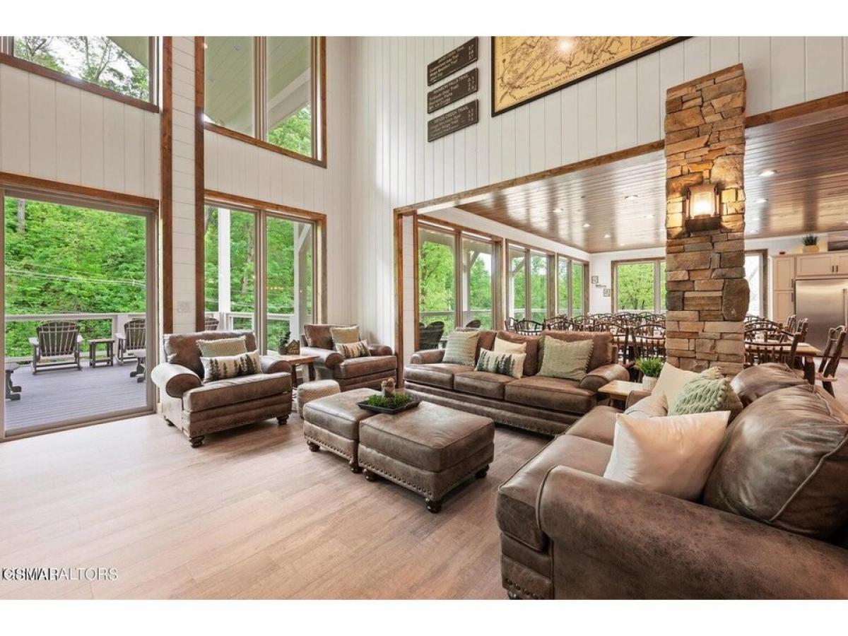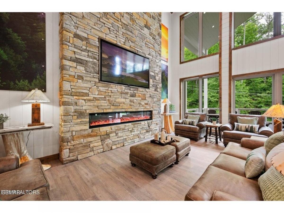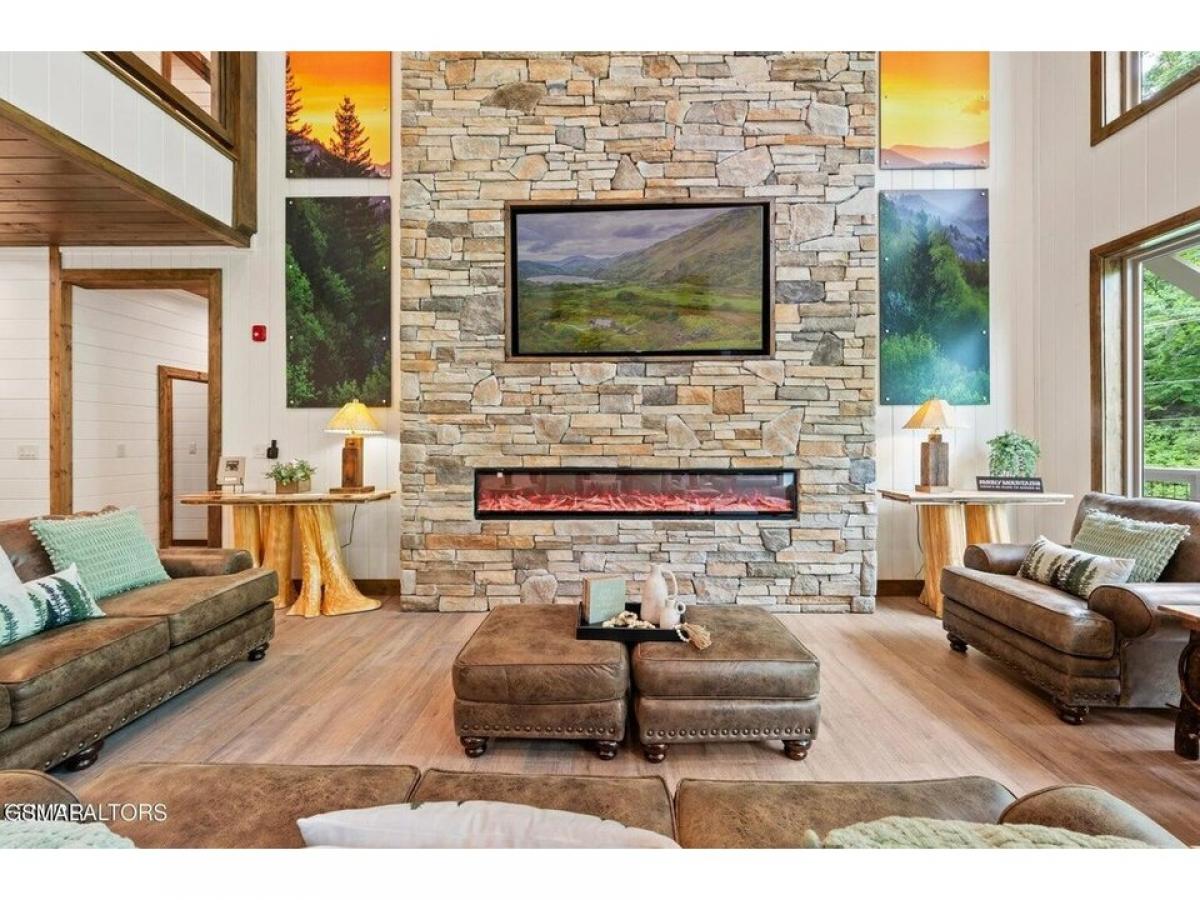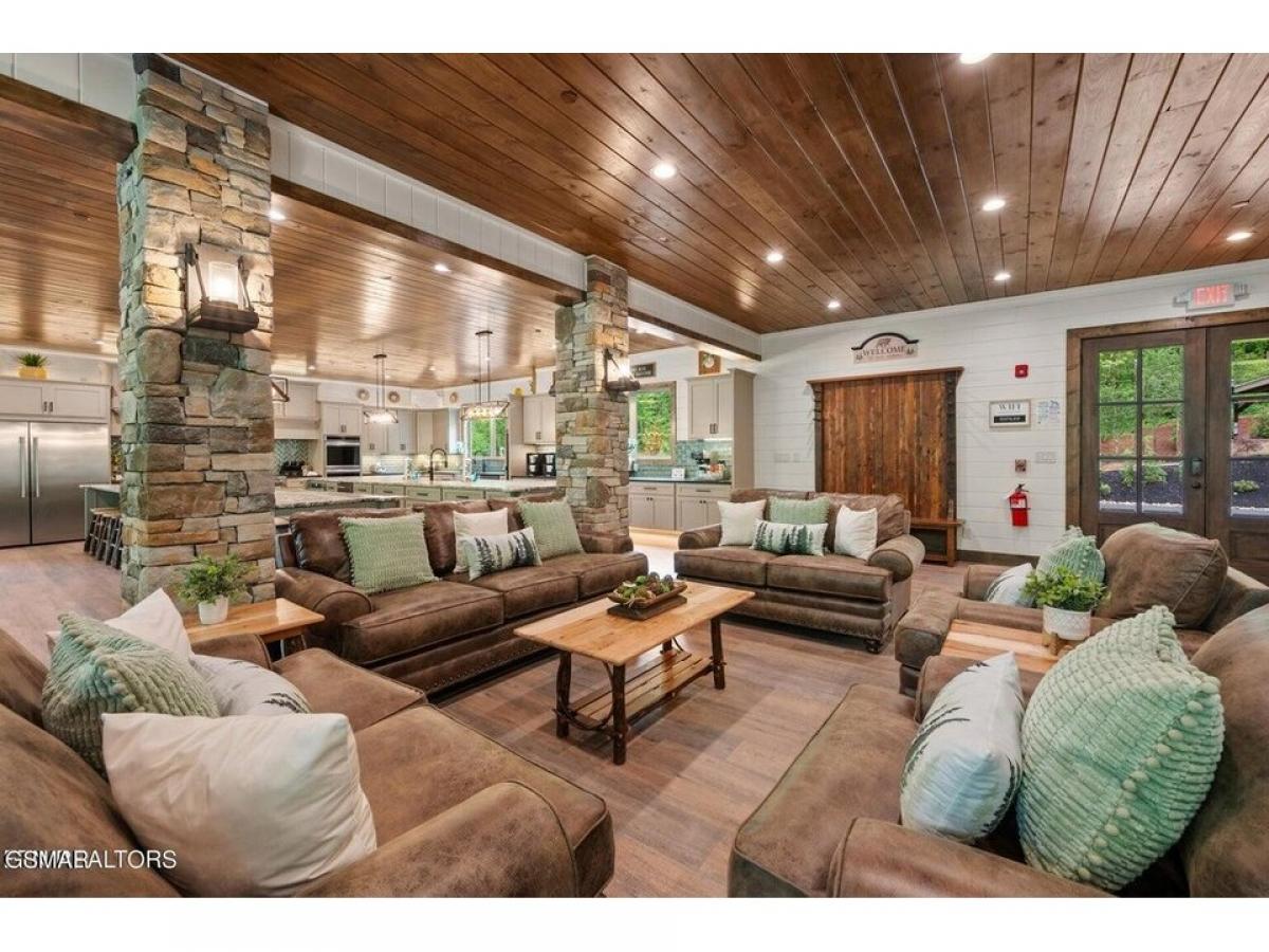 OVER $682,500 ALREADY BOOKED FOR 2025 AS OF 4/14/25 and with just under 6 month for 2024 finished with almost $400,000. This stunning 21-bedroom lodge finished in June 2024, is designed and crafted by a Master Craftsman offers an unparalleled combination of luxury and comfort. Every detail has been meticulously crafted with high-end finishes to provide an exceptional experience for guests. Each bedroom has its own full bathroom, ensuring privacy and convenience. Additionally, every bedroom is equipped with its own coffee station and mini fridge, allowing guests to enjoy refreshments and a morning brew without leaving their room. Eighteen of the bedrooms are equipped with king-sized beds and futons, ideal for families. Two bedrooms are designed with wheelchair roll-in showers and sinks for accessibility. The bunk room is designed for larger groups, featuring three sets of custom-made king-sized bunks that can comfortably sleep up to 12 adults, and it includes two full baths. There are 22 full bathrooms and 4 half baths throughout the lodge, ensuring ample facilities for all guests. A 57-seat movie theater room with a 9-foot projection screen provides a true cinema-style experience, perfect for movie nights. The lodge features a video arcade with a selection of both classic and modern games, offering endless entertainment for guests of all ages. Enjoy a full-size heated indoor pool and a kiddie pool, providing a perfect spot for relaxation and fun, regardless of the weather. A commercial elevator ensures easy access to all floors, making the lodge convenient for guests of all mobility levels. The property also features two electric car chargers, adding modern convenience for eco-conscious travelers. An outdoor pavilion provides the perfect location for picnics, cookouts, or gatherings, offering a wonderful space to enjoy the natural surroundings. The pavilion is fully equipped with an outdoor kitchen, making it easy to prepare and enjoy meals al fresco. The lodge is equipped with a state-of-the-art fire suppression and monitoring system, ensuring the safety and security of all guests. The lodge can sleep up to 92 guests, making it perfect for large family gatherings, corporate retreats, or any group seeking a luxurious getaway. Based on actual numbers from a sister cabin in Pigeon Forge, the rental projections are impressive: first full year: $800,000-$1M; second year: $1M+; third year: $1M+. Located just minutes from downtown Gatlinburg and the Great Smoky Mountains National Park, this lodge is the epitome ofluxury, offering an extraordinary experience with its high-end amenities and spacious accommodations.