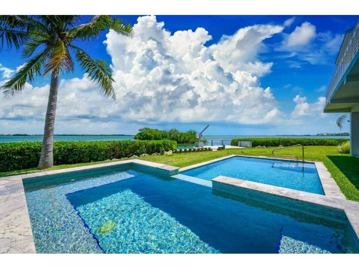 Discover unparalleled coastal elegance and maximum views from this newer custom-built concrete estate in Breezeswept Beach Estates, set on an exclusive nearly half-acre point lot with breathtaking panoramic ocean views over Newfound Harbor. This 3 bedroom 3.5 bathroom architectural masterpiece seamlessly blends modern sophistication with tropical tranquility, offering an elevated waterfront lifestyle. Inside, 2,900 sq. ft. of refined living space is appointed with high-end finishes and designer details. The gourmet Chef#039;s kitchen is a culinary dream, featuring custom cabinetry, sleek quartz countertops, premium stainless-steel appliances, and an inviting oversized island, the perfect space for hosting gatherings with friends and family. Wake up to views of the turquoise waters from the main-floor primary suite, boasting floor-to-ceiling open water views, private patio access, and a spa-inspired en suite with a jetted soaking tub, rain shower, and walk-in closet. Upstairs, two luxurious guest suites each offer en suite baths and share a private balcony, ensuring a retreat-like experience for visitors. Step outside to your private sandy beach, where a resort-style saltwater pool invites relaxation beneath swaying palms. Entertain effortlessly with a covered waterside patio, perfect for alfresco dining and cocktails under the stars. Boating enthusiasts will appreciate the concrete dock allowing for seamless adventures to world class fishing and diving. Surrounded by lush, manicured landscaping, this tropical haven also features a grand circular driveway, abundant open parking, and a covered carport with trailer storage. Nestled in a serene yet convenient location, this exclusive oceanfront retreat is just minutes from town yet worlds away from the ordinary.