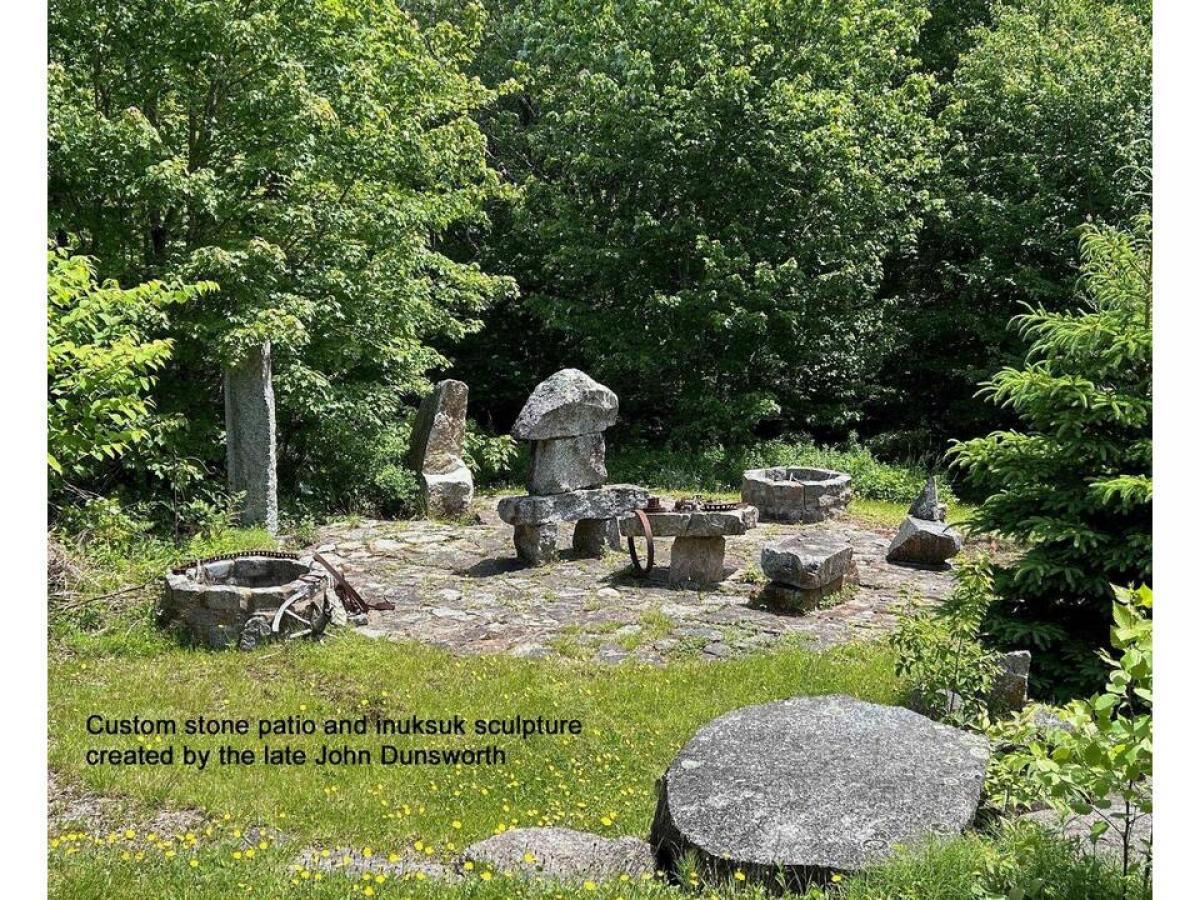 WHIMSICAL WONDERFUL. Over six acres of privacy with fields, forest, frog pond, gardens, a very solidly built 2 storey, 2 or 3 bedroom, 2 bath home, detached over size, fully insulated garage plus insulated attached studio/workshop. Features include living room with cosy wood stove with brick hearth and custom coffee bar, sunroom addition with heated stone floor, birds-eye maple threshold, skylights, solid interior doors, pegged hardwood floors throughout, hand built pine kitchen cabinets, main floor office or bedroom, and attic for potential living space. Full list of features and history available. There is an outdoor shower, inuksuk land sculpture stone patio with fire pit including granite cobblestones repurposed from a Halifax street. Solar panels for environmentally friendly energy savings, electric car charger; and fibre optic available for those working from home. Garage is well lit with new LED lighting and ideal for a photo studio or other home business. Commuting distance to Chester, Windsor, Kentville and Bridgewater.
