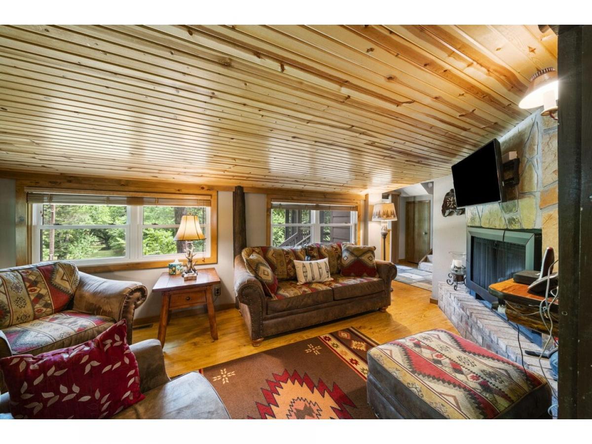 Nestled in a wooded area near Locust Grove, Oklahoma is a HIDDEN GEM called CEDAR CREST COUNTRY CLUB. This 2 bedroom with 1.5 bath cabin features wood floors and paneled ceilings. The original log cabin has been renovated and is now the kitchen with concrete countertops and custom cedar cabinetry. The cellar area is where you will find the washer/dryer room with a half bath. A covered and screened in front deck area is a place to enjoy that cup of coffee and watch the wildlife go by. The backside of the property features a fire pit area with a covered outdoor living/kitchen space that is perfect for entertaining! A storage building for your golf cart, a fish cleaning station and canoes on racks ready for you to explore Spring Creek. This place is selling mostly FURNISHED!