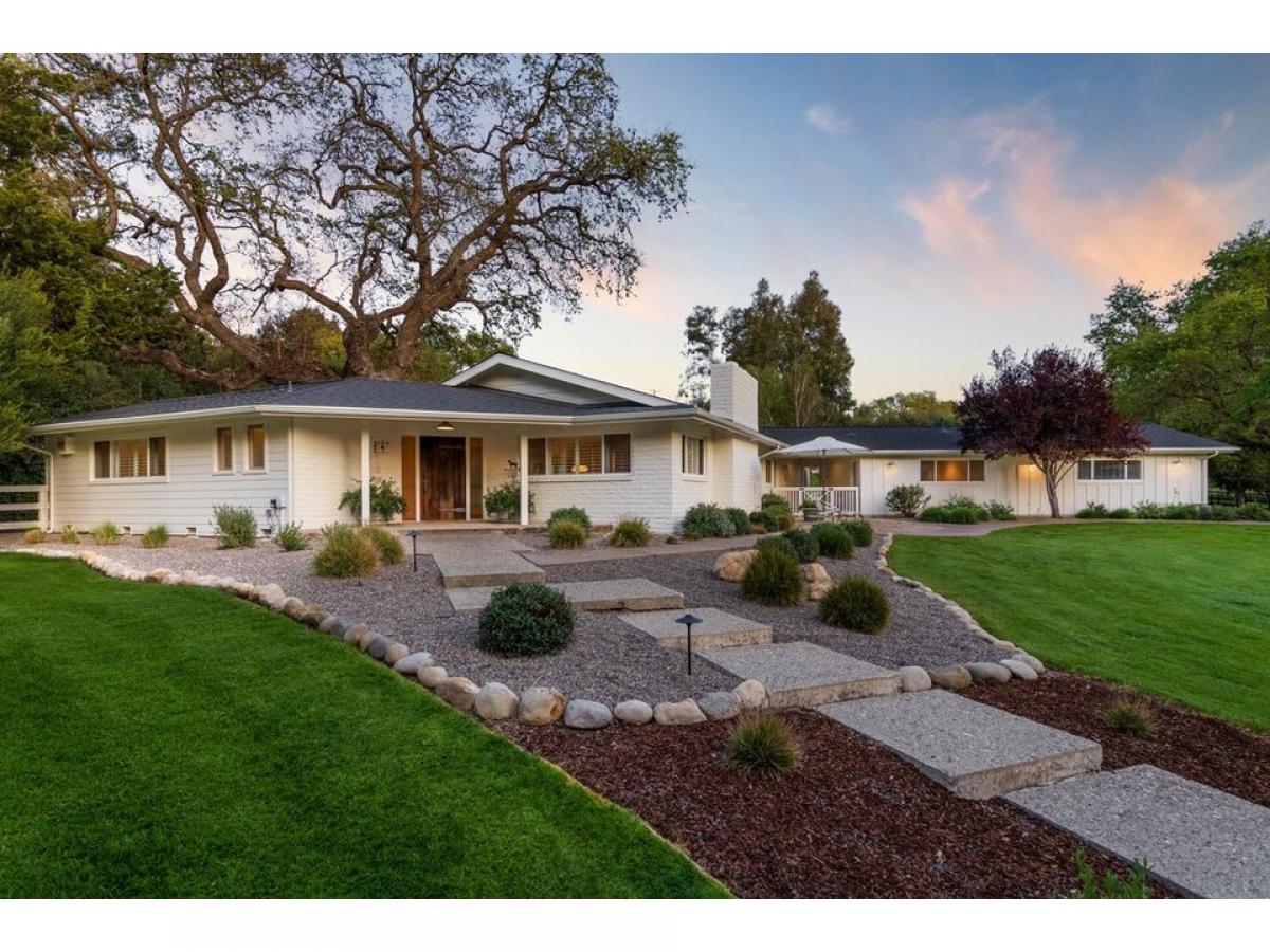 Tucked behind a private gate on 3+ acres, this meticulously maintained mini estate offers refined living in a serene, park-like setting. Mature trees, manicured lawns, and a peaceful pond create a sense of seclusionmdash;while still just minutes from town and all that Santa Ynez wine country has to offer. The 4-bedroom, 3.5-bath main residence has been thoughtfully upgraded with premium finishes throughout. The open-concept great room is centered around a designer kitchen featuring Walker Zanger Balsatina countertops, a Wolf 48#039;#039; Dual Fuel Range, Sub-Zero refrigerator, Miele dishwasher, and Thermador warming ovenmdash;all seamlessly integrated into custom white cabinetry with sleek hardware and a clean, minimalist backsplash. A spacious center island offers ample prep space and invites casual gatherings. The kitchen flows effortlessly into the dining area and a generous living space with vaulted, white-painted wood beam ceilings, a stone fireplace with rustic wood mantle, and hardwood floors throughout. Bathrooms are finished with Quartz surfaces, Kohler and Toto fixtures, and a spa-like primary suite featuring heated floors and dual shower heads. Large windows and glass doors fill the home with natural light and connect the interior to the beautiful surroundings. Additional highlights include a home office with a powder room, a temperature-controlled wine room, and an attached garage connected by a breezeway that leads to a separate room and full bath each with its own HVAC system. New roofs were installed in 2025. French doors open to the landscaped yard, perfect for seamless indoor-outdoor living. A stone path leads to a vine-covered arbor by the pond ideal for relaxing or entertaining. The property features a fully lined pond with dual aerators, two water sources (a new private well and Santa Ynez River District hookup), a fully owned solar system that powers the entire estate, and a generator for added peace of mind. The detached 2,000 sq ft barn/garage is fully insulated, with polished concrete floors, vaulted ceilings, custom cabinetry, and dedicated HVAC ideal for car collectors, creatives, or large-scale entertaining. There#039;s room for a pasture near the creek bed, and the upper hillside offers potential for a vineyard, guest house, or ADU with panoramic views to match.