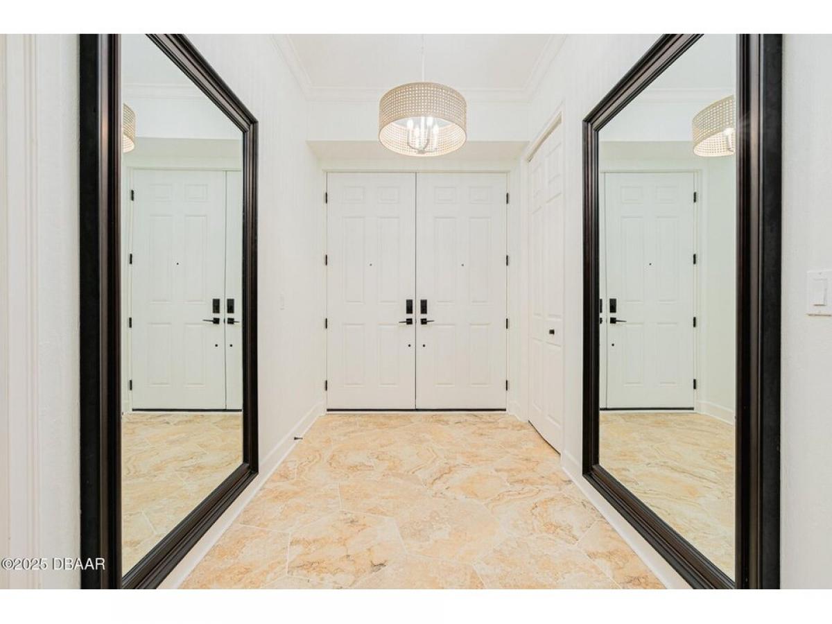 Welcome to 2855 S Atlantic Avenue, unit 303 - Your Exclusive Coastal Sanctuary. Nestled in the prestigious St. Kitts building of Daytona Beach Shores, this luxury coastal home-in-the-sky is the epitome of luxury living. This exquisite 3-bedroom, 3-bathroom condo on the third floor presents an ideal blend of privacy, elegance, and breathtaking panoramic ocean views. This northeast-facing corner unit boasts unparalleled vistas, where the Atlantic Ocean unfolds before you, complemented by the tranquility of multimillion-dollar homes to the north. With unobstructed views stretching along the coastline - every moment spent here feels like an exclusive escape. St. Kitts is one of Daytona Beach Shores#039; most coveted buildings, offering just 24 units across six stories. With only four units per floor and 23 neighbors, this boutique-style complex provides an intimate, serene living experience. Upon arrival, you are greeted by the peaceful ambiance of a private pool, lush gardens, and an intimate, stylish foyer - each element setting the tone for the luxury that awaits inside. Step into the heart of the home, where an open-concept living and dining area invites relaxation and effortless entertaining. Triple sliding glass doors open to a spacious wraparound balcony, offering breathtaking ocean views, making it an ideal space to unwind or host guests. Whether you#039;re enjoying a morning coffee or a sunset cocktail, the beauty of the ocean is your constant companion. Italian porcelain floors, wide-plank hickory, and soaring 10-foot ceilings combine to create an atmosphere where contemporary elegance effortlessly blends with coastal charm. The gourmet kitchen is a culinary masterpiece, featuring updated custom white cabinetry with added storage and impressive new modern hardware, stunning granite countertops, a custom copper sink, and top-of-the-line stainless steel appliances. This thoughtfully designed space offers the perfect balance of functionality and beauty, allowing you to prepare meals while taking in the spectacular coastal views. The primary suite is a true oceanfront retreat, offering direct access to the balcony and sweeping views of the Atlantic. Sunlight pours through large windows, and plush new carpeting creates a peaceful, cozy atmosphere. The en-suite bathroom is a spa-like sanctuary, complete with a glass block shower, a makeup counter, and an oversized custom-built walk-in closet, elevating your daily living experience. Two additional bedrooms provide ultimate privacy and comfort away from the primary. One room offers its own en-suite bathroom and features sliding doors that lead to a private balcony, offering a tranquil space for guests or family. The other bedroom features ocean views and access to a full bathroom. Whether hosting or enjoying a quiet evening, these rooms ensure luxury, seclusion, and an abundance of natural beauty. This home has been meticulously designed with convenience and comfort in mind. The inside laundry room includes ample storage and a utility sink, while a second large storage room ensures that everything has its place. Tinted windows throughout the condominium regulate light and temperature, enhancing energy efficiency and comfort year-round. Professionally staged by celebrity interior designer Michelle Bondi, this exquisite condo showcases stunning coastal-inspired pieces paired with luxury brands. Available fully furnished at an additional cost, this home offers a seamless move-in experience for those seeking a turnkey lifestyle. Every detail has been carefully curated to enhance comfort and sophistication, creating a space that#039;s both inviting and refined. Whether you#039;re looking to enjoy the breathtaking views or entertain guests in style, this condo offers a perfect blend of elegance and functionality. St. Kitts offers an exceptional array of amenities, including a heated pool, fitness room, Jacuzzi/hot tub, and a social room with a full kitchen for entertaining. Secure underground parking provides peace of mind, while direct beach access via a public trail just outside the building allows you to enjoy the ocean whenever you please. St. Kitts offers the rare combination of seclusion and convenience. Enjoy the privacy of your oceanfront retreat while being just minutes away from the shopping, dining, and entertainment of Daytona Beach Shores. The building#039;s southwest-facing heated pool is sheltered from the northeast breeze, ensuring a sunny, relaxing experience year-round. The unique oceanfront lawn offers a peaceful, serene setting to fully embrace the beauty of your surroundings. As a pet-friendly building, your beloved pets will enjoy a secure and welcoming environment, providing them with the comfort and safety they deserve. Unit 303 at St. Kitts offers a rare opportunity to own a piece of paradise in one of Daytona Beach Shores#039; most coveted buildings. There is no other 3-bedroom, 3-bathroom home like it! The breathtaking views are absolutely priceless. With only 23 neighbors, this luxurious sky-high retreat ensures unmatched privacy, exclusivity, and coastal elegance. Don#039;t miss your chance to experience this extraordinary home. Schedule a private showing today and immerse yourself in the unparalleled beauty, tranquility, and sophistication of St. Kitts. Your coastal sanctuary awaits. Appointment Only. Proof of Funds Required.